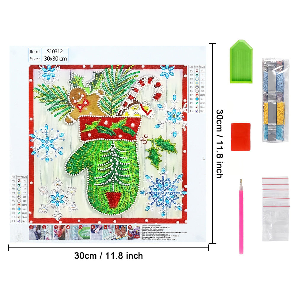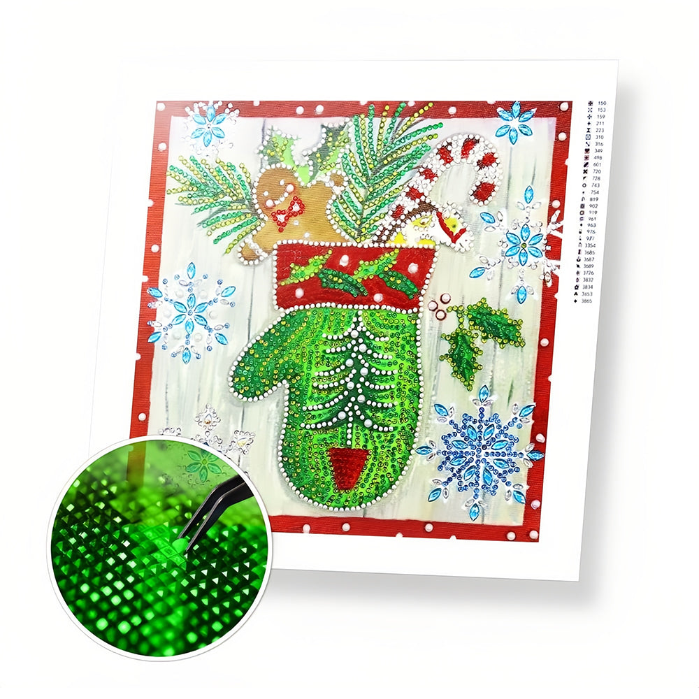 Grüne Weihnachten Handschuhe Sonderform Diamond Painting