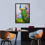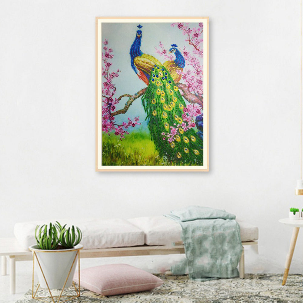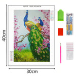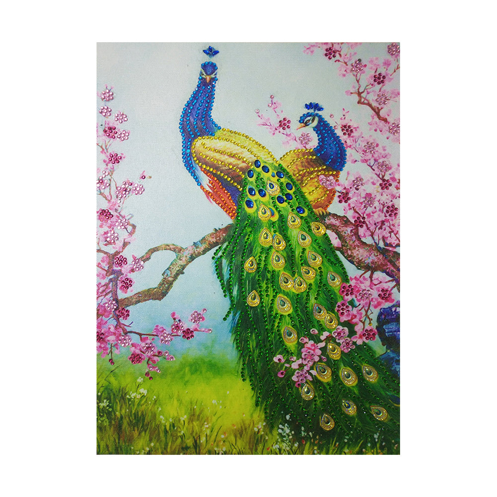 Grüner Pfau und rosa Blumenbaum Sonderform Diamond Painting