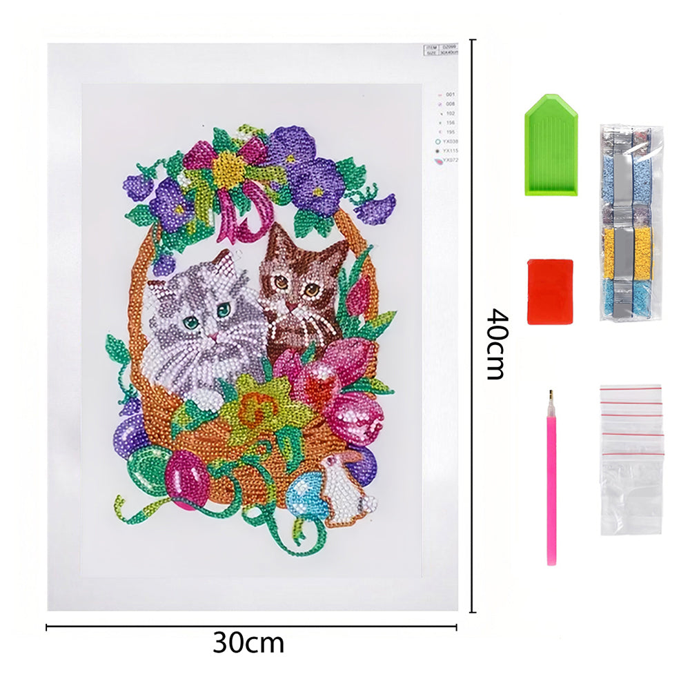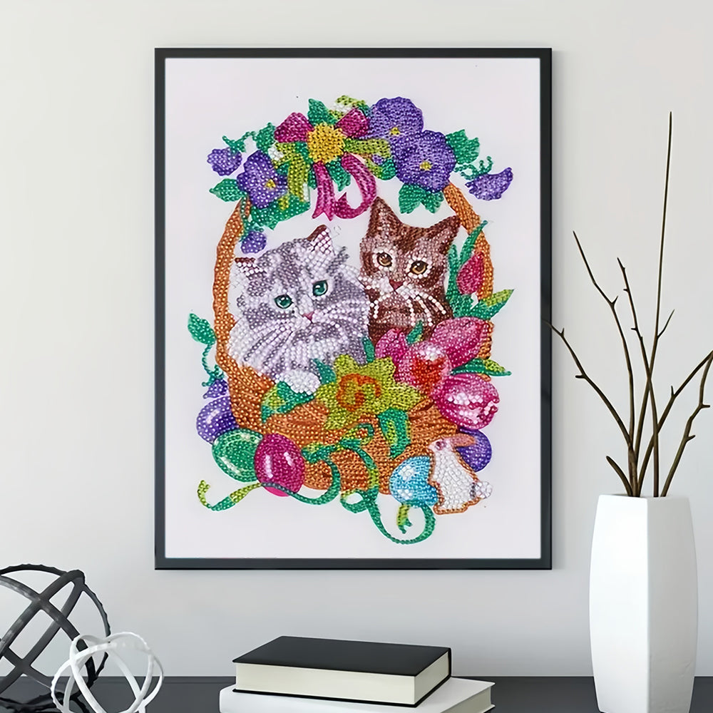 Katzen im Blumenkorb Sonderform Diamond Painting