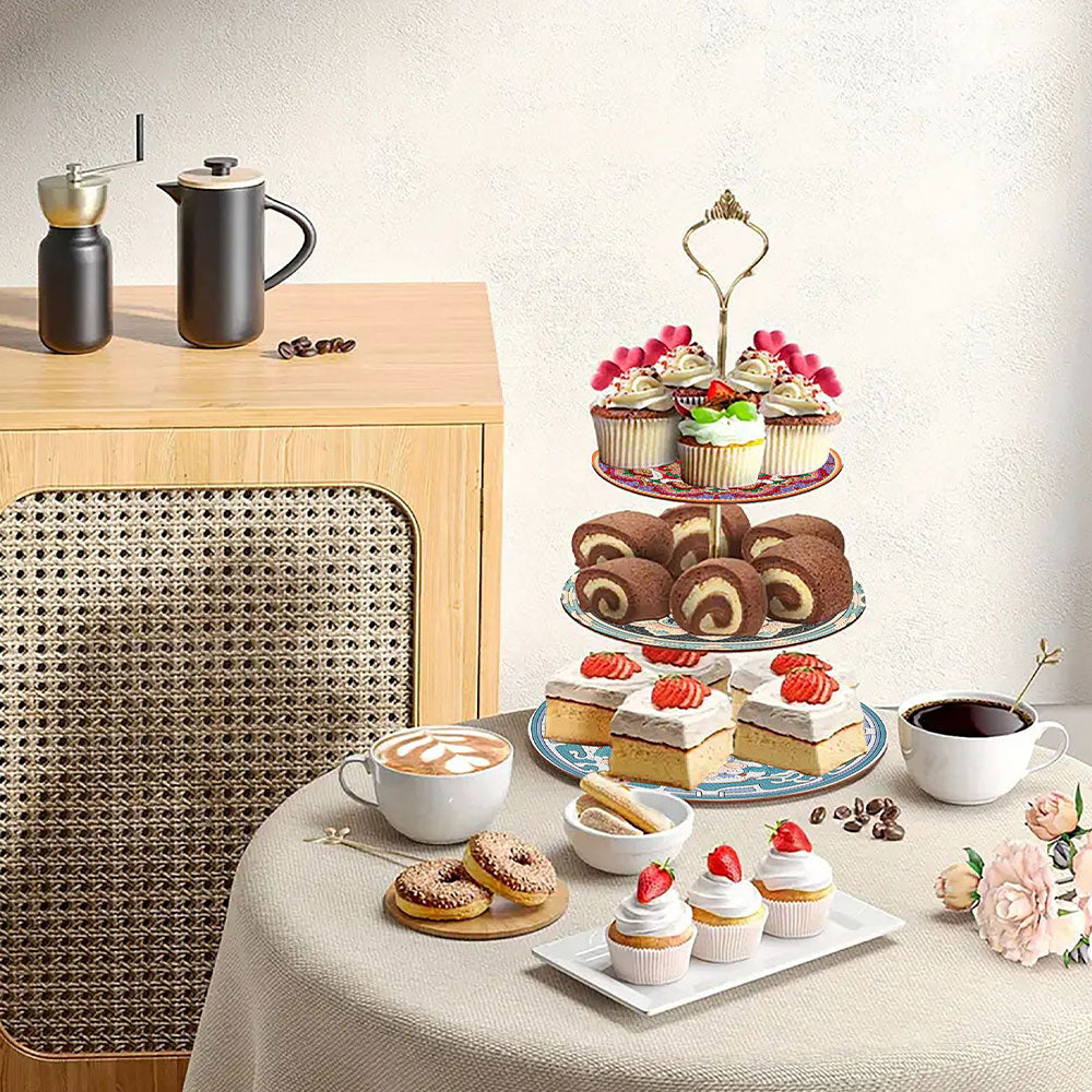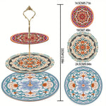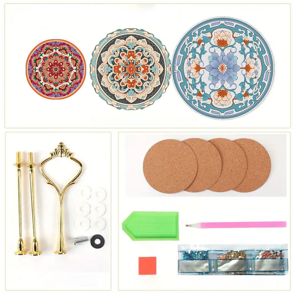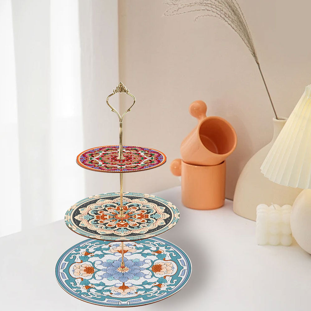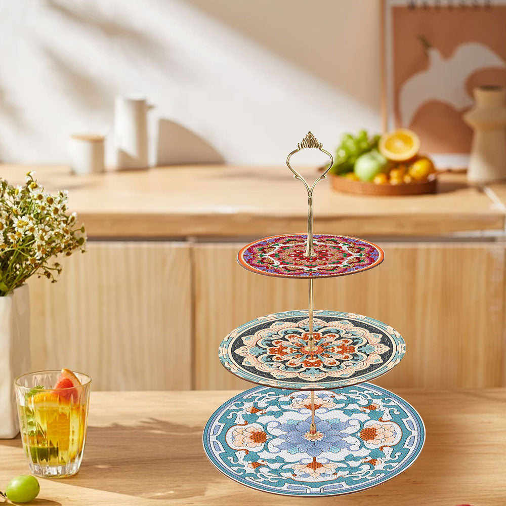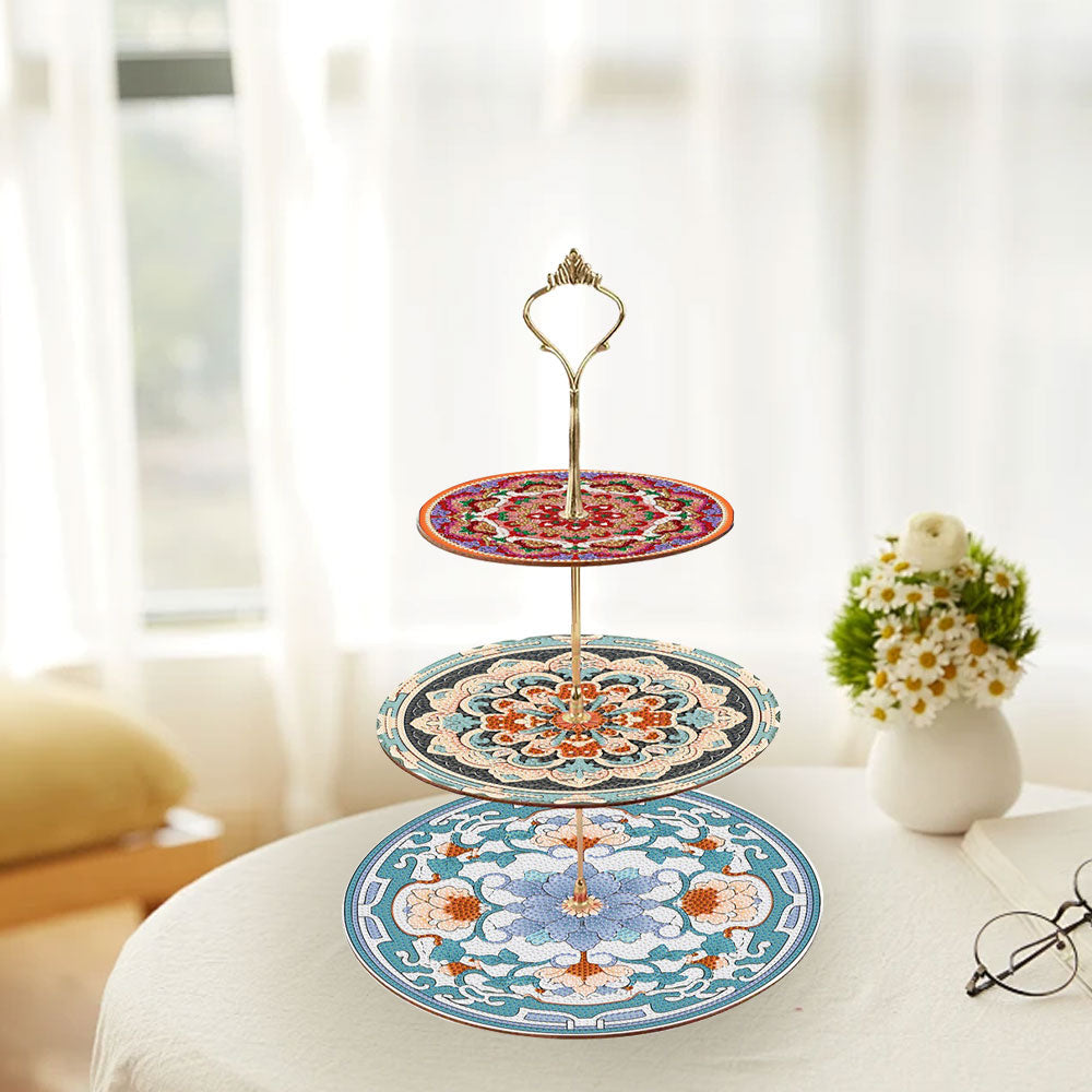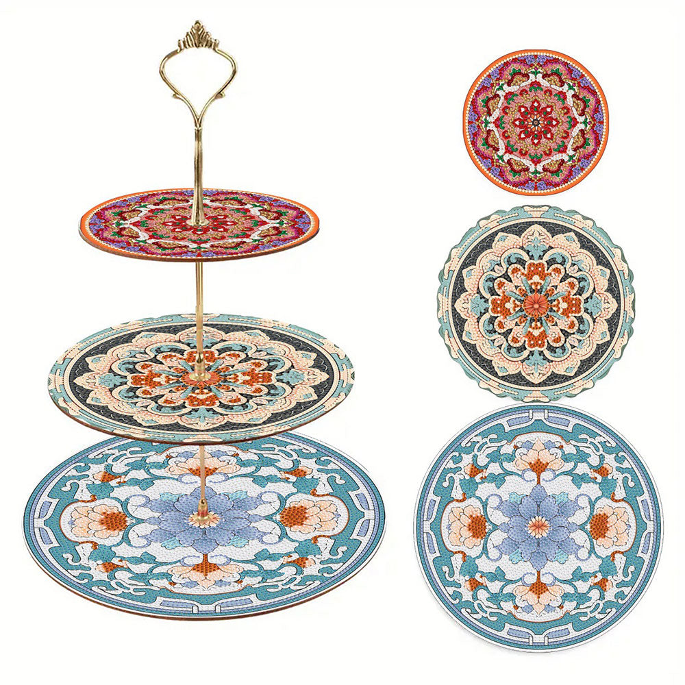 3-Stufig Blaues und rotes Mandala Acryl Serviertablett Diamond Painting