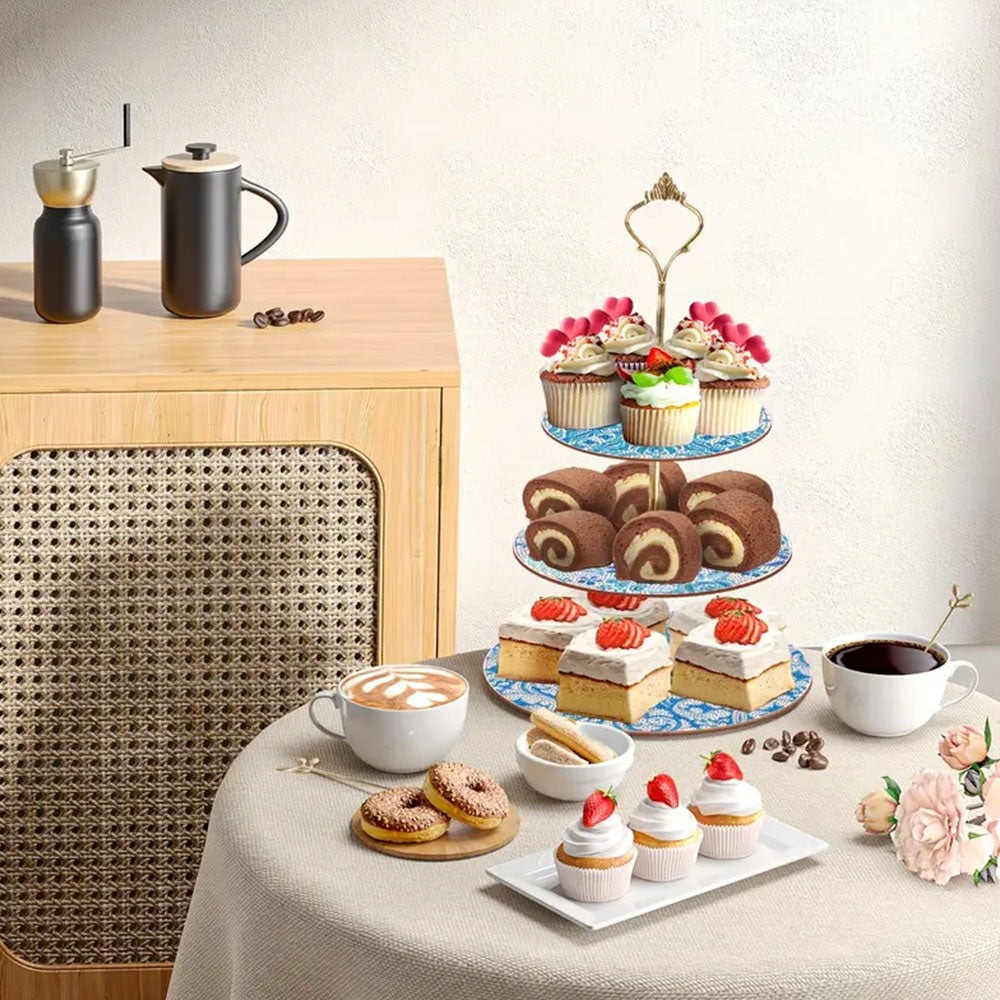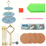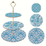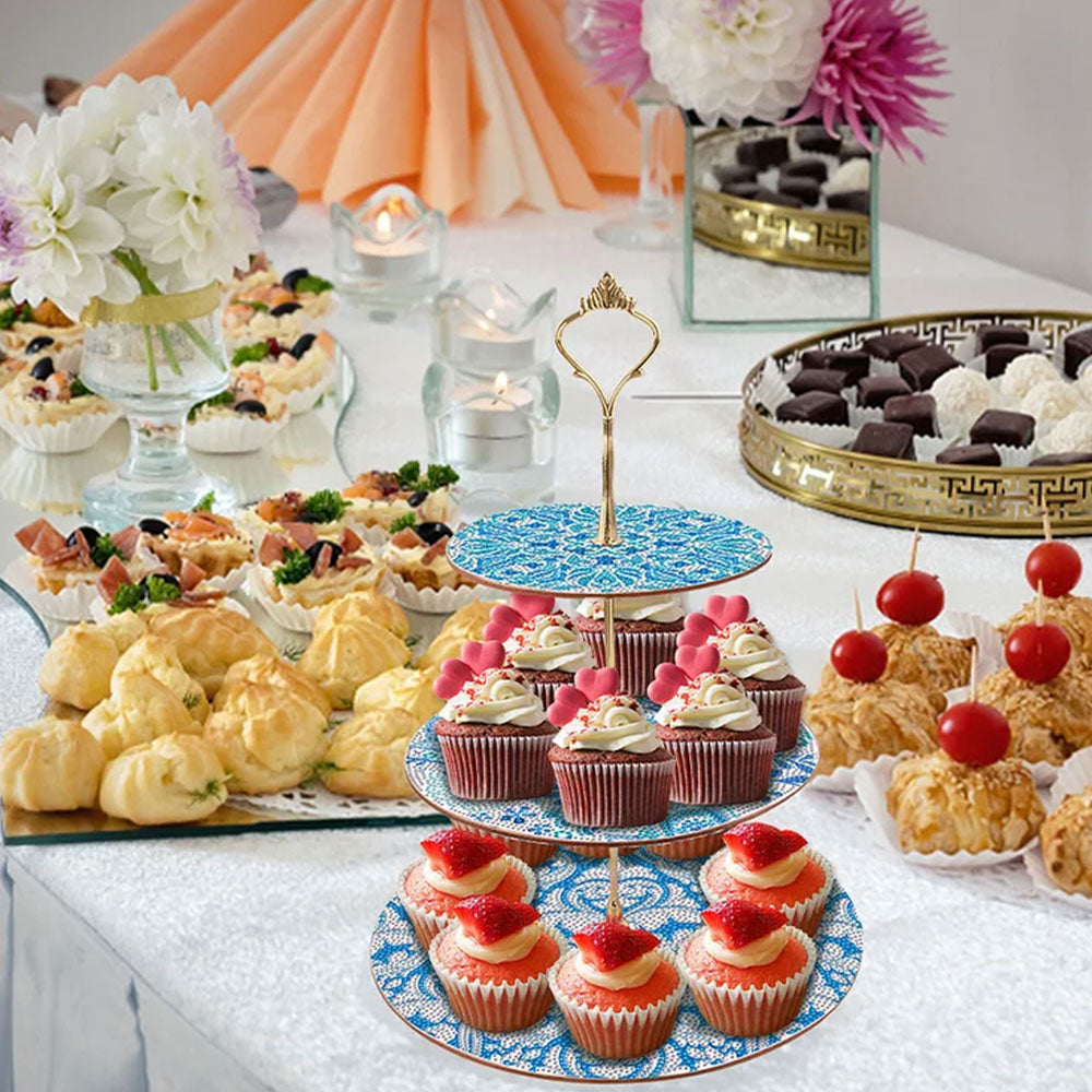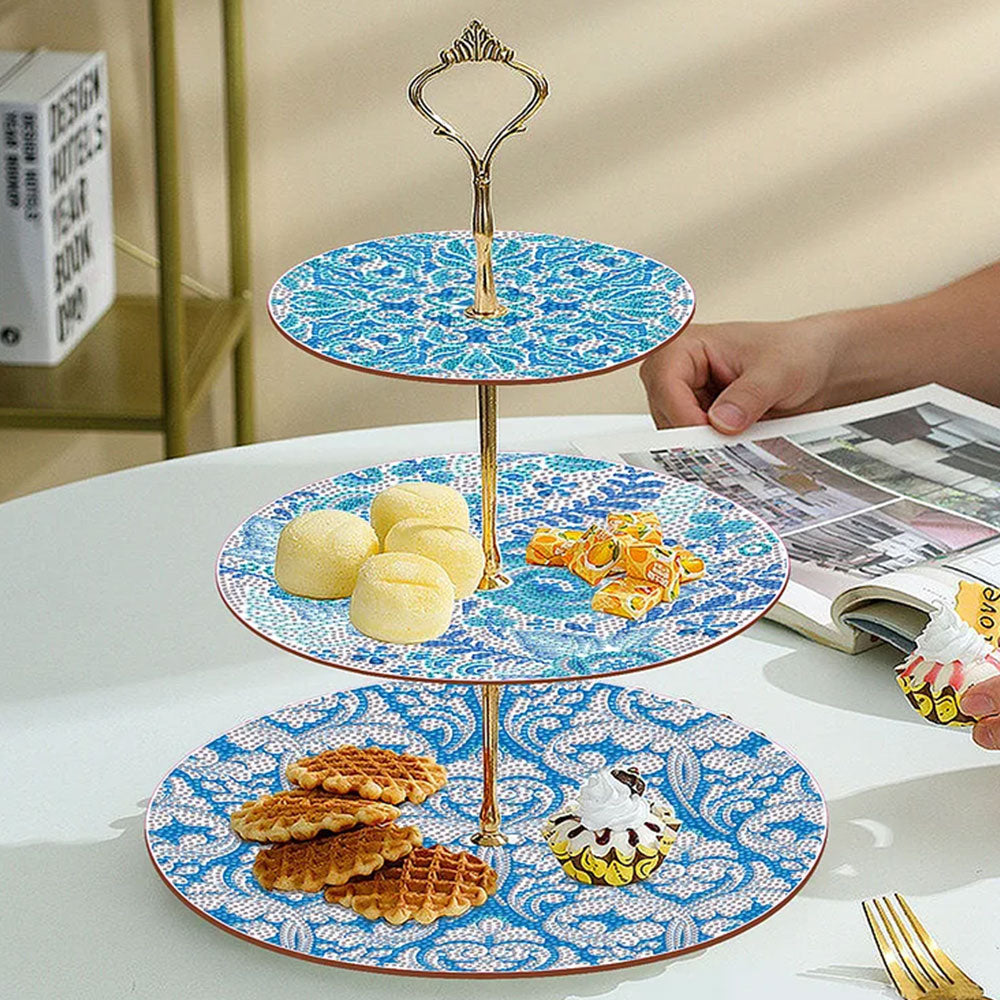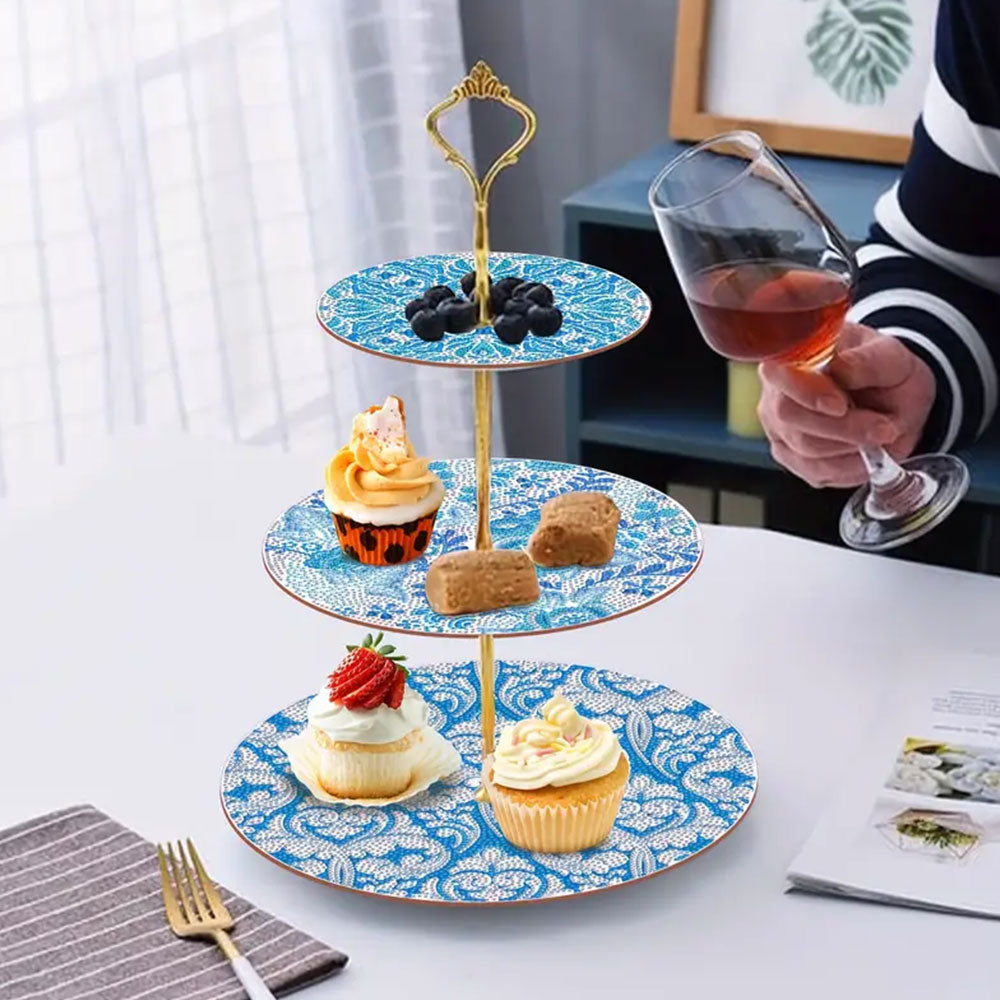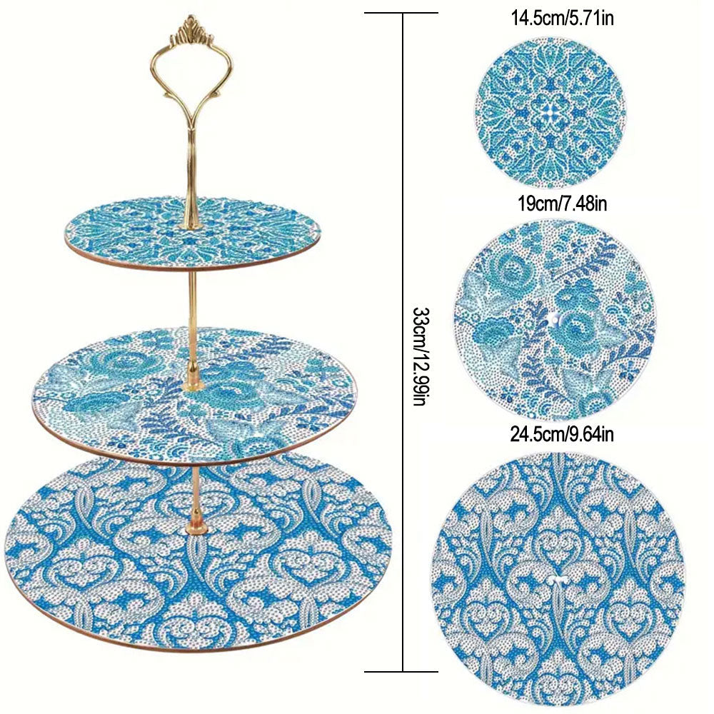 3-Stufig Blaues und weißes Blumenmuster Acryl Serviertablett Diamond Painting