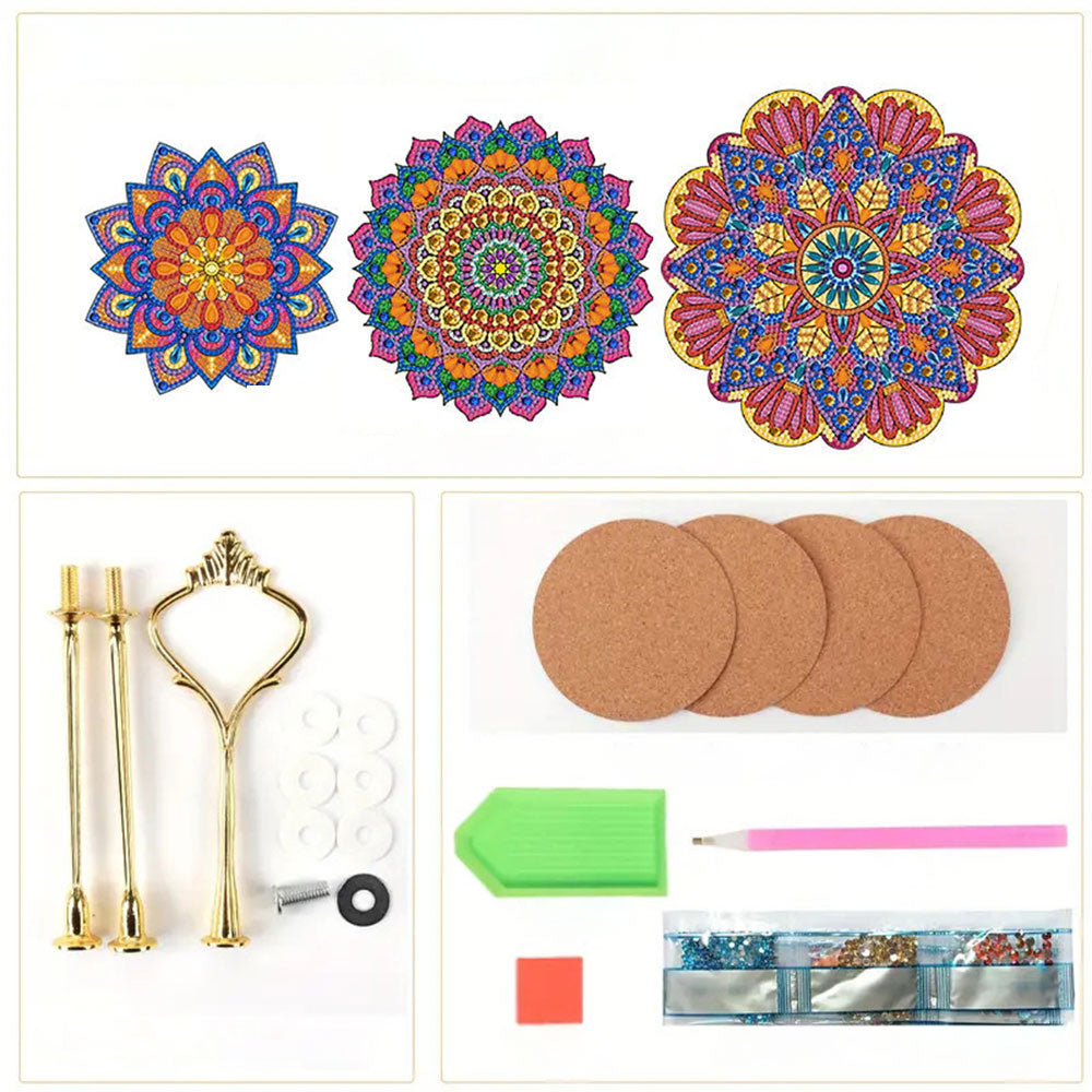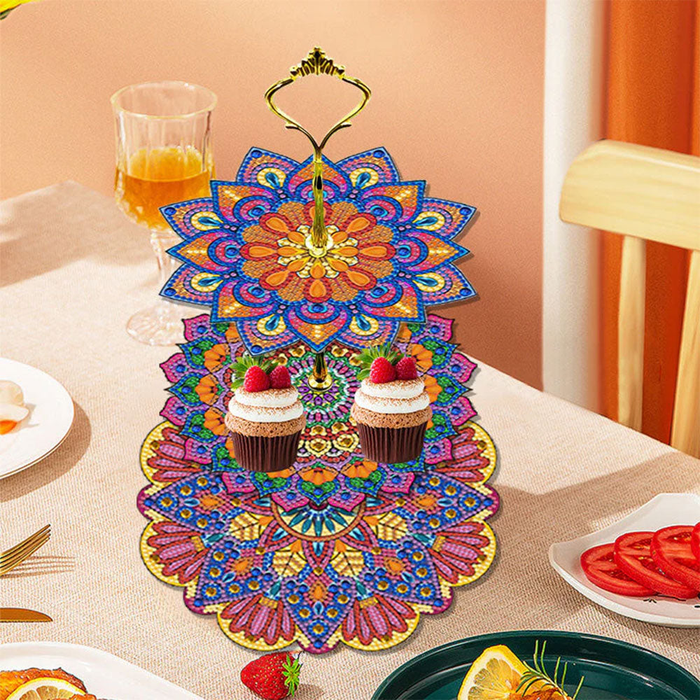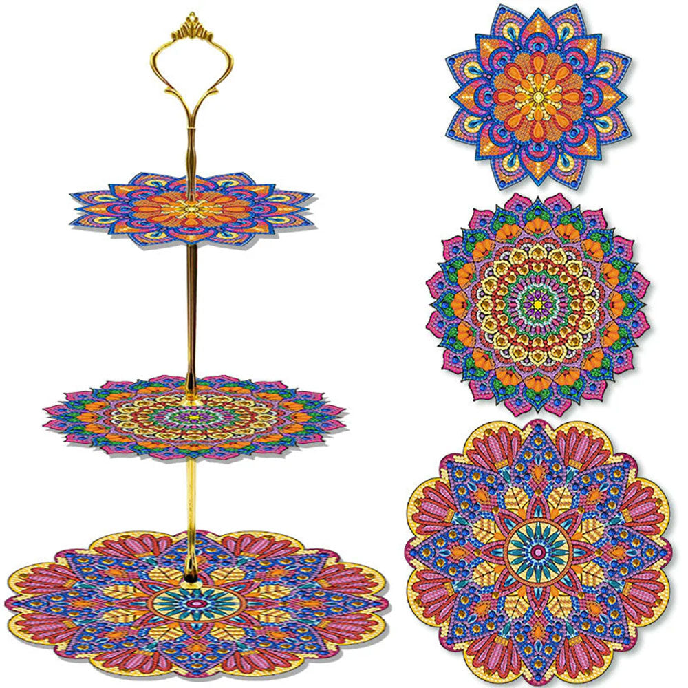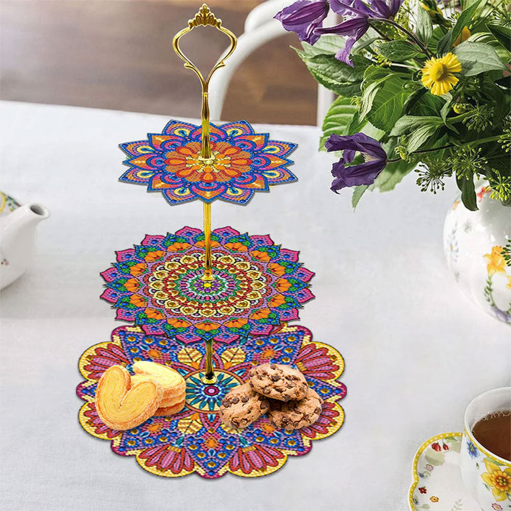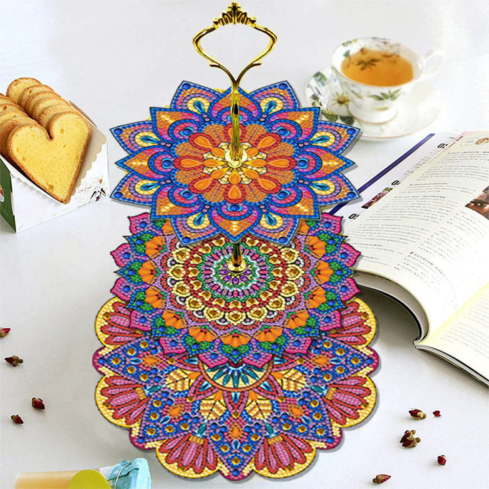 3-Stufig Blütenblattförmiges Mandala Acryl Serviertablett Diamond Painting