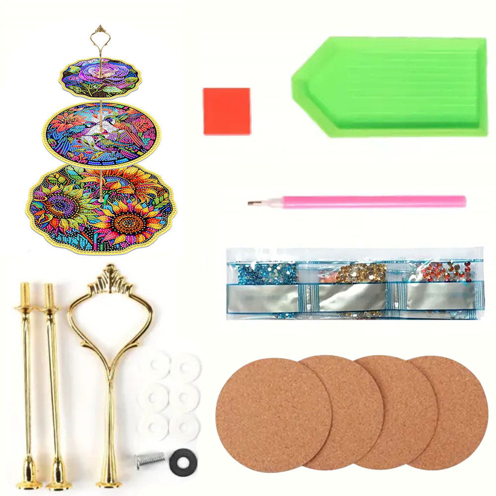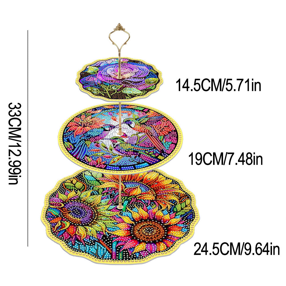 3-Stufig Blumen und Kolibris Acryl Serviertablett Diamond Painting