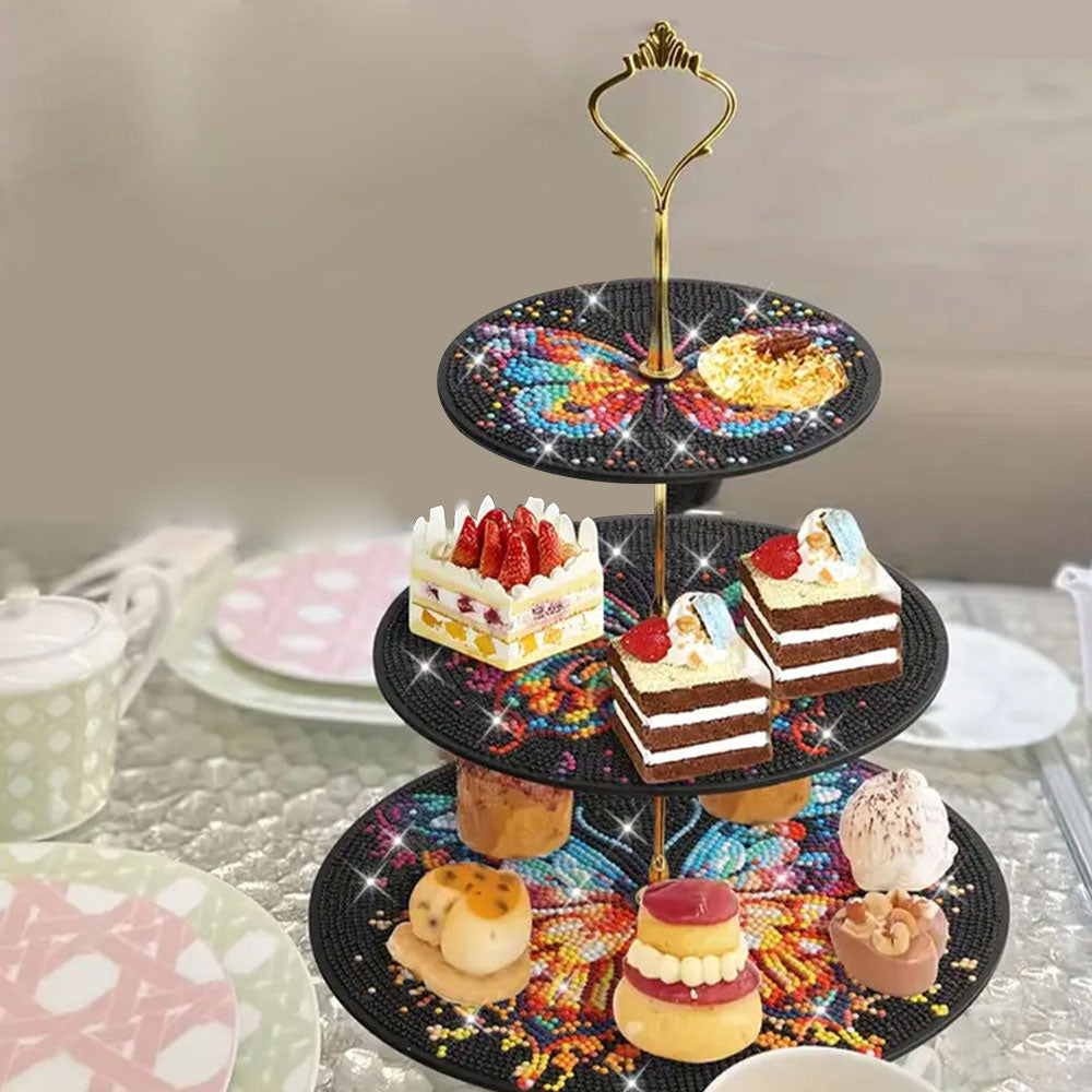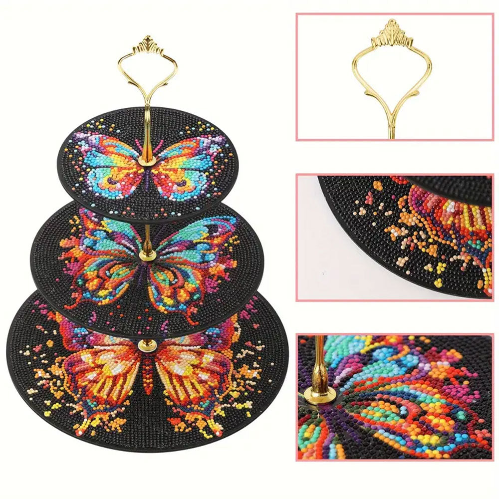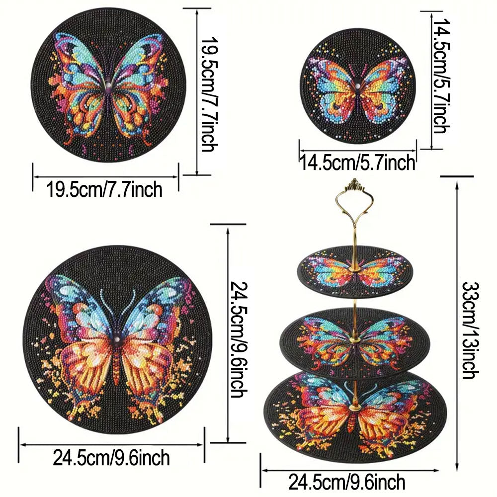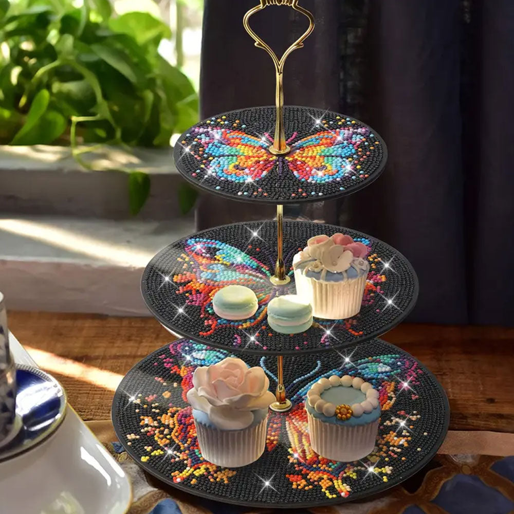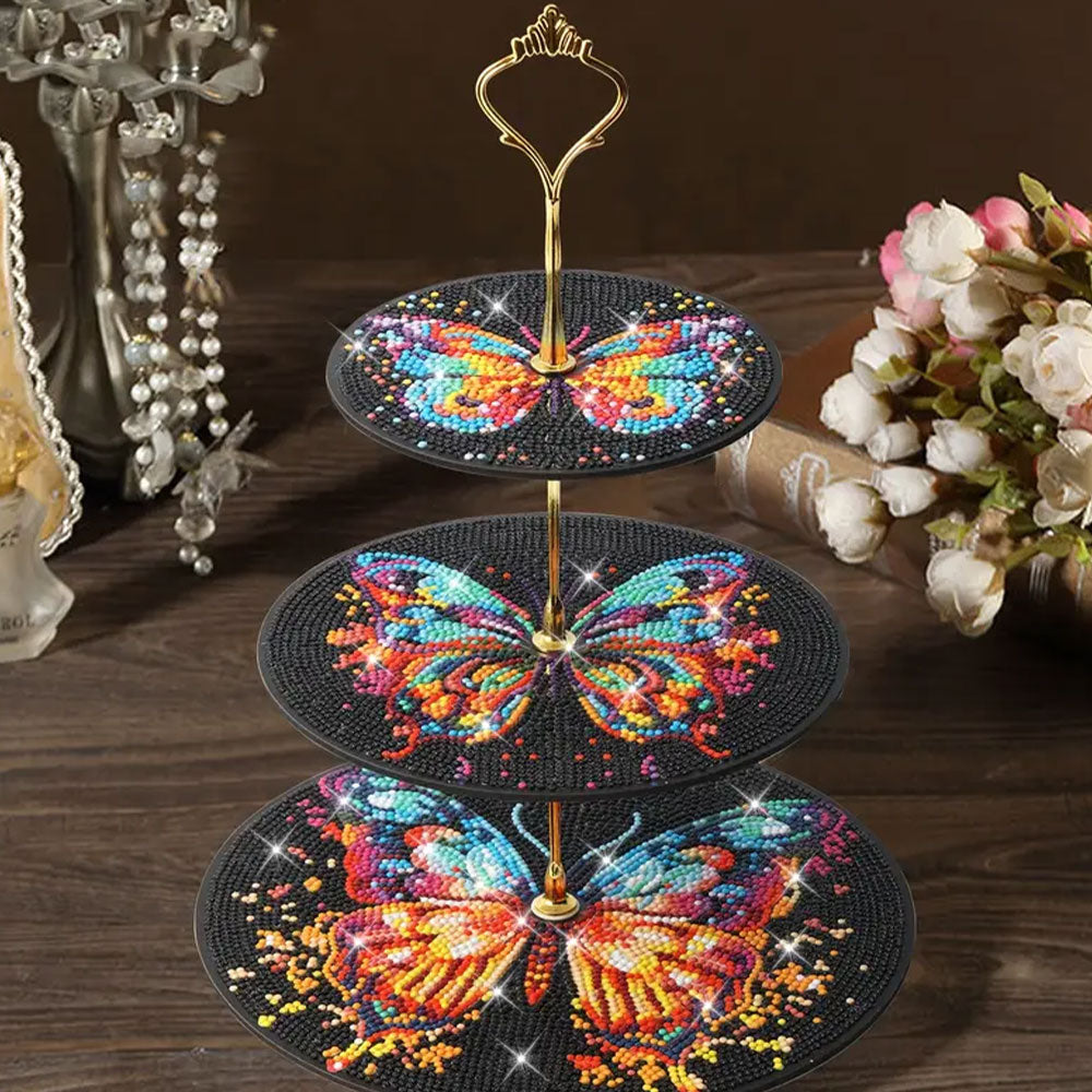 3-Stufig Bunter Schmetterling im Dunkeln Acryl Serviertablett Diamond Painting