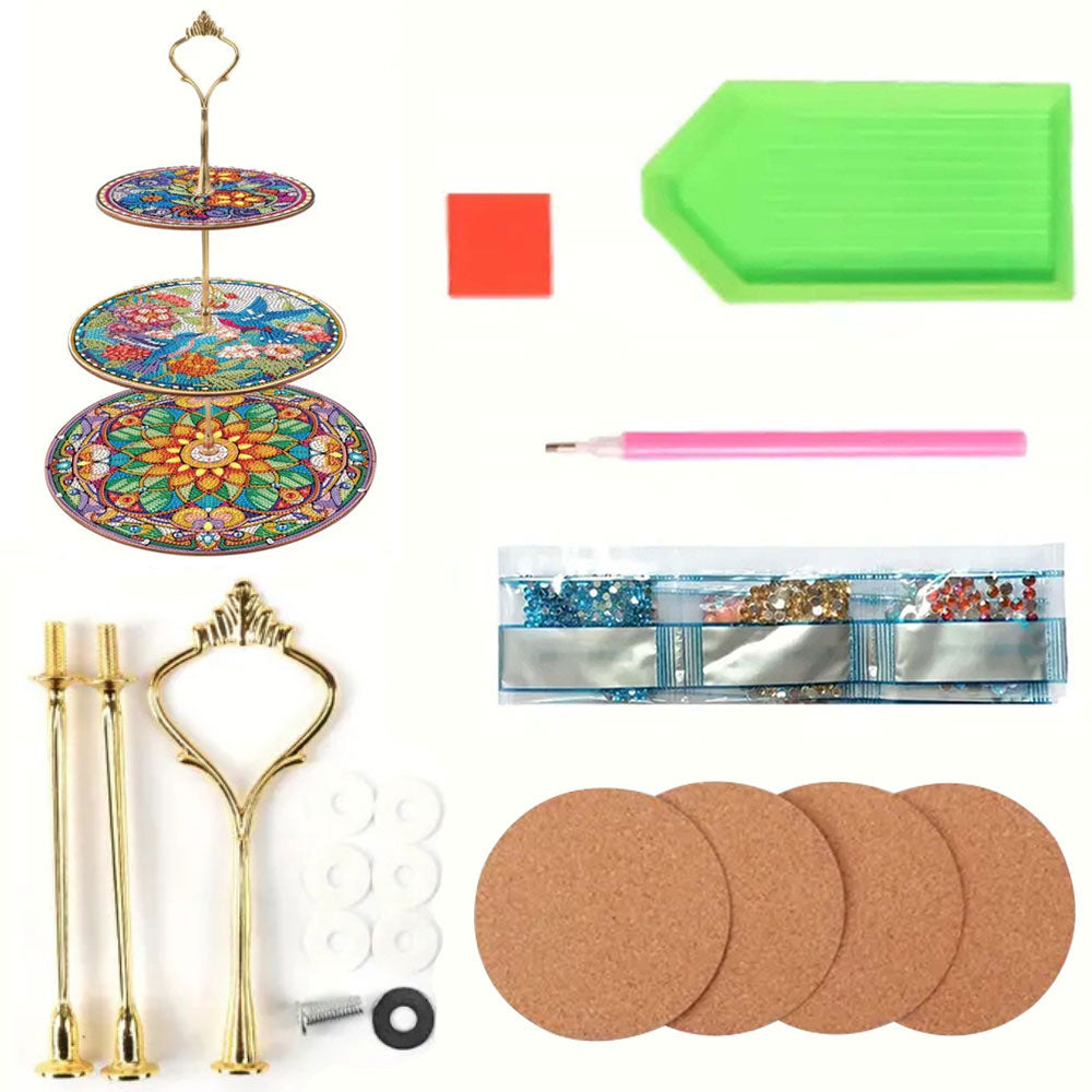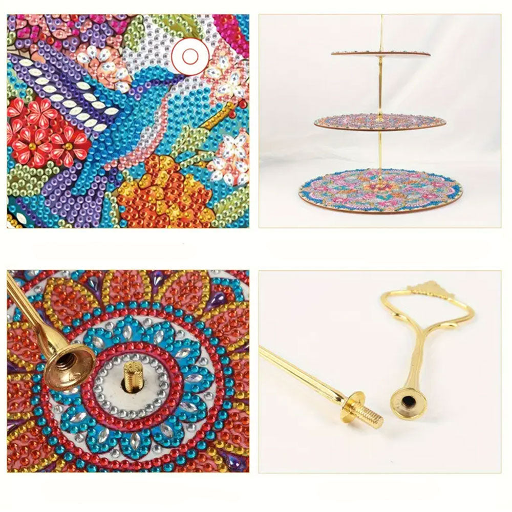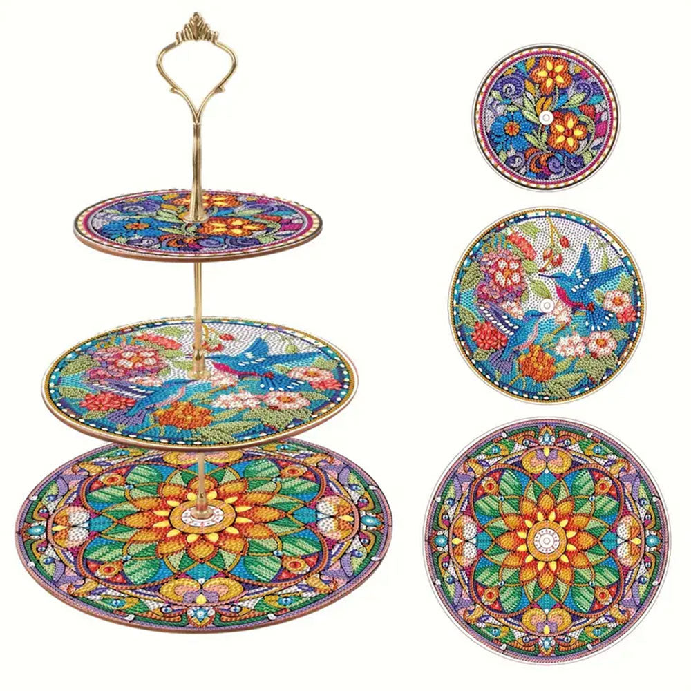 3-Stufig Buntes Mandala und Vogel Acryl Serviertablett Diamond Painting