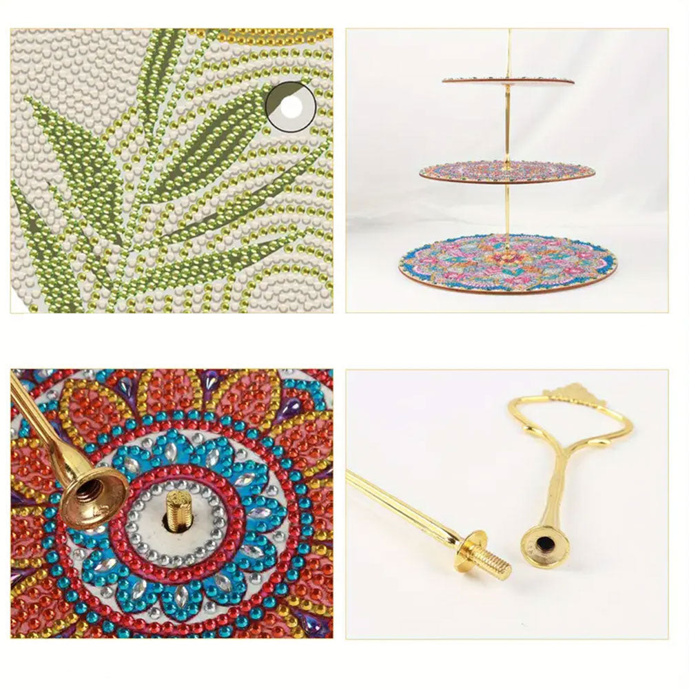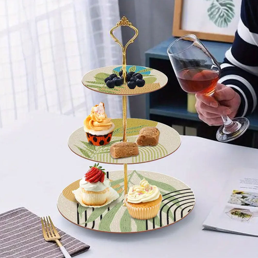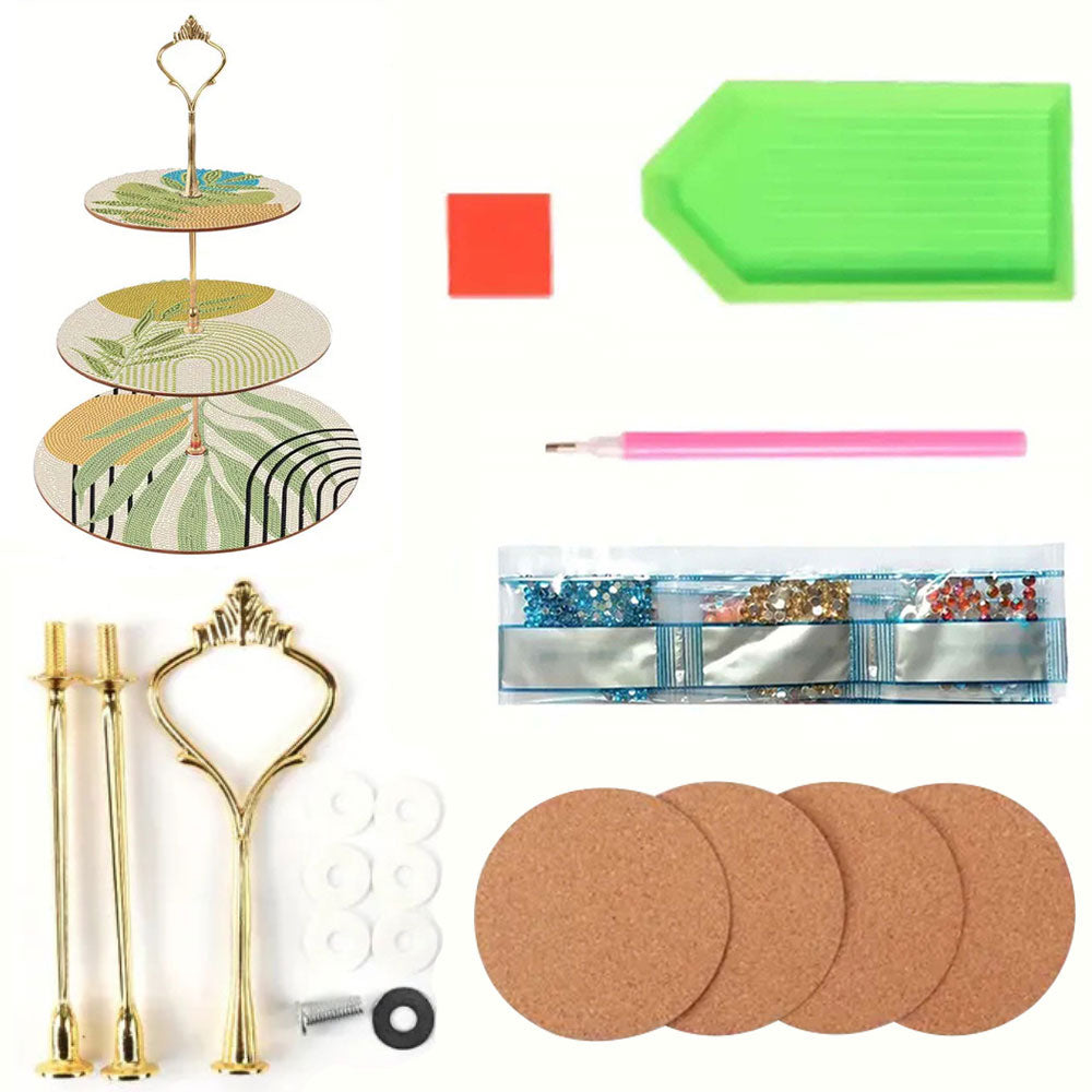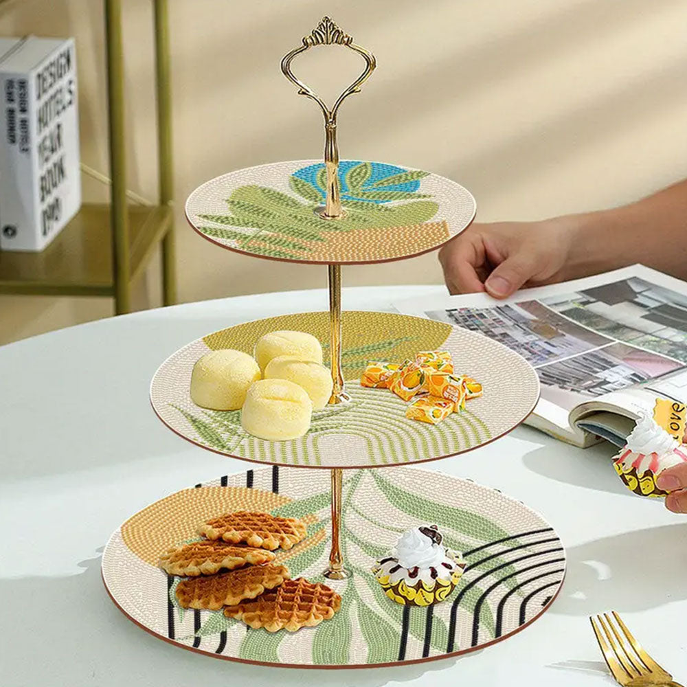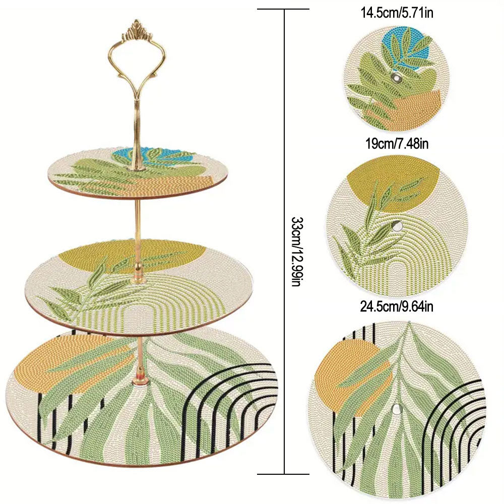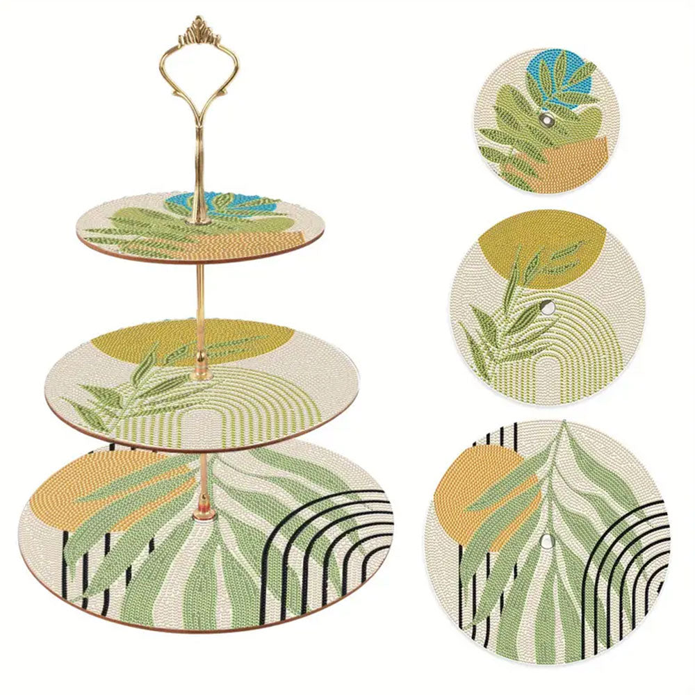 3-Stufig Grüne Blätter Acryl Serviertablett Diamond Painting