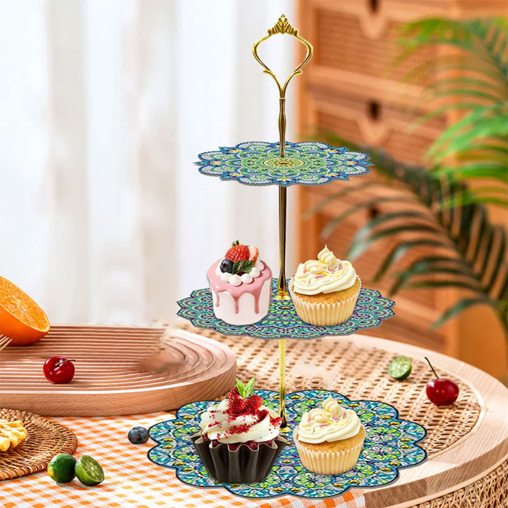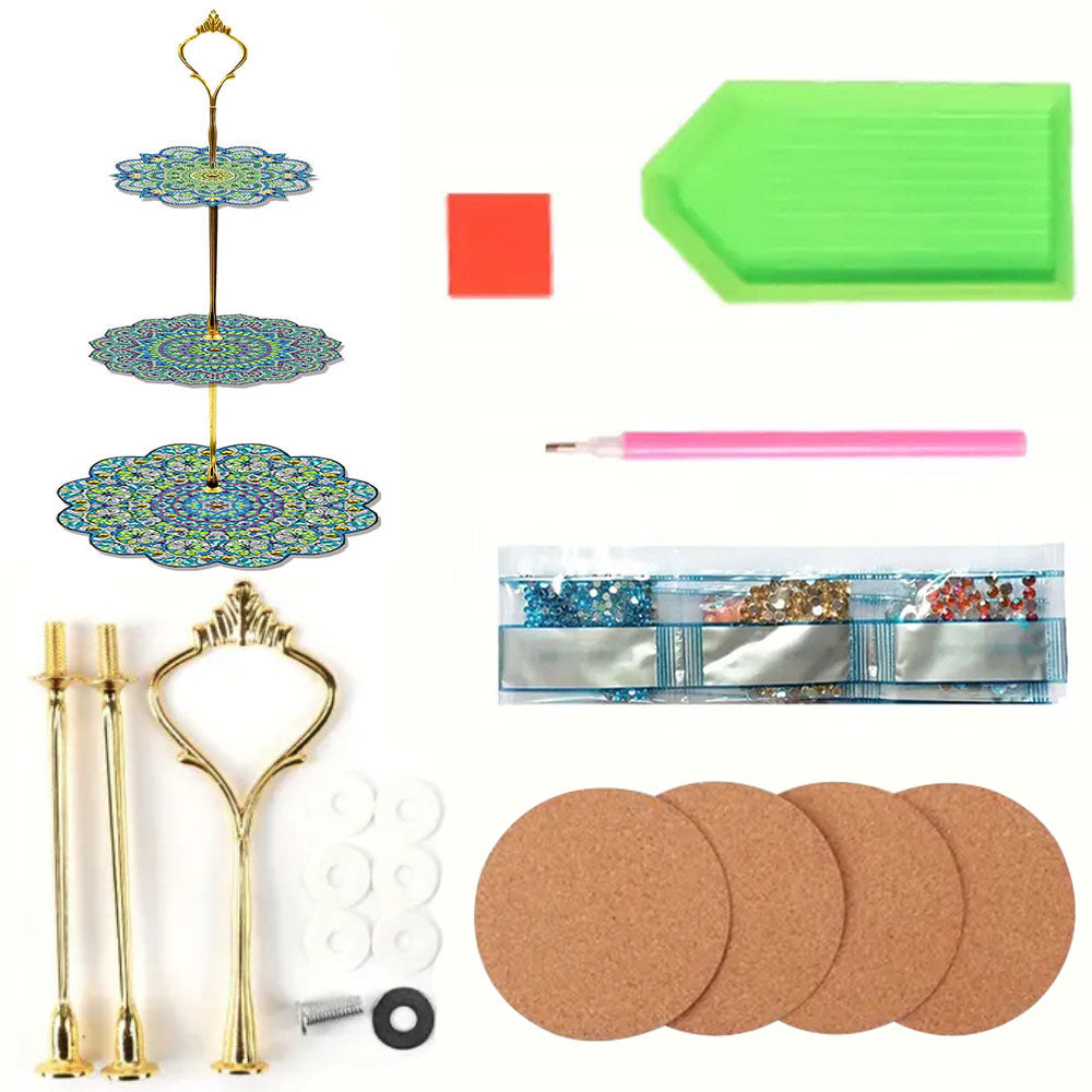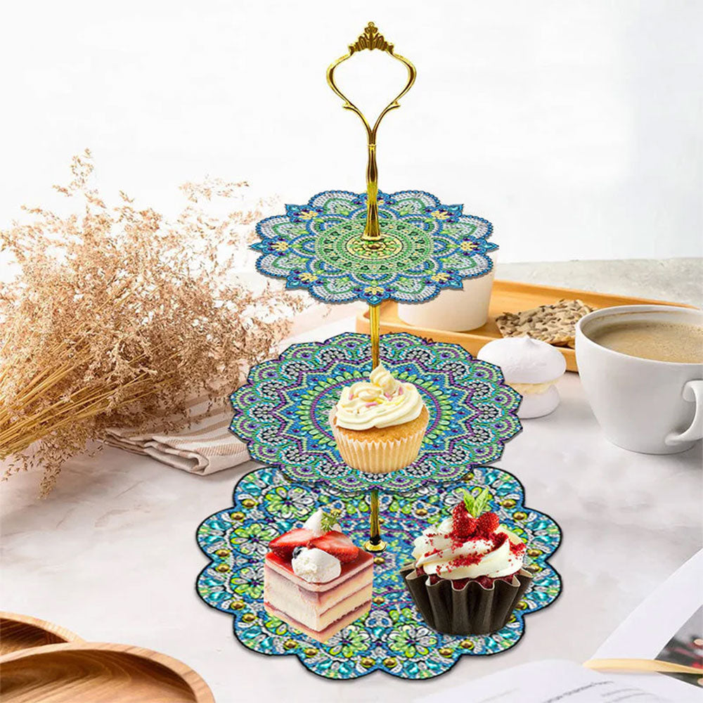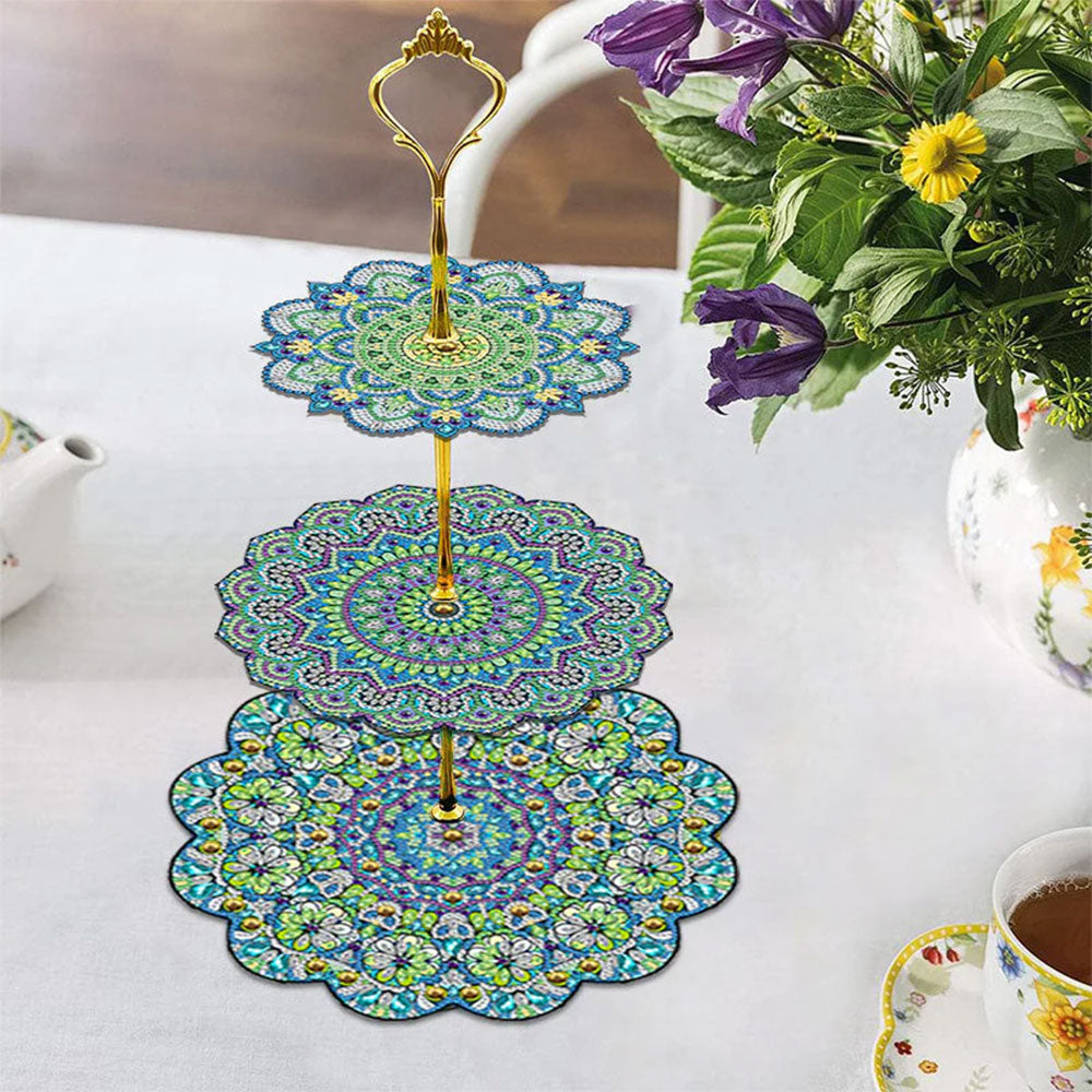3-Stufig Grüne Blumen Mandala Acryl Serviertablett Diamond Painting