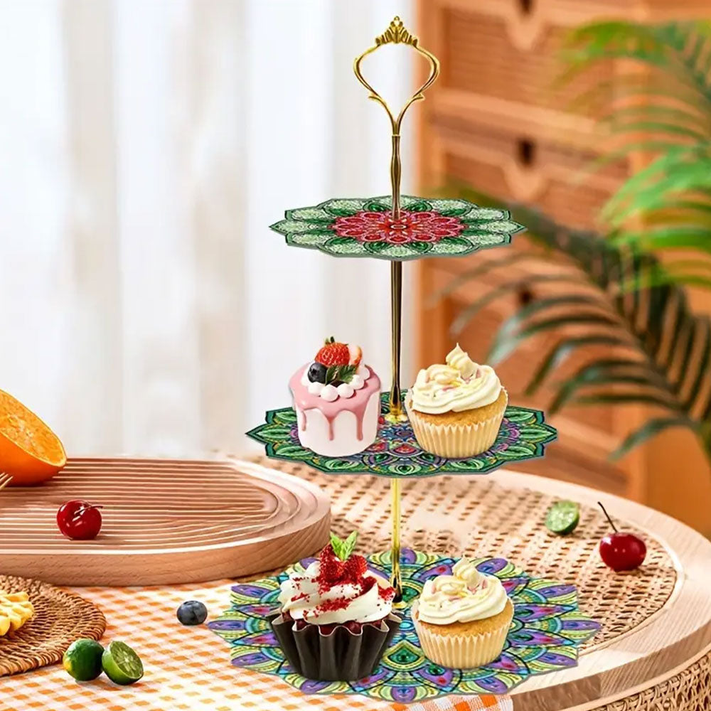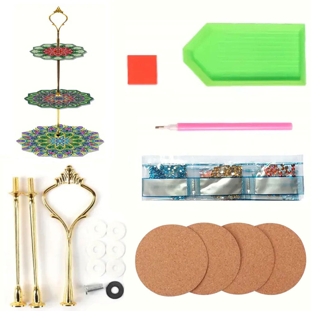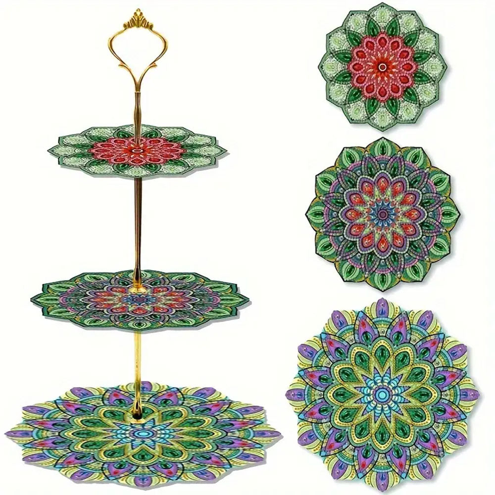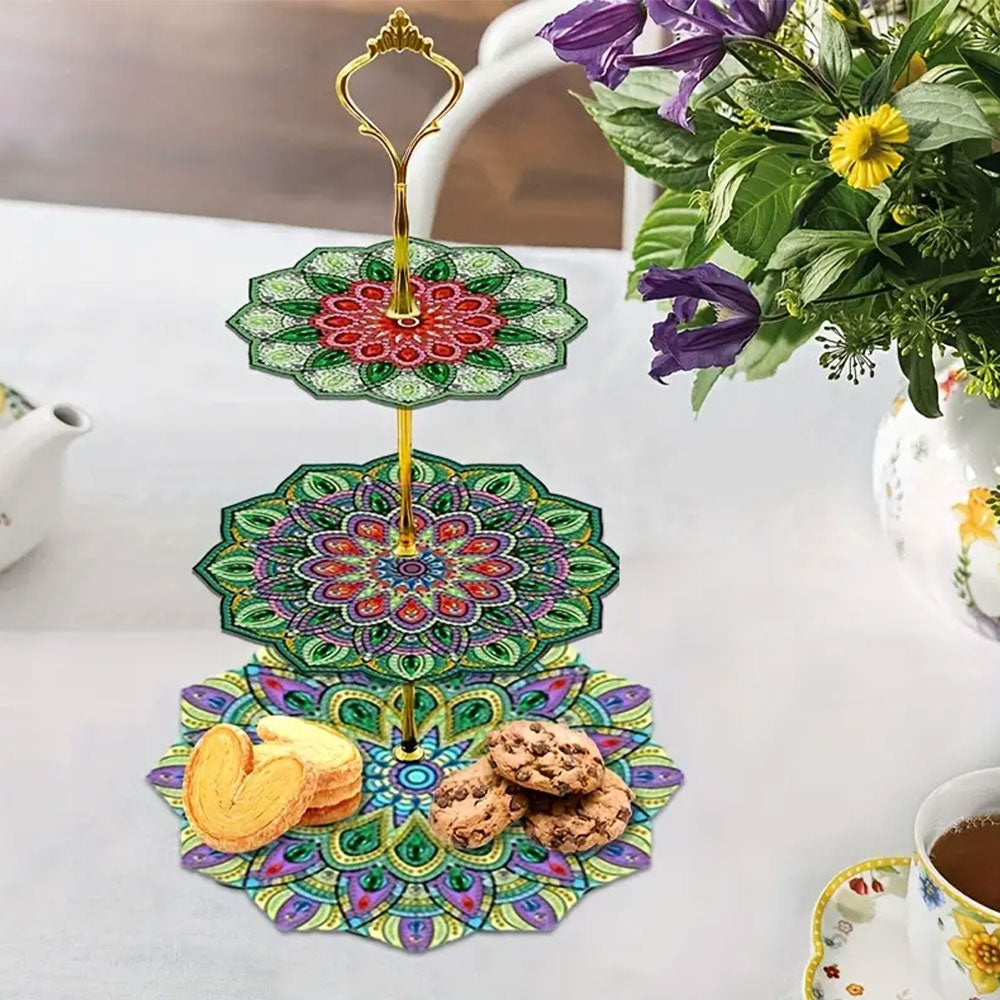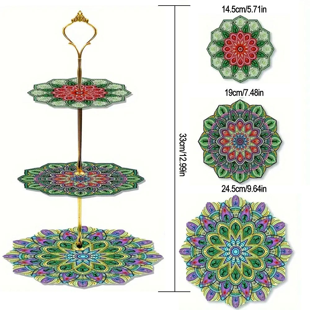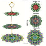 3-Stufig Grüne Blumen Mandala Acryl Serviertablett Diamond Painting