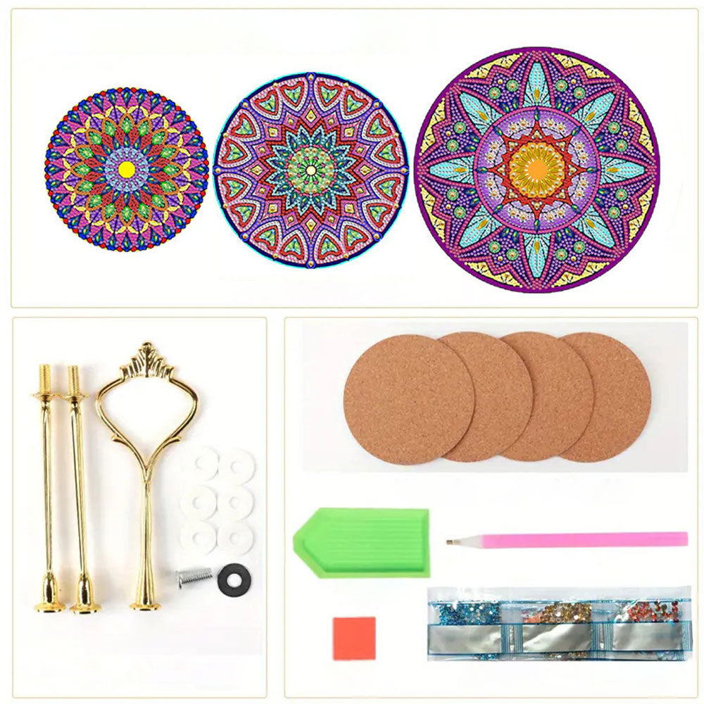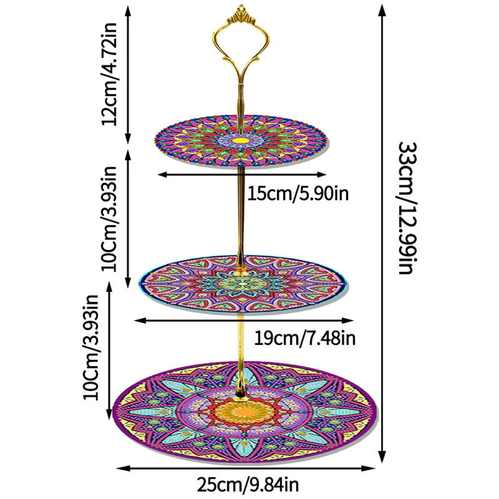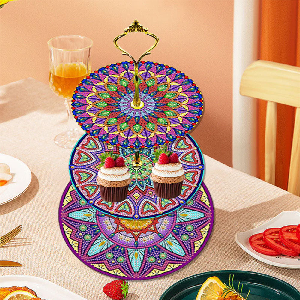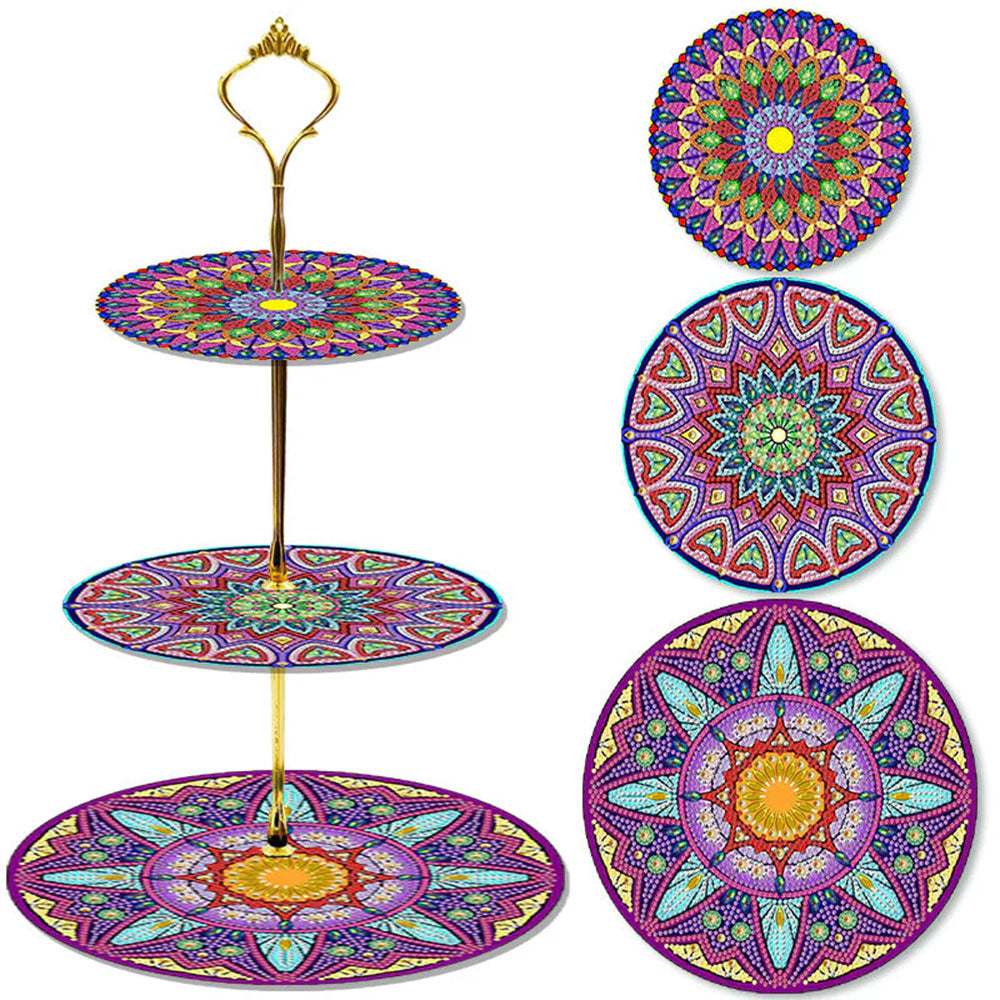 3-Stufig Lila Rotes Mandala Acryl Serviertablett Diamond Painting