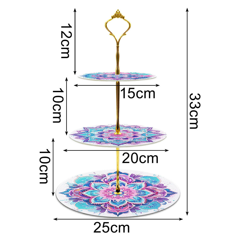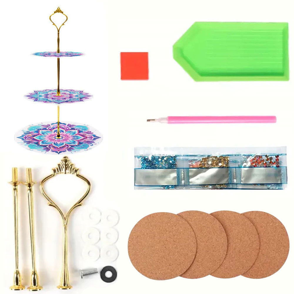 3-Stufig Rosa und grüner Lotus Mandala Acryl Serviertablett Diamond Painting