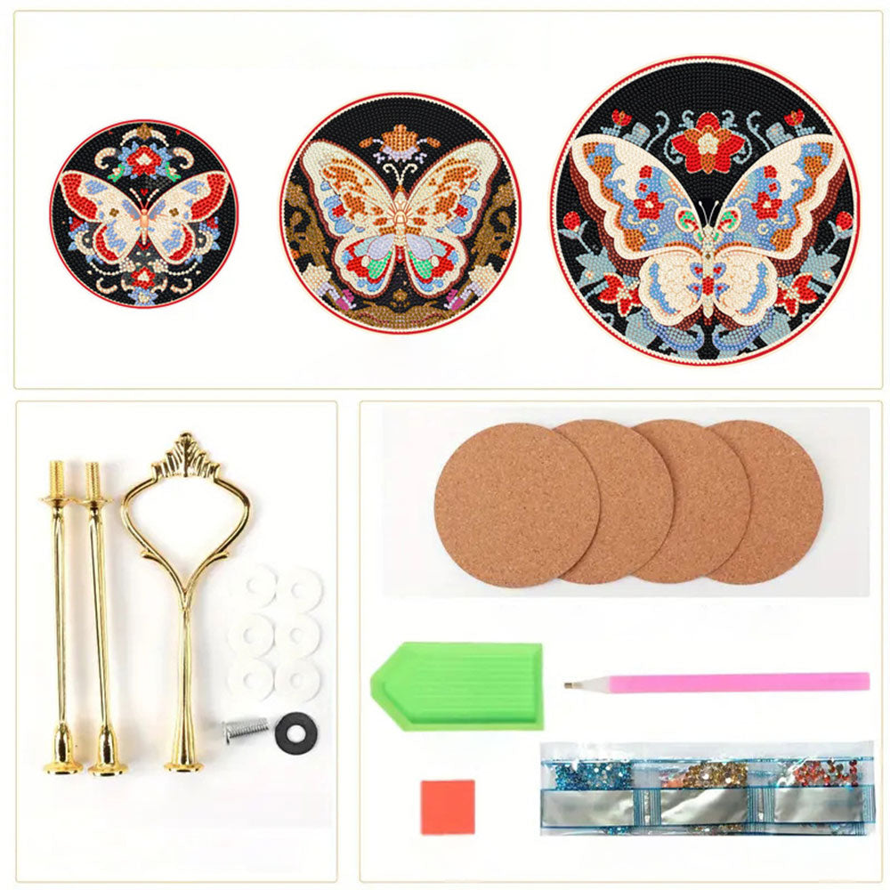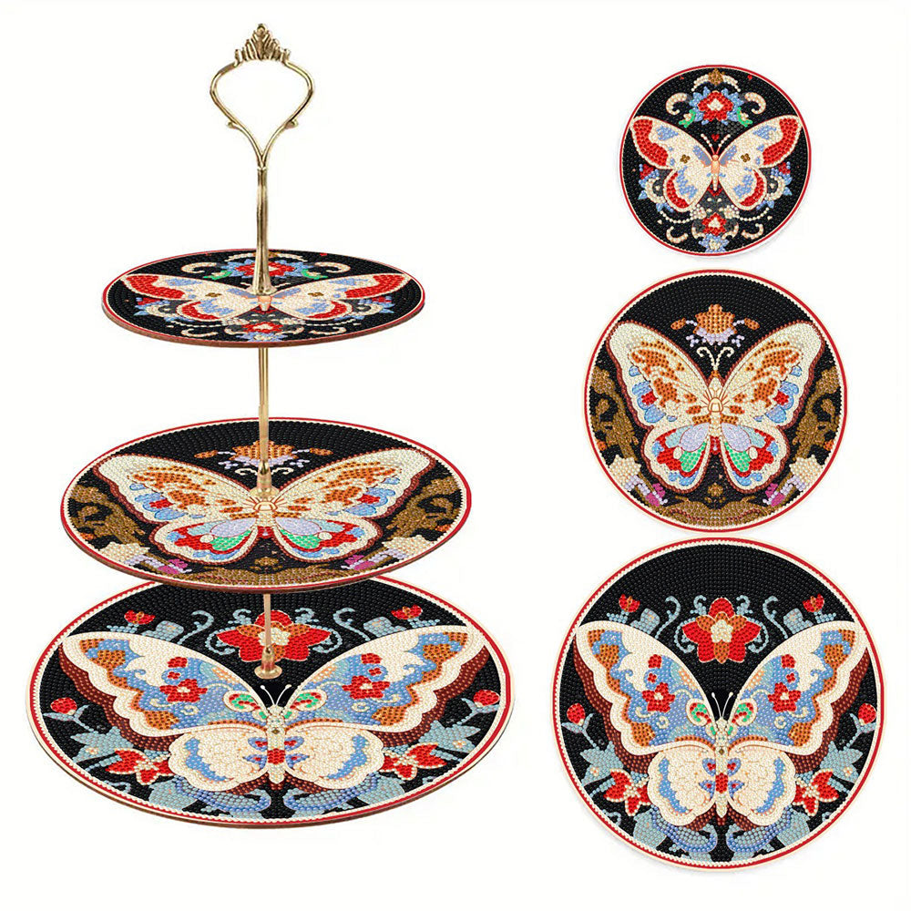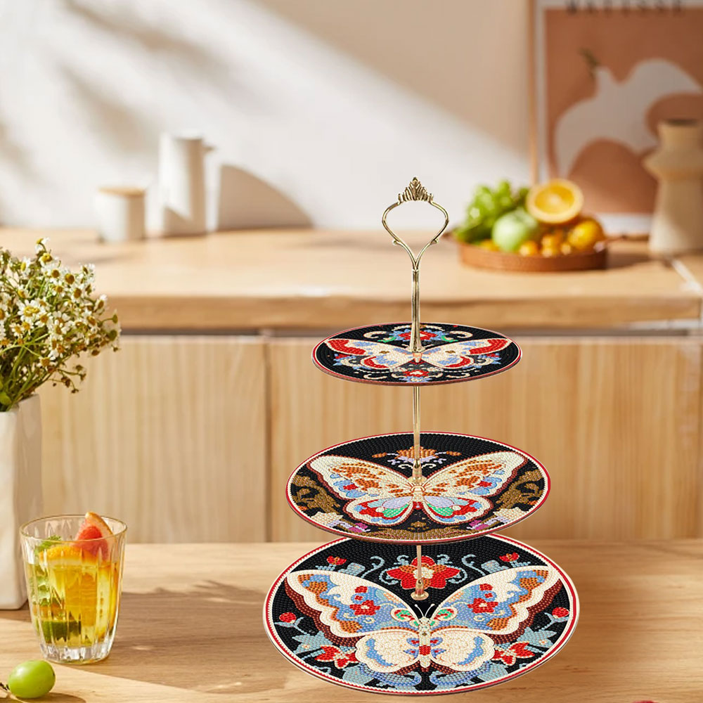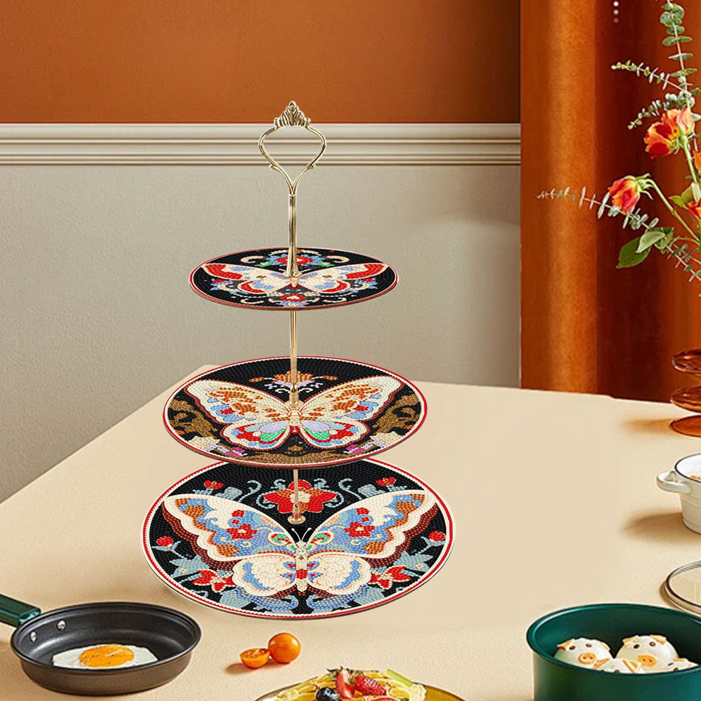 3-Stufig Schmetterling im Dunkeln Acryl Serviertablett Diamond Painting