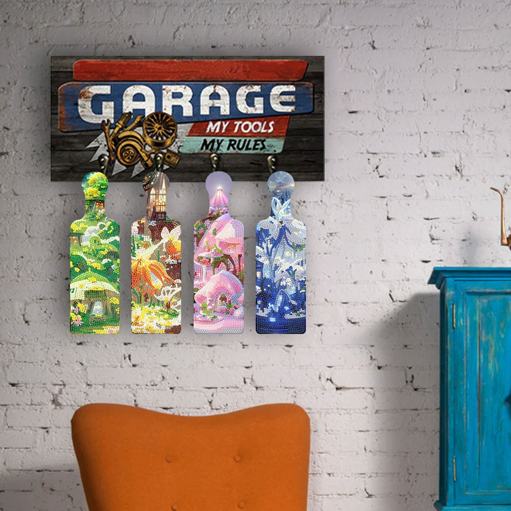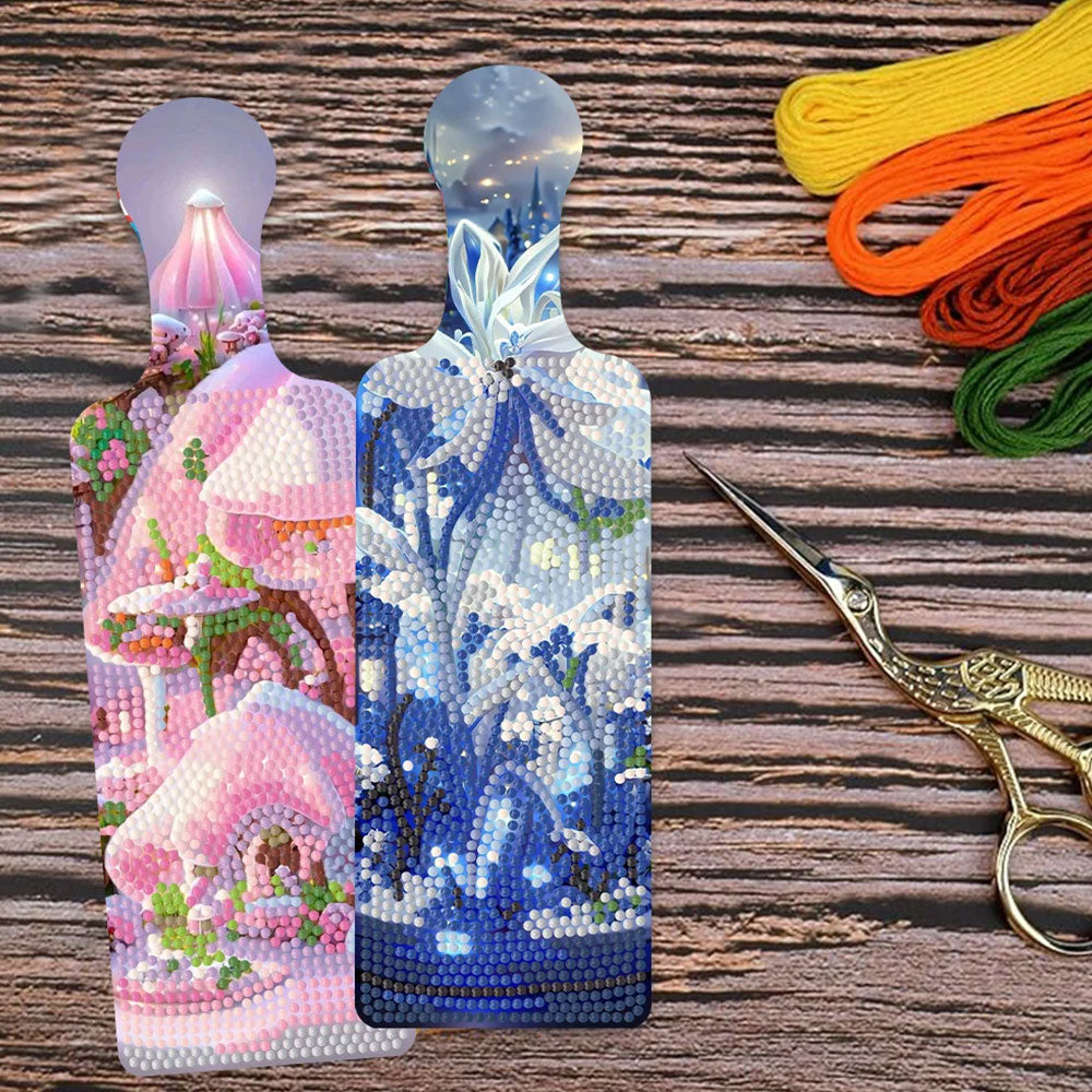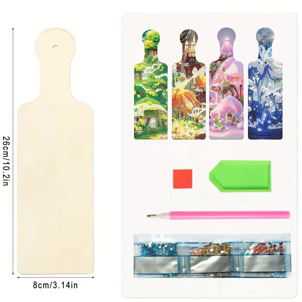 4Stück Blumen und Pilze Tablett Kunsthandwerk mit Griff Diamond Painting