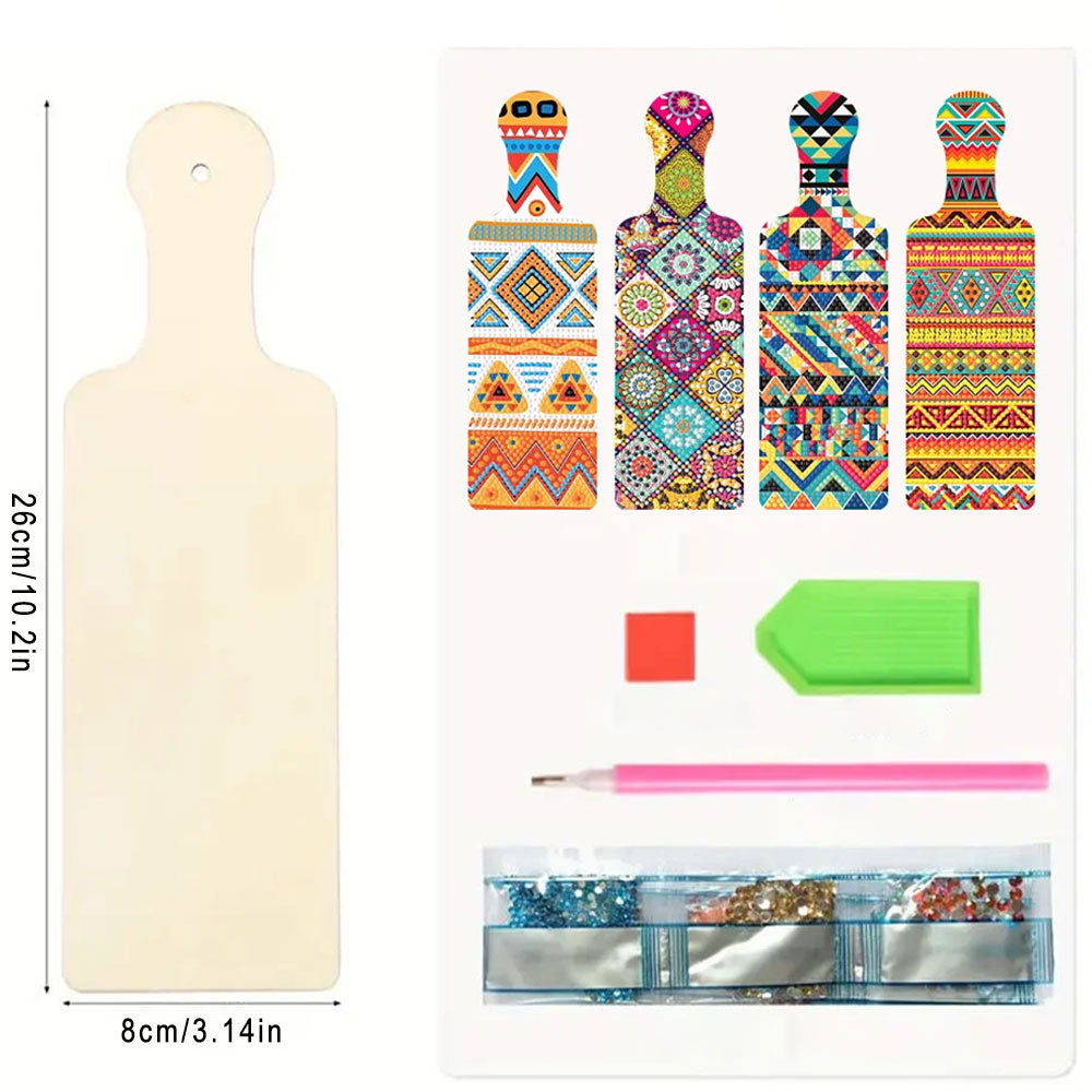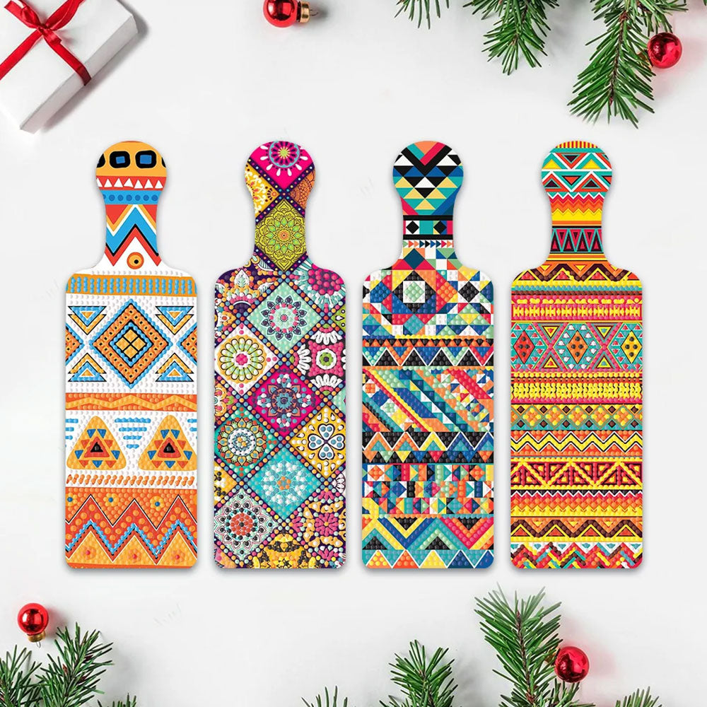 4Stück Boho Stil Tablett Kunsthandwerk mit Griff Diamond Painting