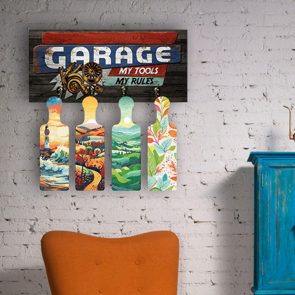 4Stück Natürliche Landschaften Tablett Kunsthandwerk mit Griff Diamond Painting