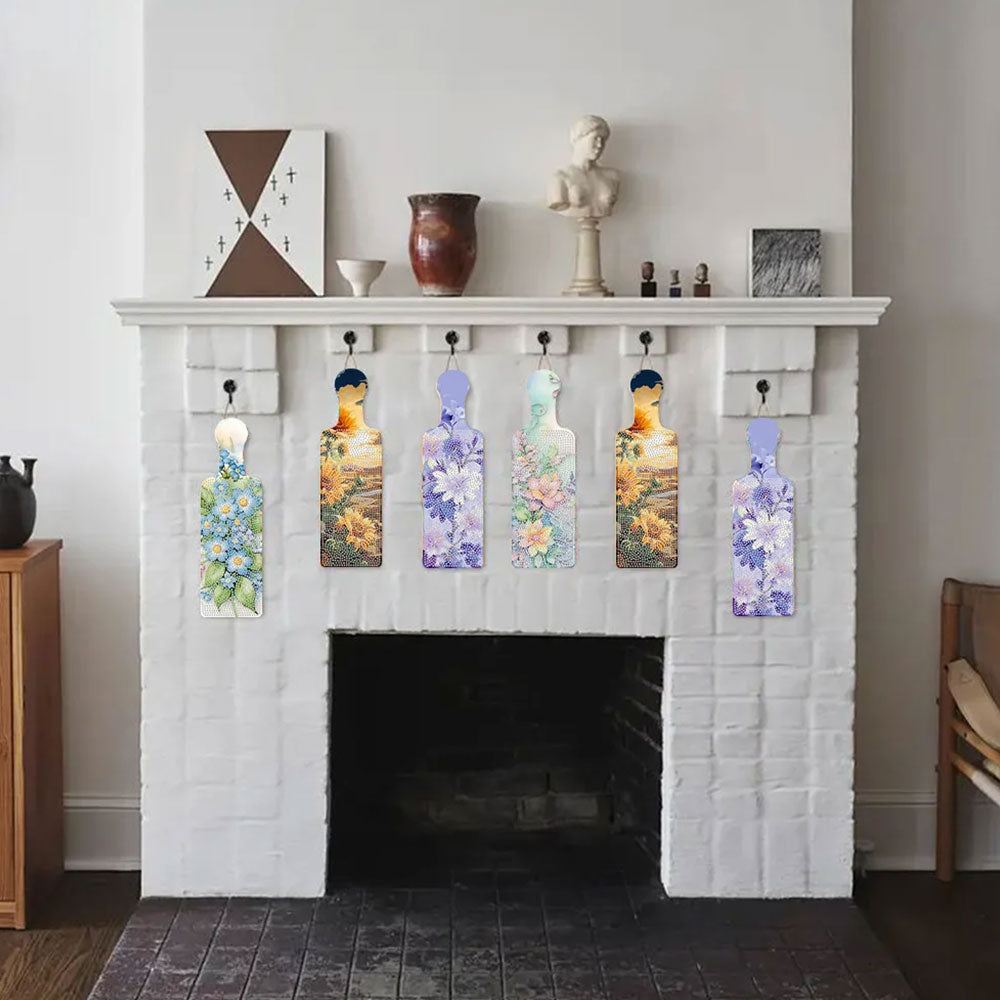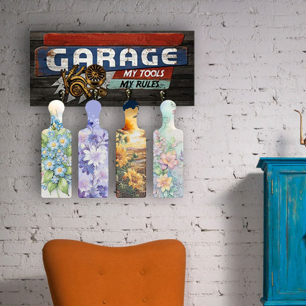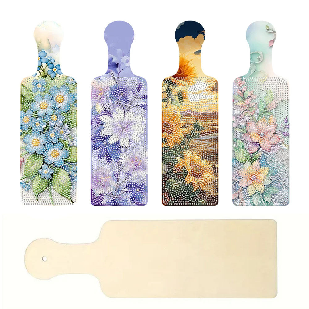 4Stück Schöne Blumen Tablett Kunsthandwerk mit Griff Diamond Painting