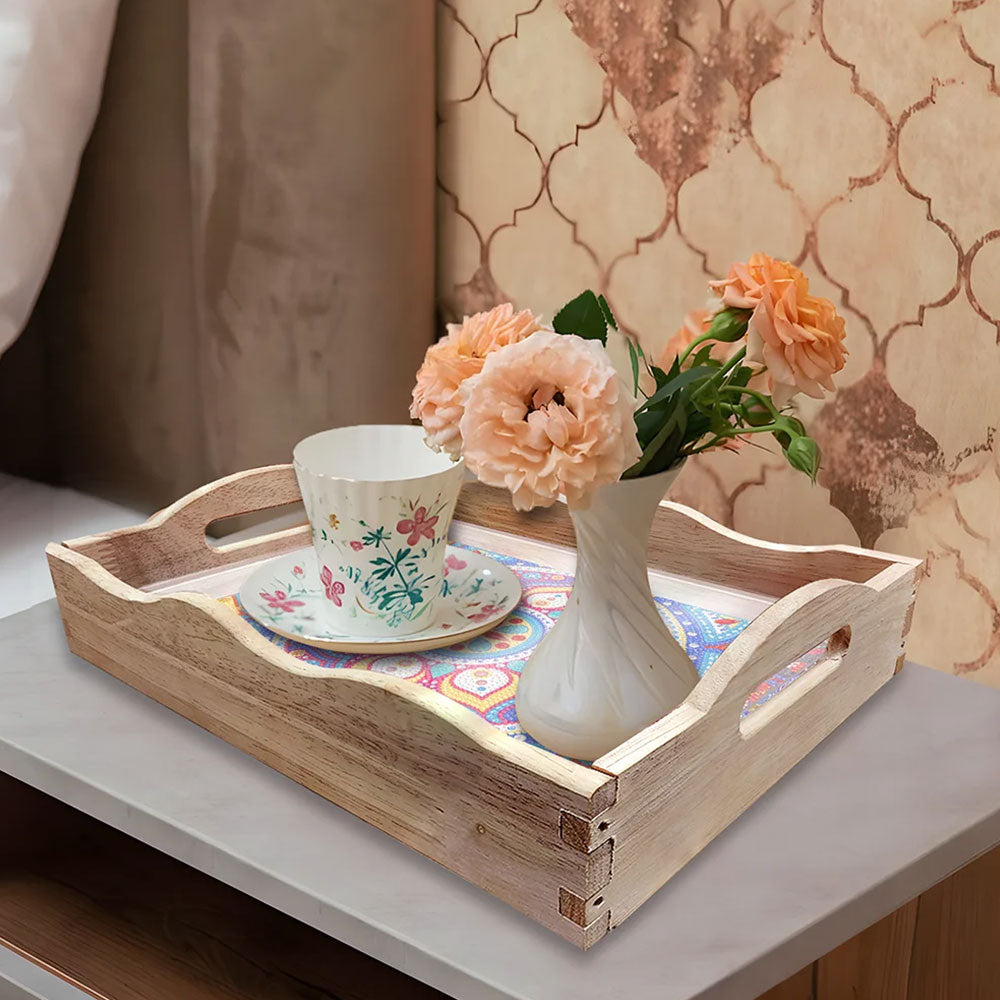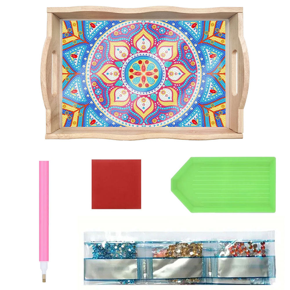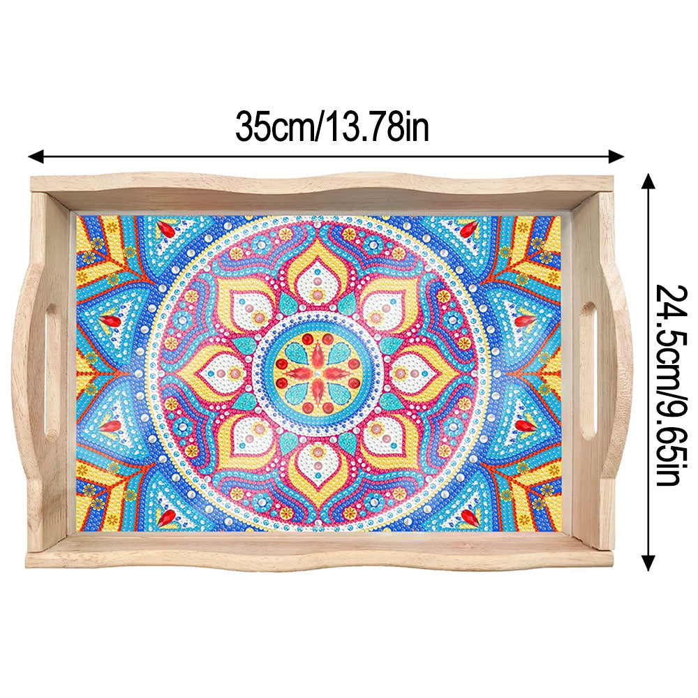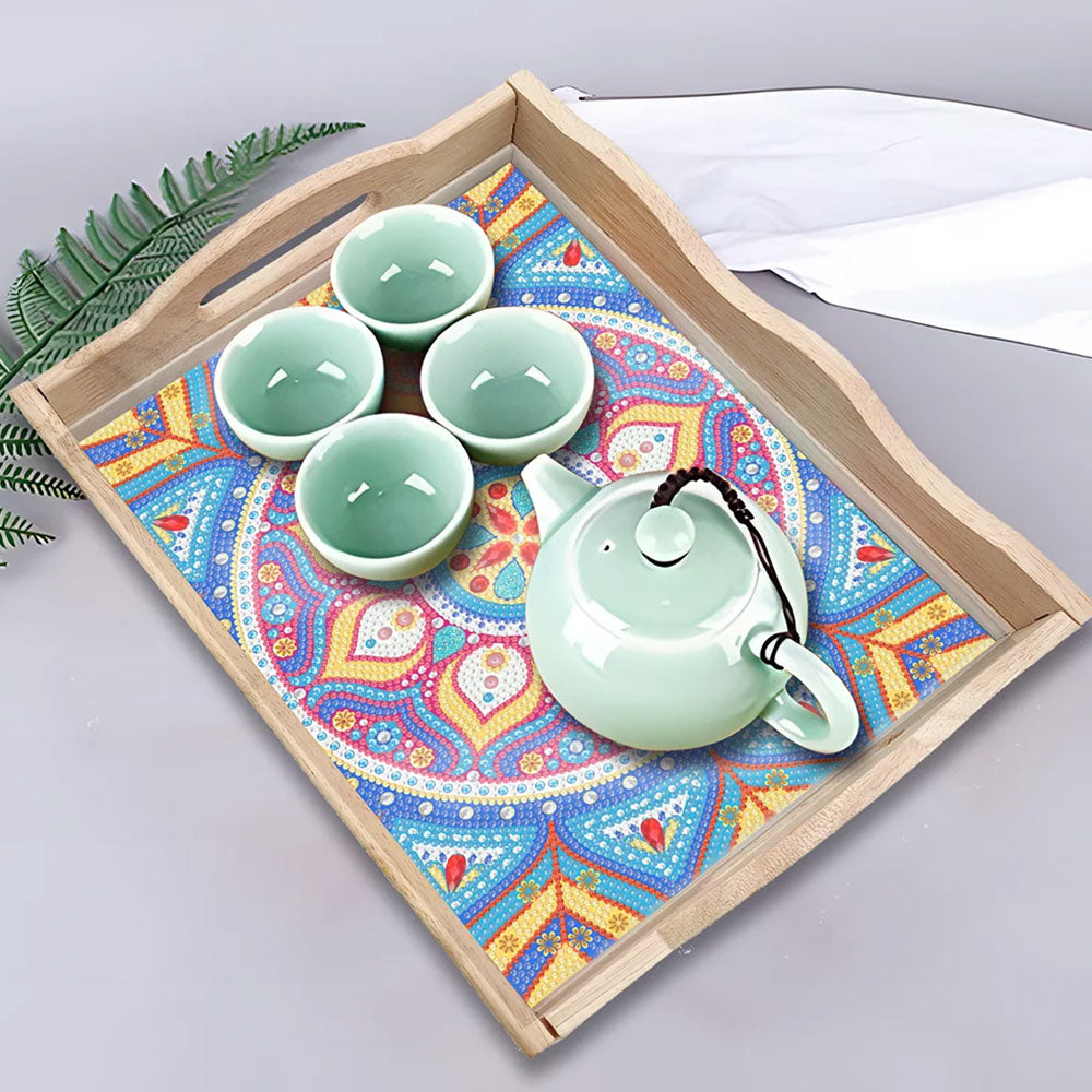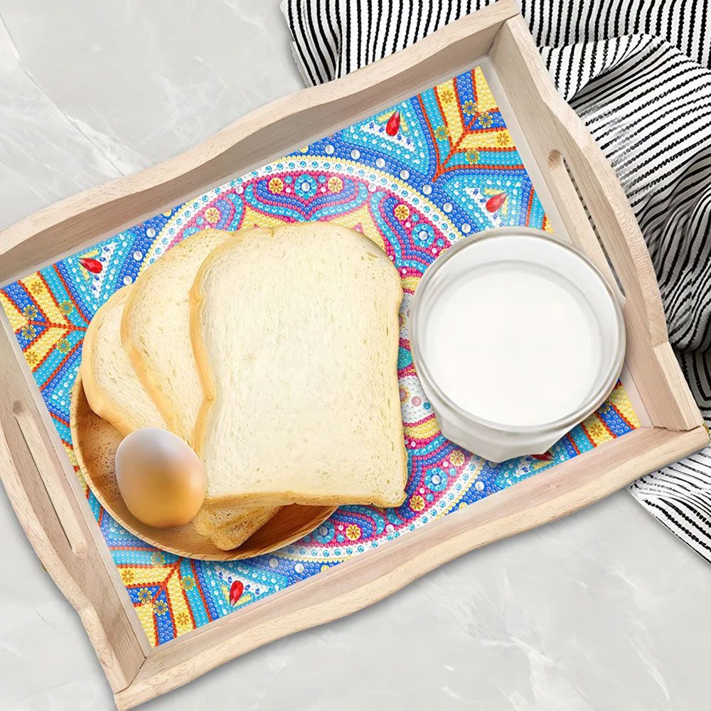 Blaues und lila Mandala Holz Serviertablett Diamond Painting