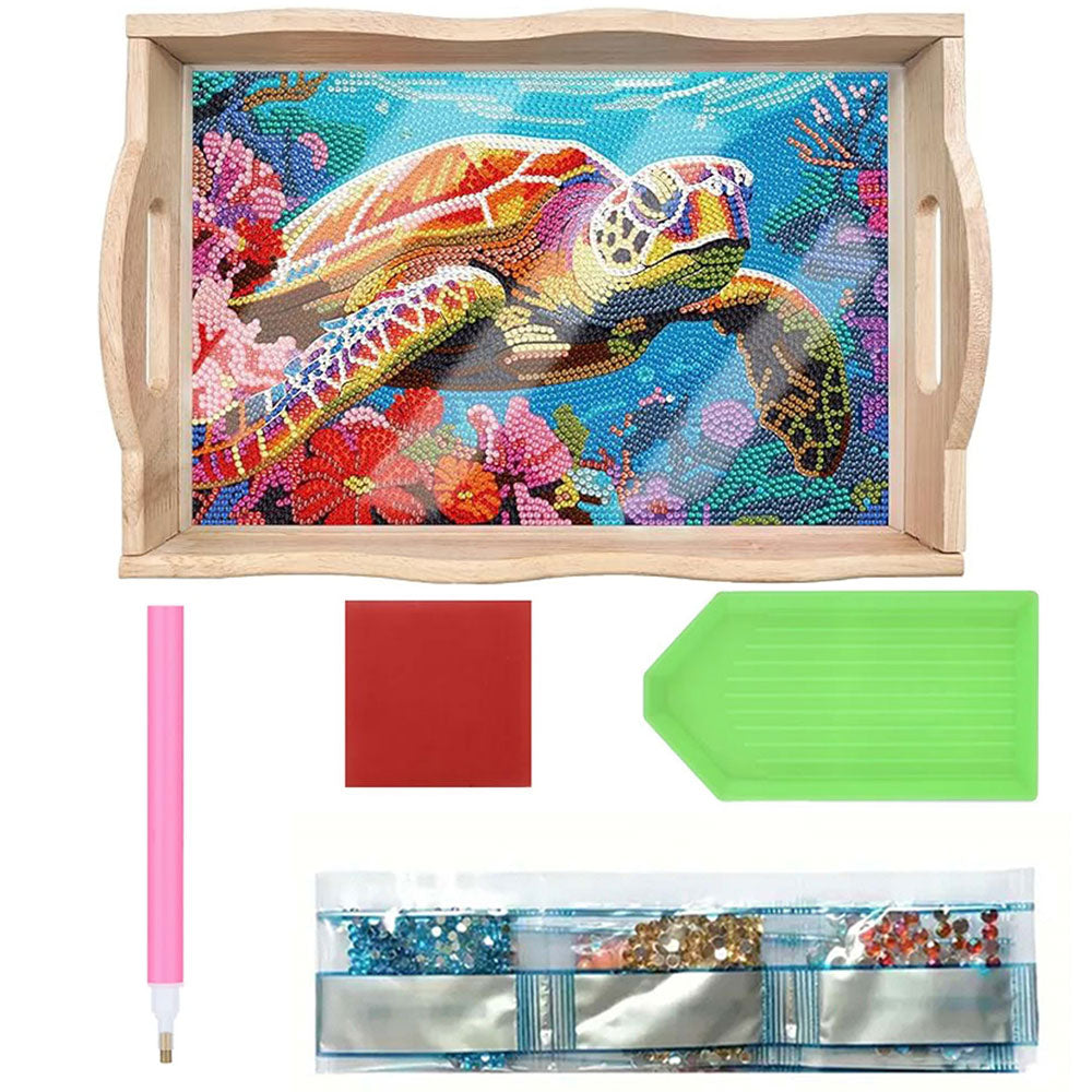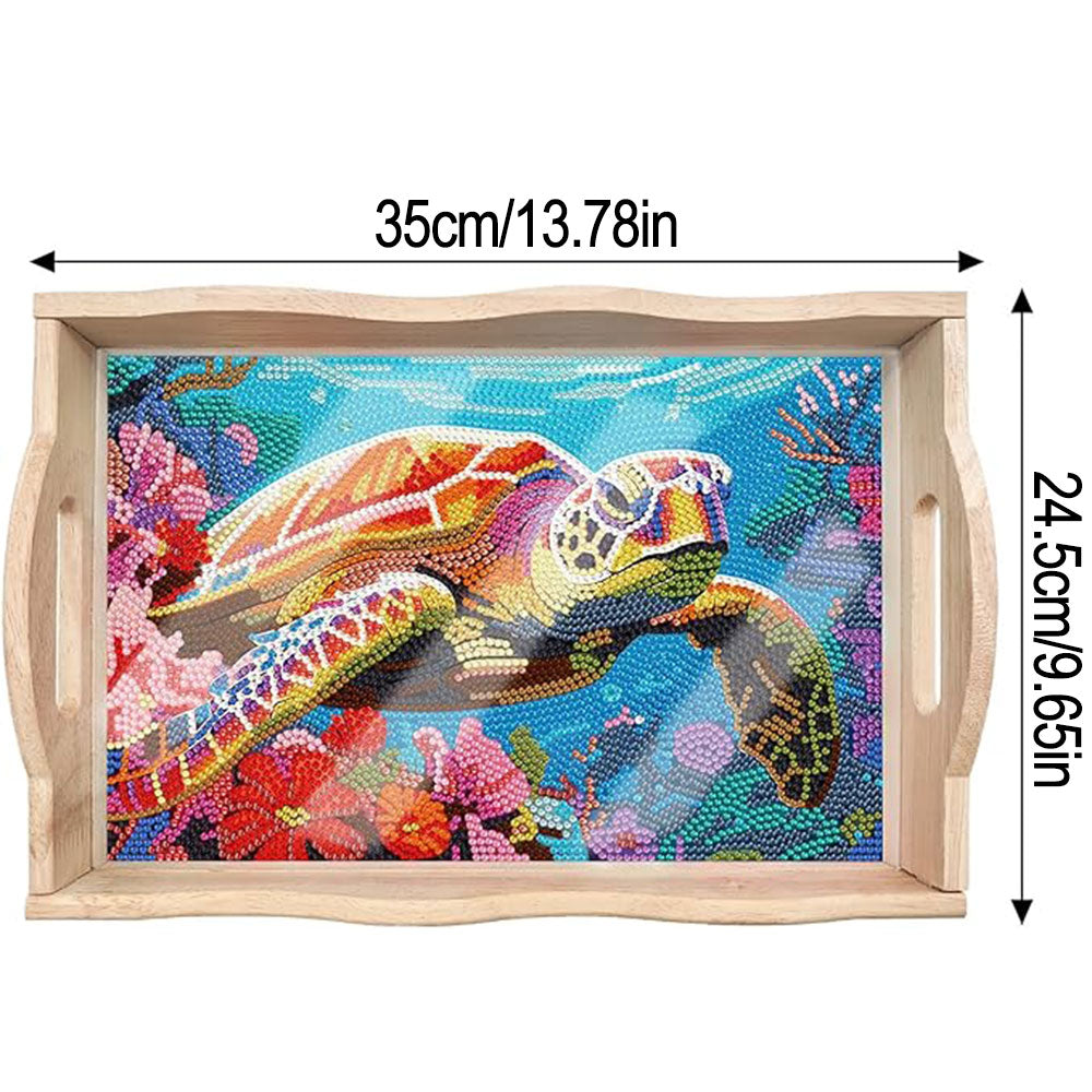 Bunte Schildkröte und Korallen Holz Serviertablett Diamond Painting