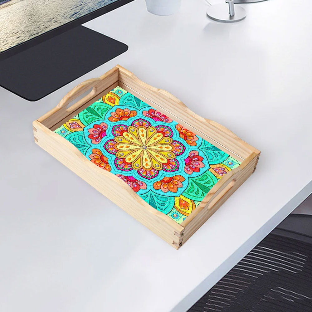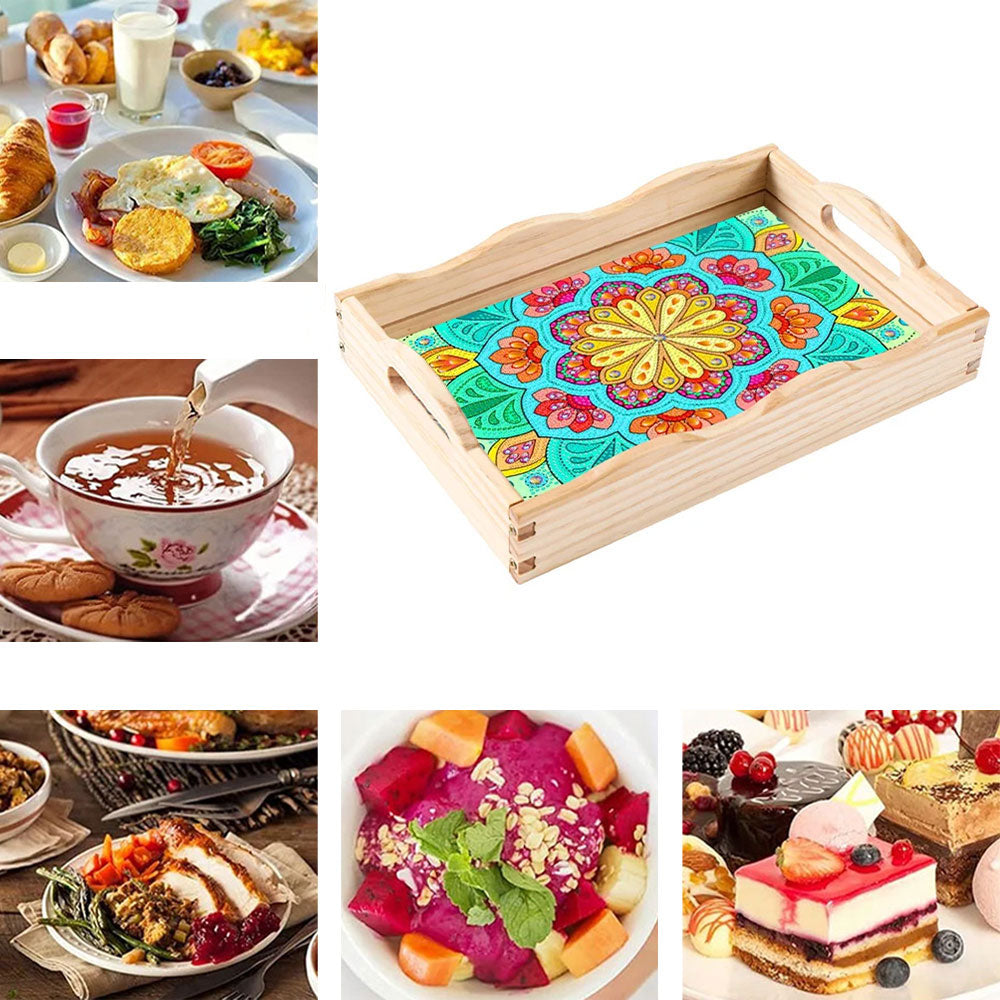 Glänzende Chrysantheme Holz Serviertablett Diamond Painting