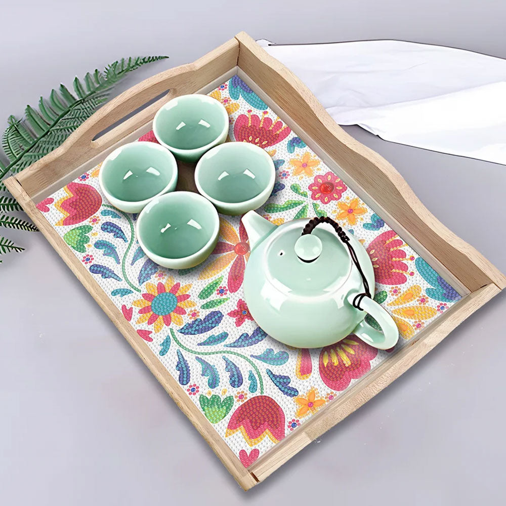 Kleine Frühlingsblumen Holz Serviertablett Diamond Painting