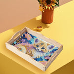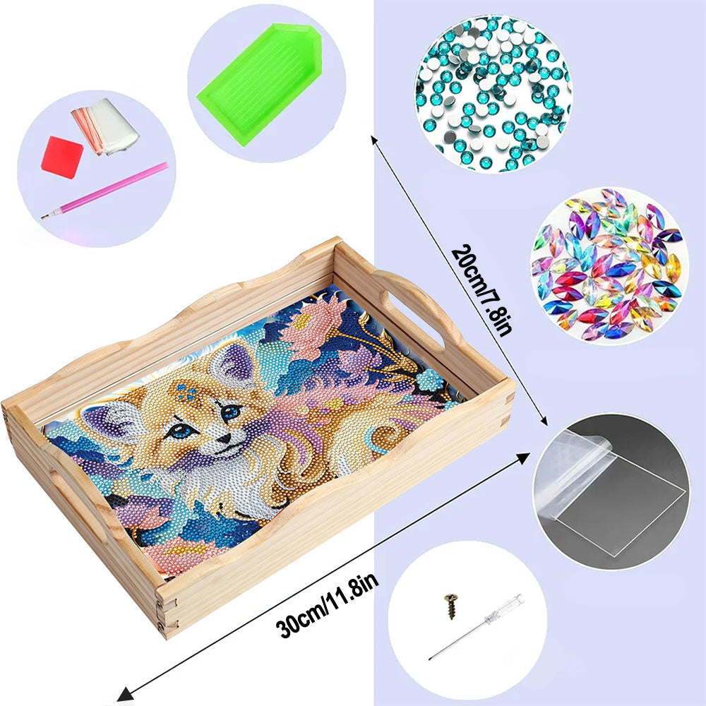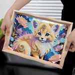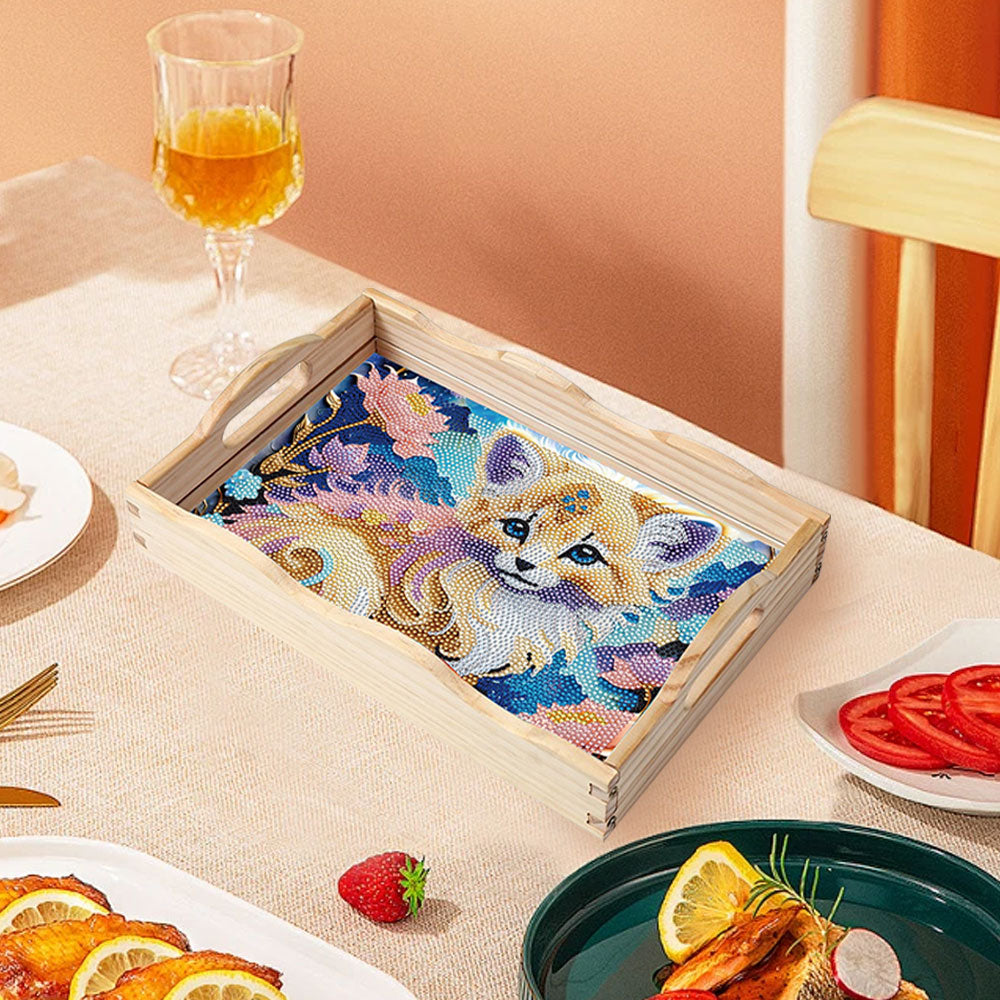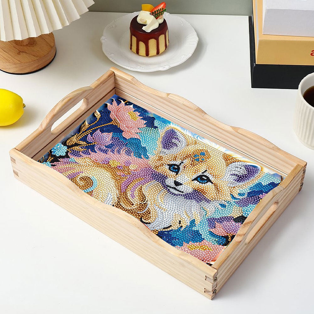 Kleine Katze und Blumen Holz Serviertablett Diamond Painting
