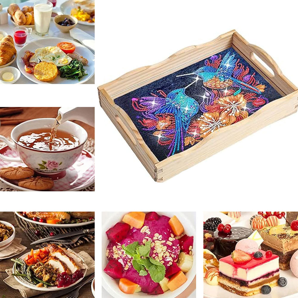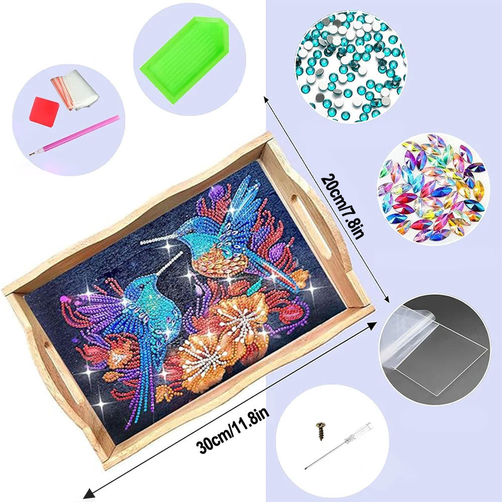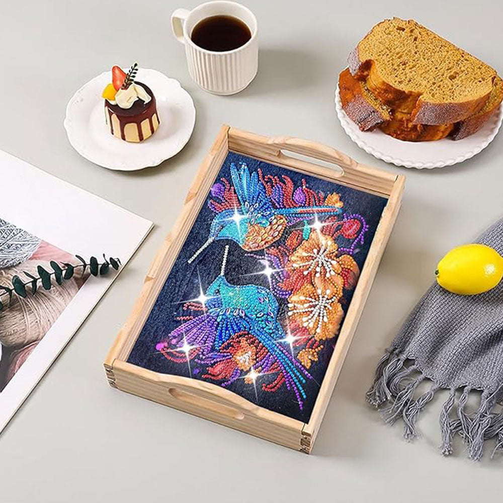 Kolibri Paar und Blumen Holz Serviertablett Diamond Painting
