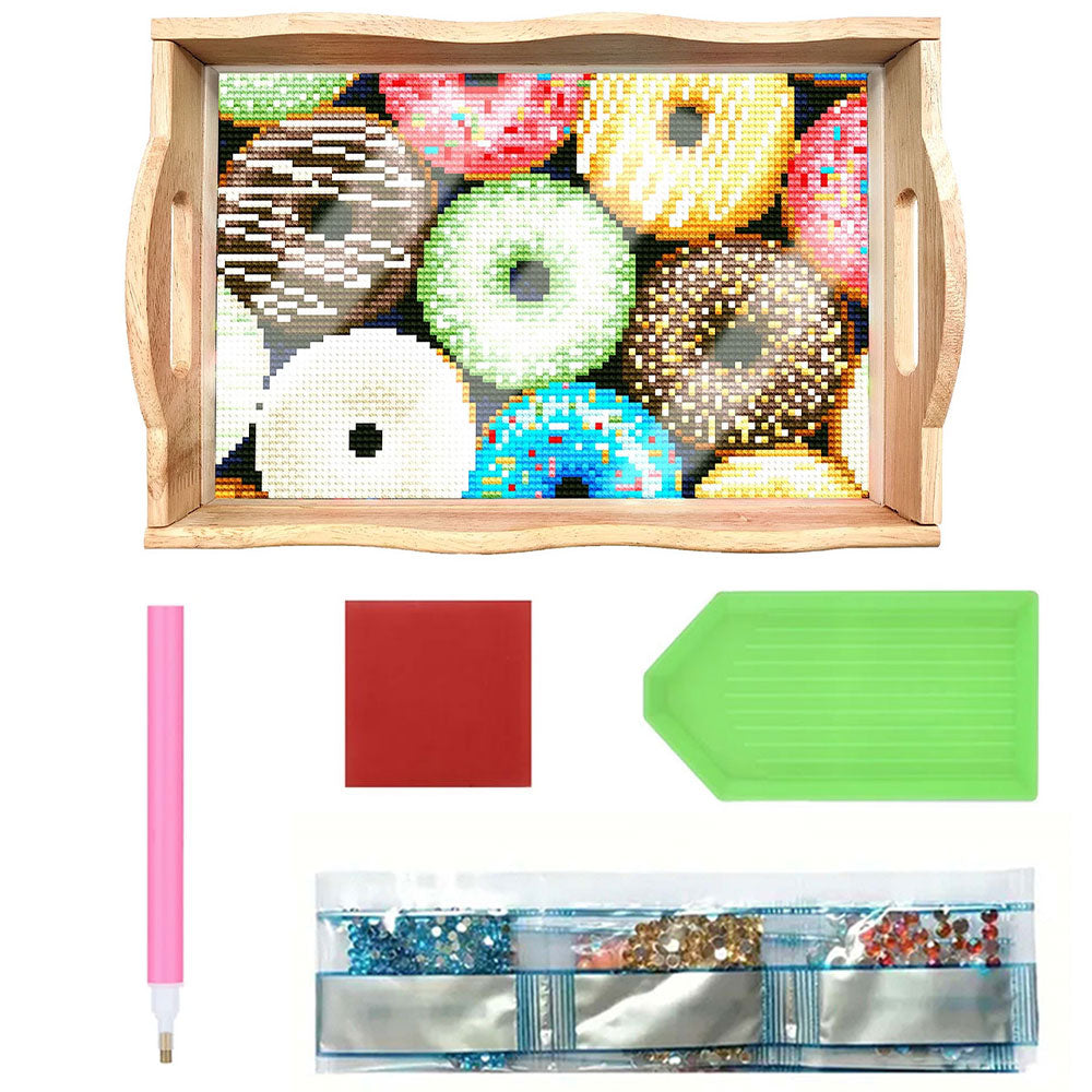 Leckere Donuts Holz Serviertablett Diamond Painting