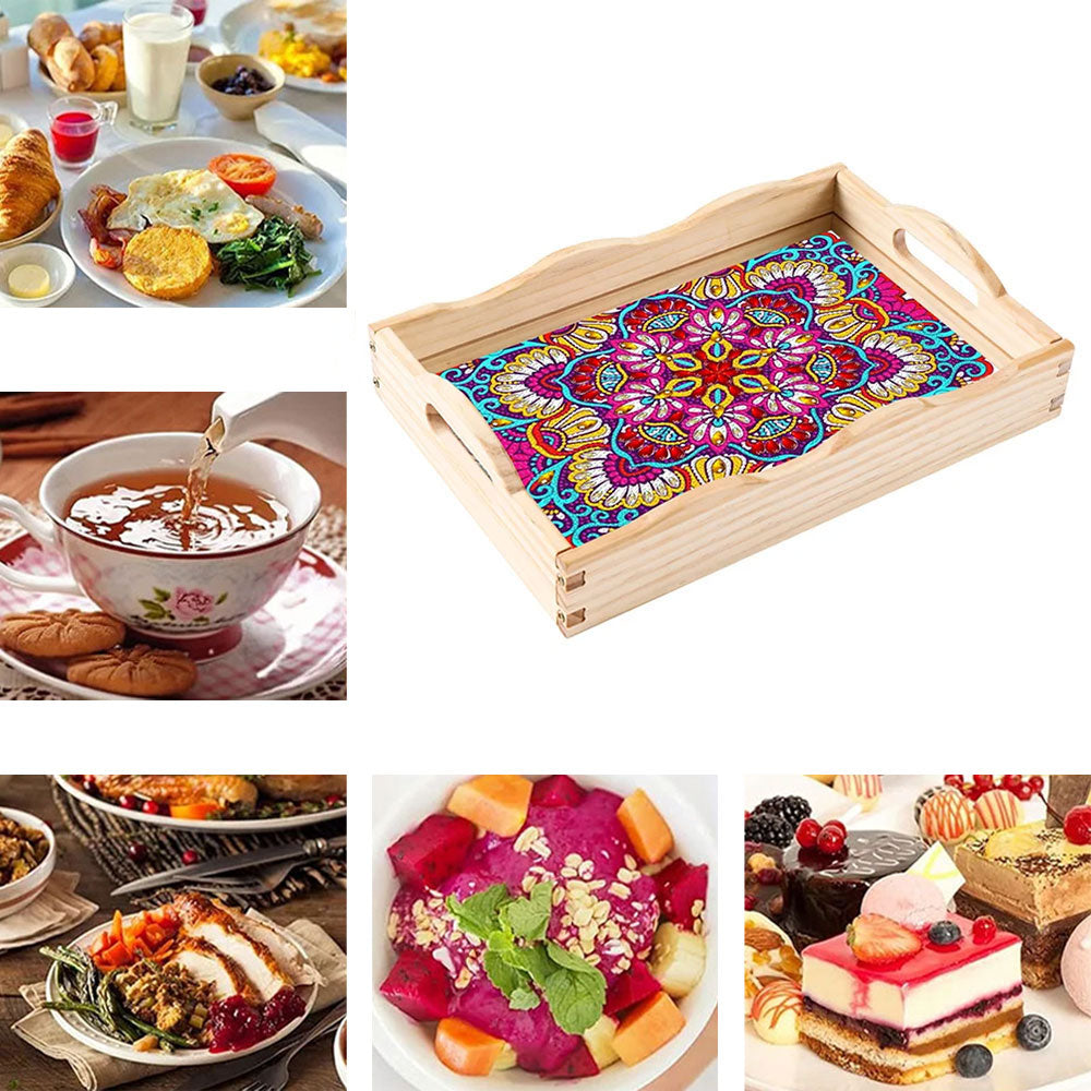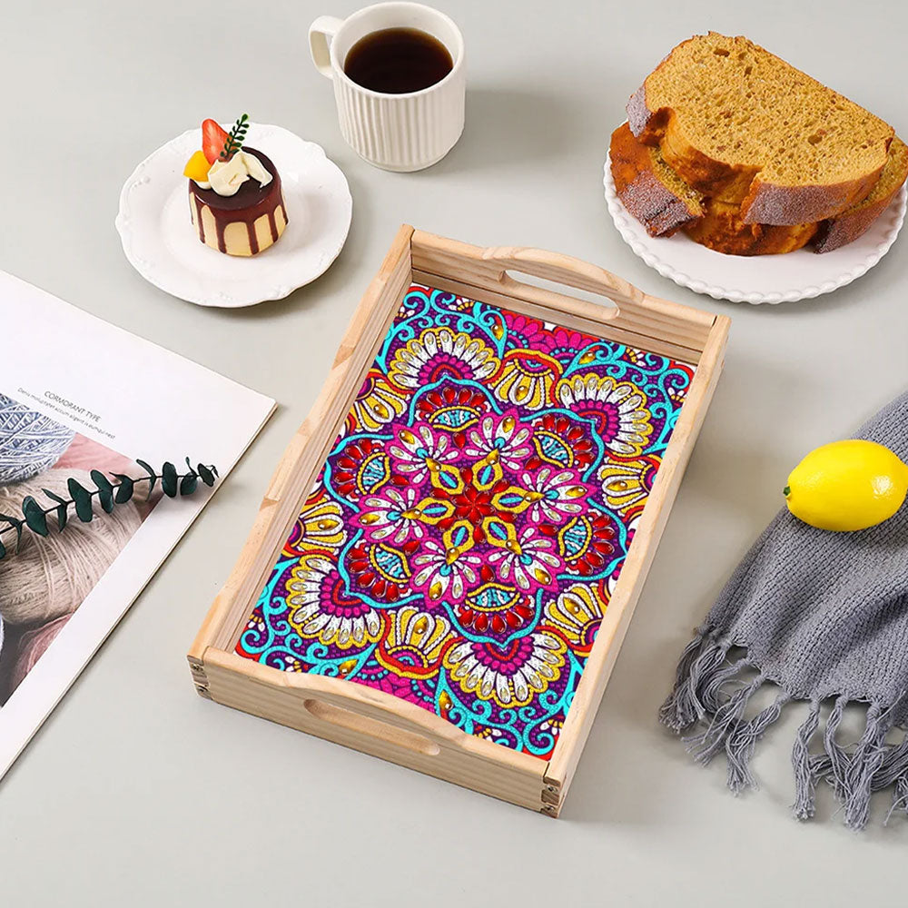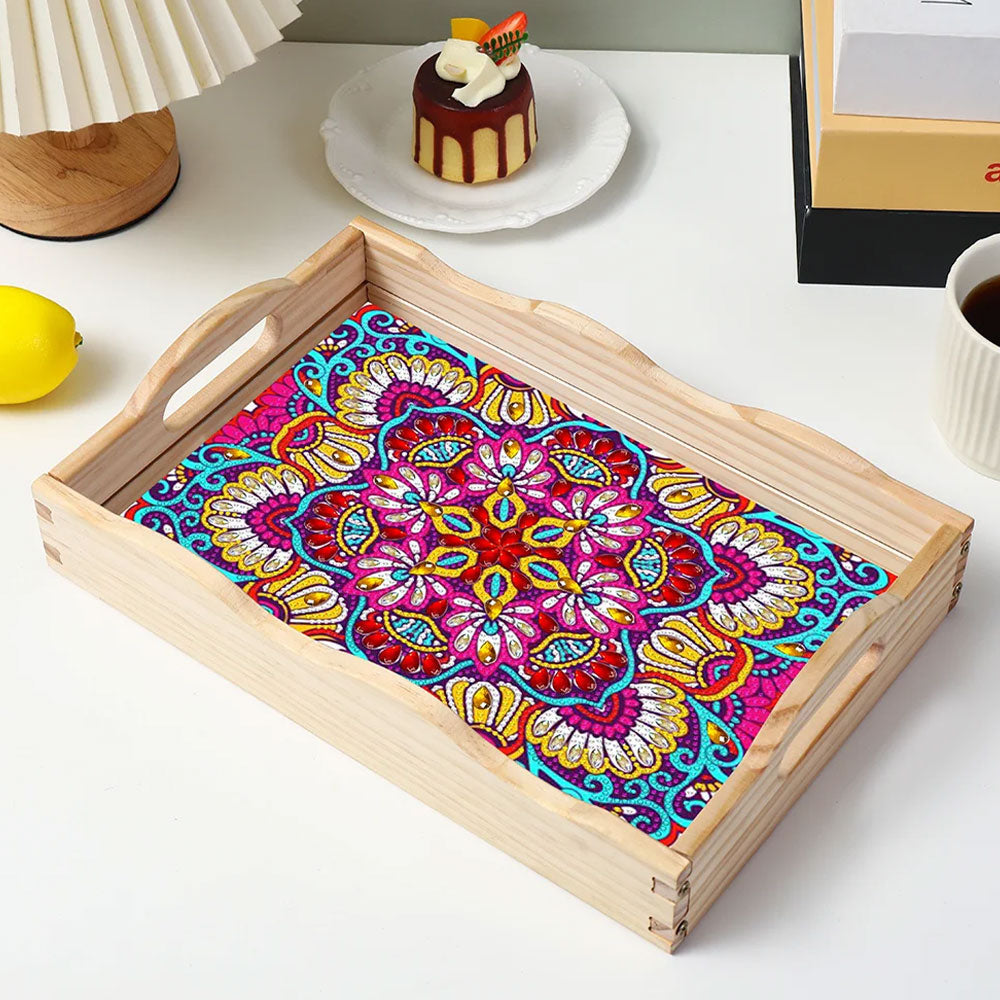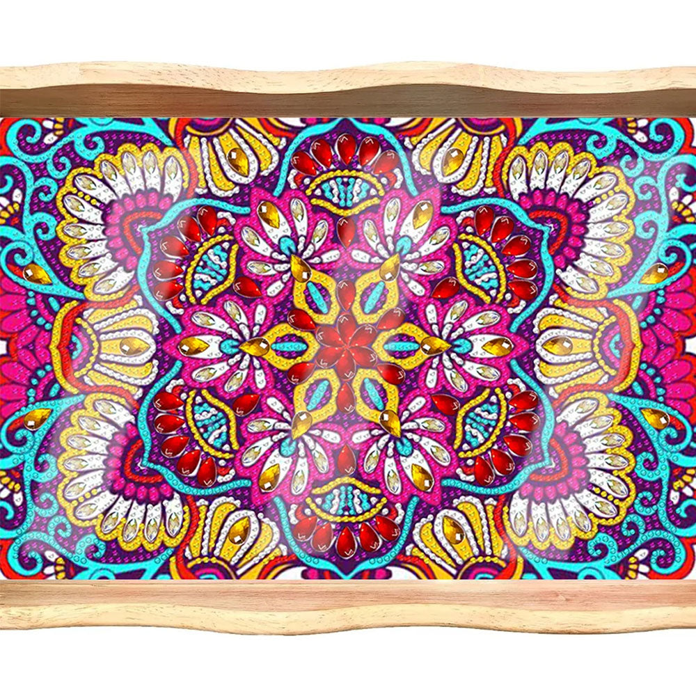 Lila Rotes Mandala Holz Serviertablett Diamond Painting