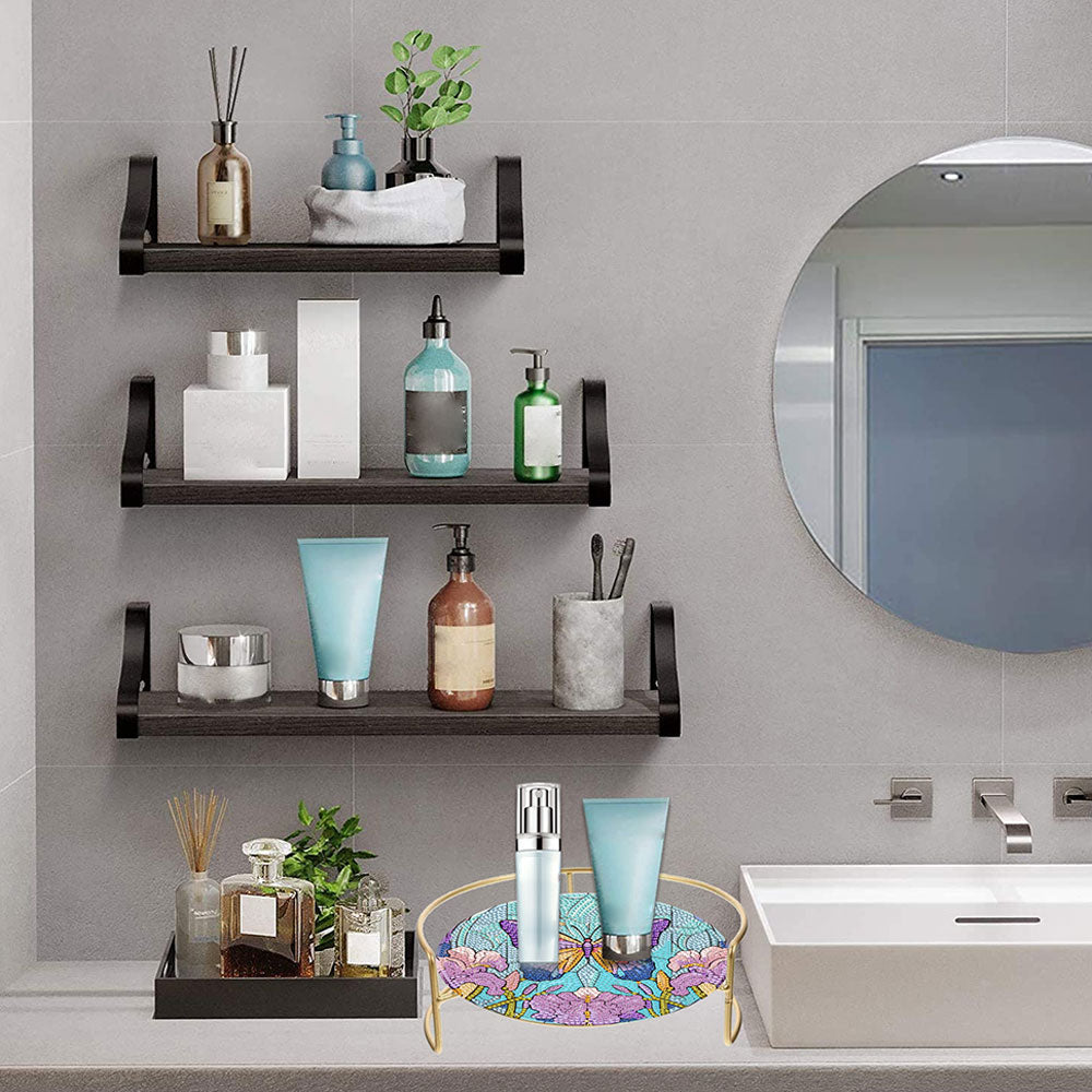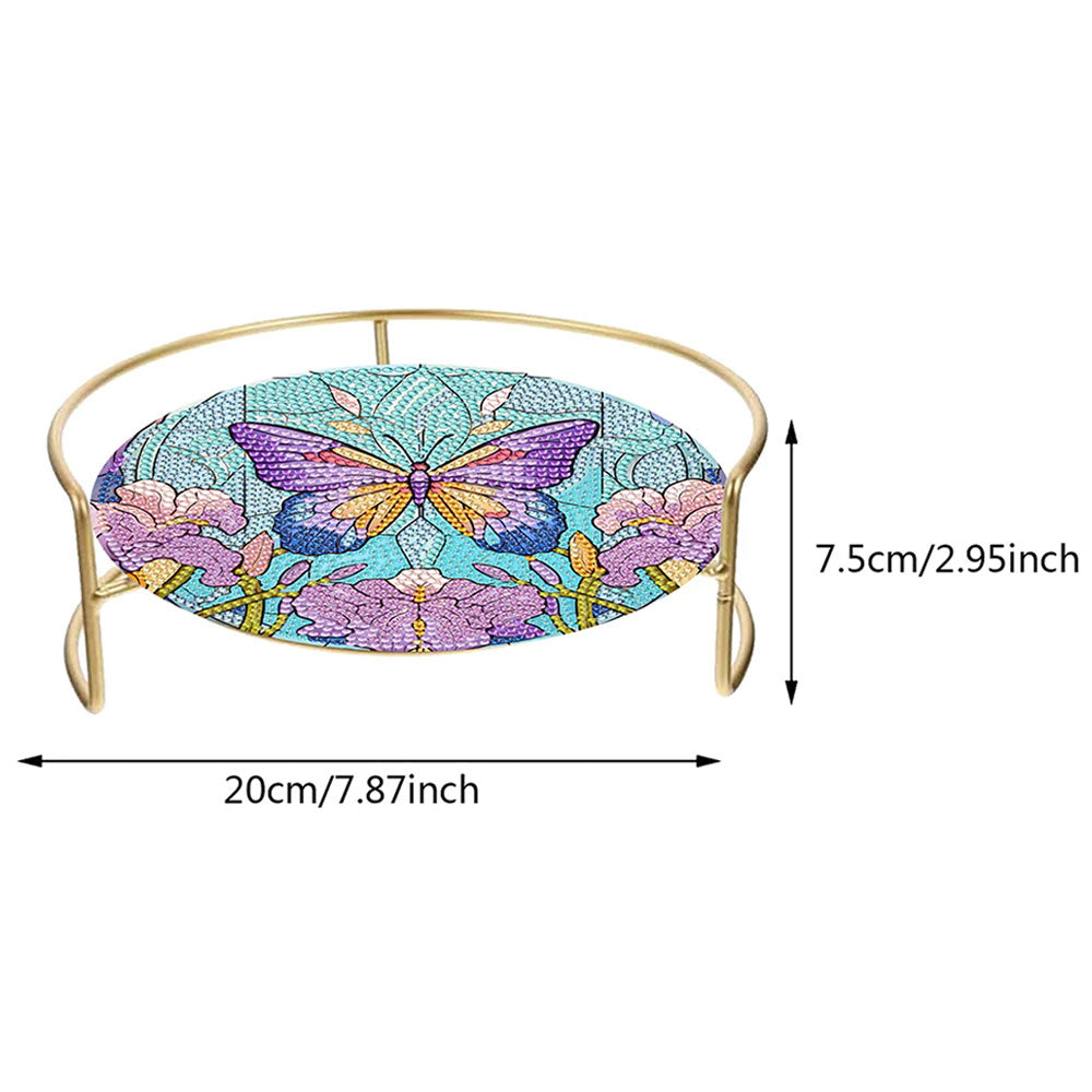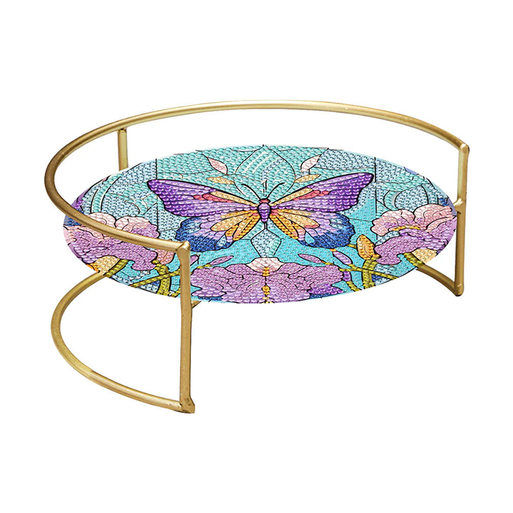 Lila Schmetterling und Blumen Acryl + Legierung Badezimmer Tablett Diamond Painting
