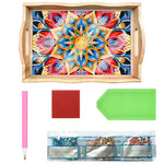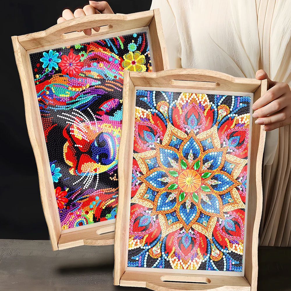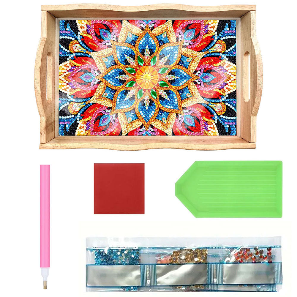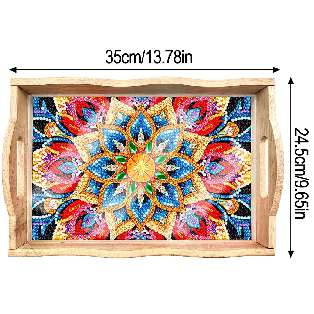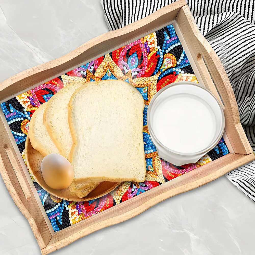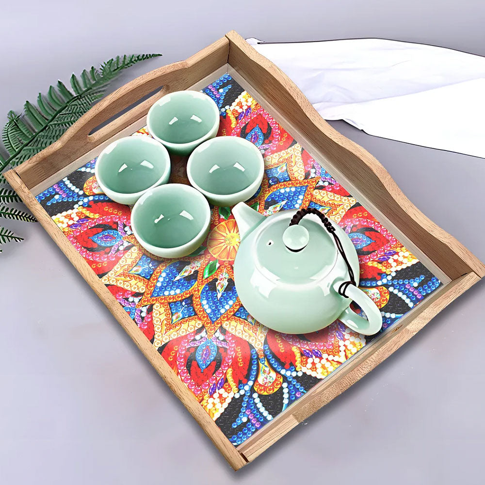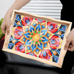 Rote und goldene Blumen Mandala Holz Serviertablett Diamond Painting