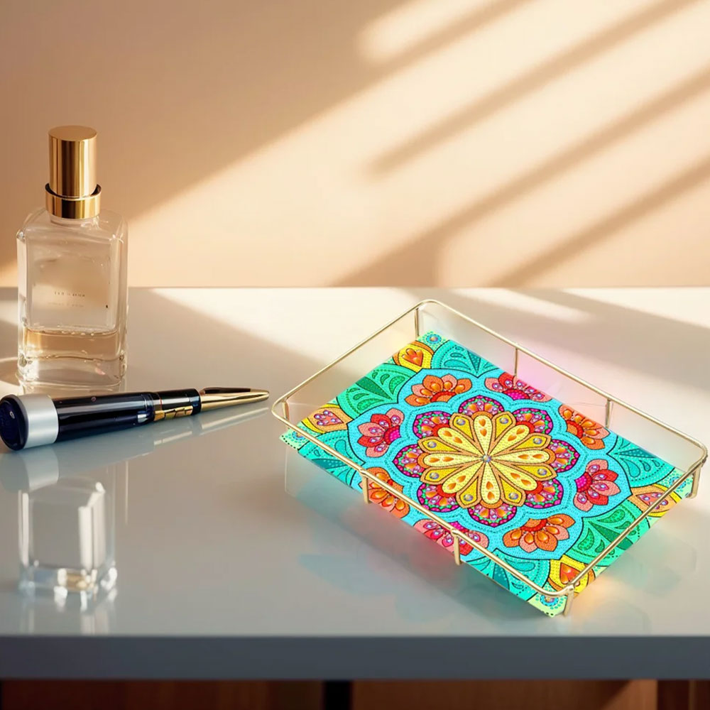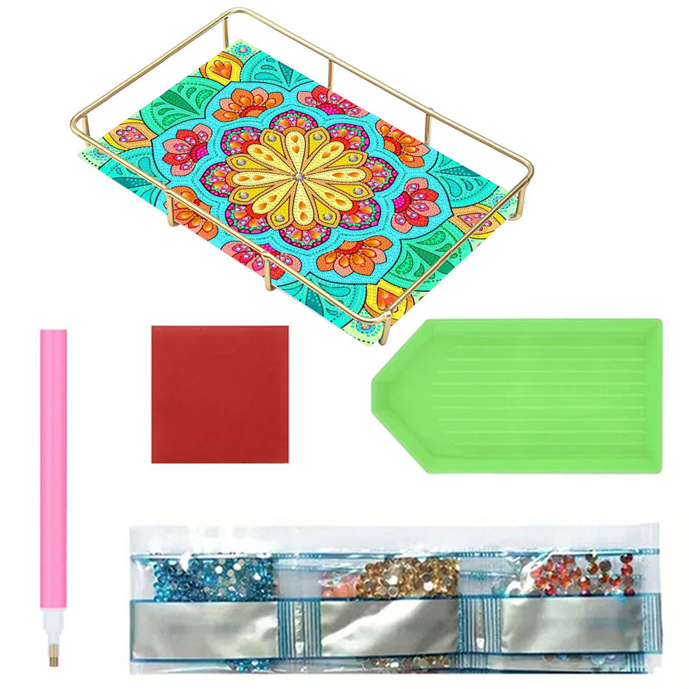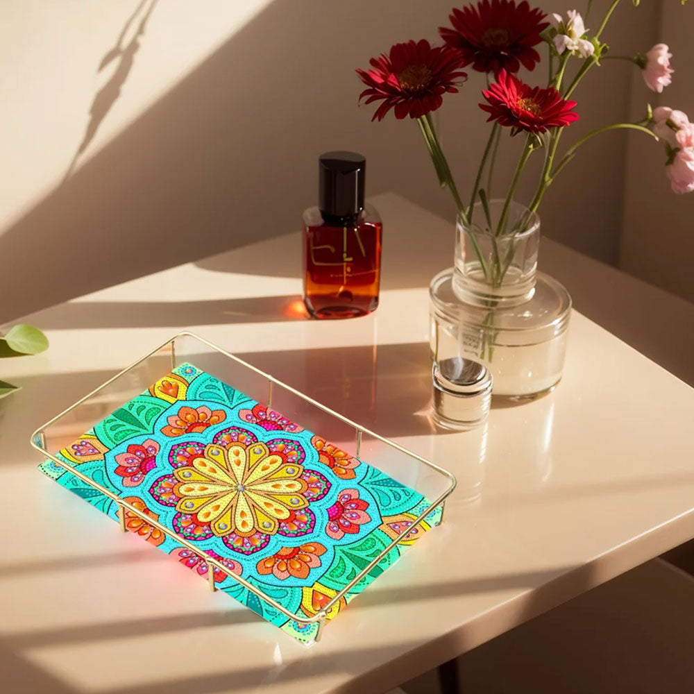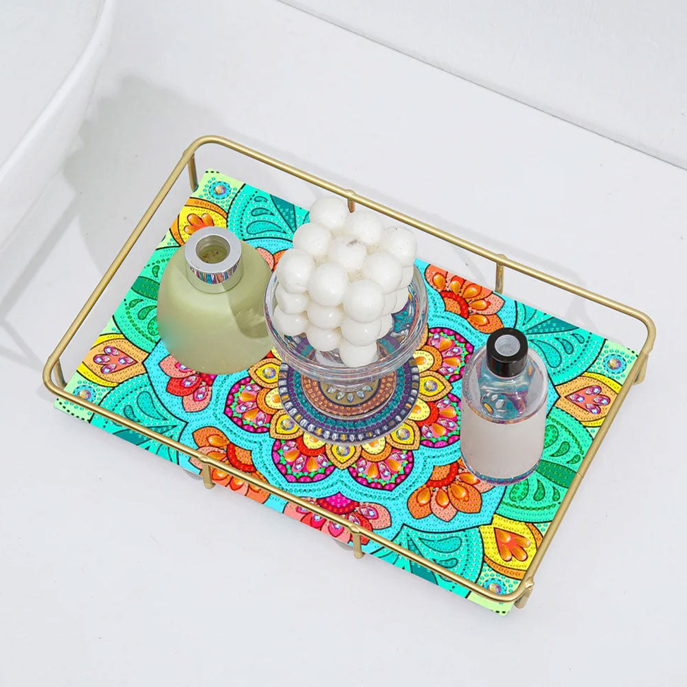 Sonderform Grüne Gelbe Blumen Acryl + Legierung Badezimmer Tablett Diamond Painting