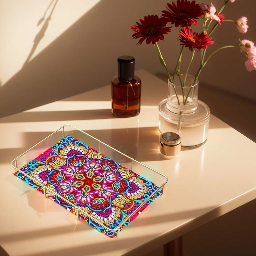 Sonderform Lila Rotes Mandala Acryl + Legierung Badezimmer Tablett Diamond Painting