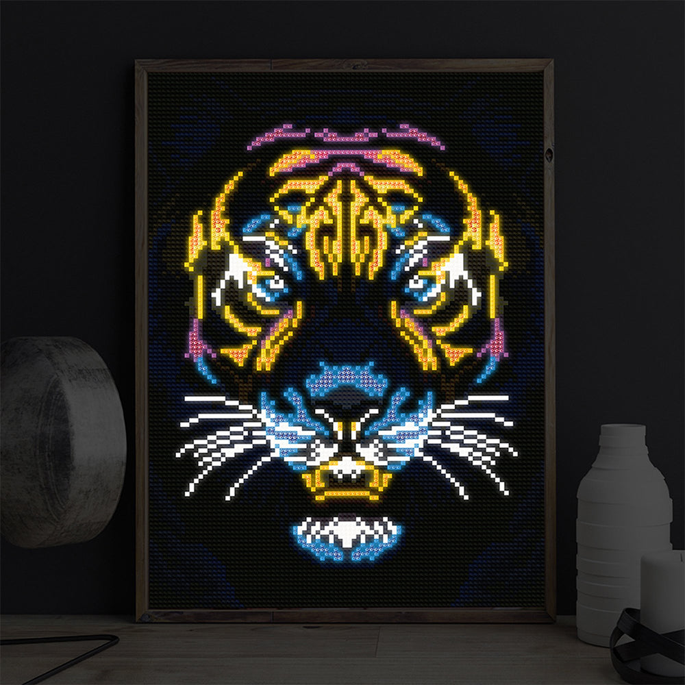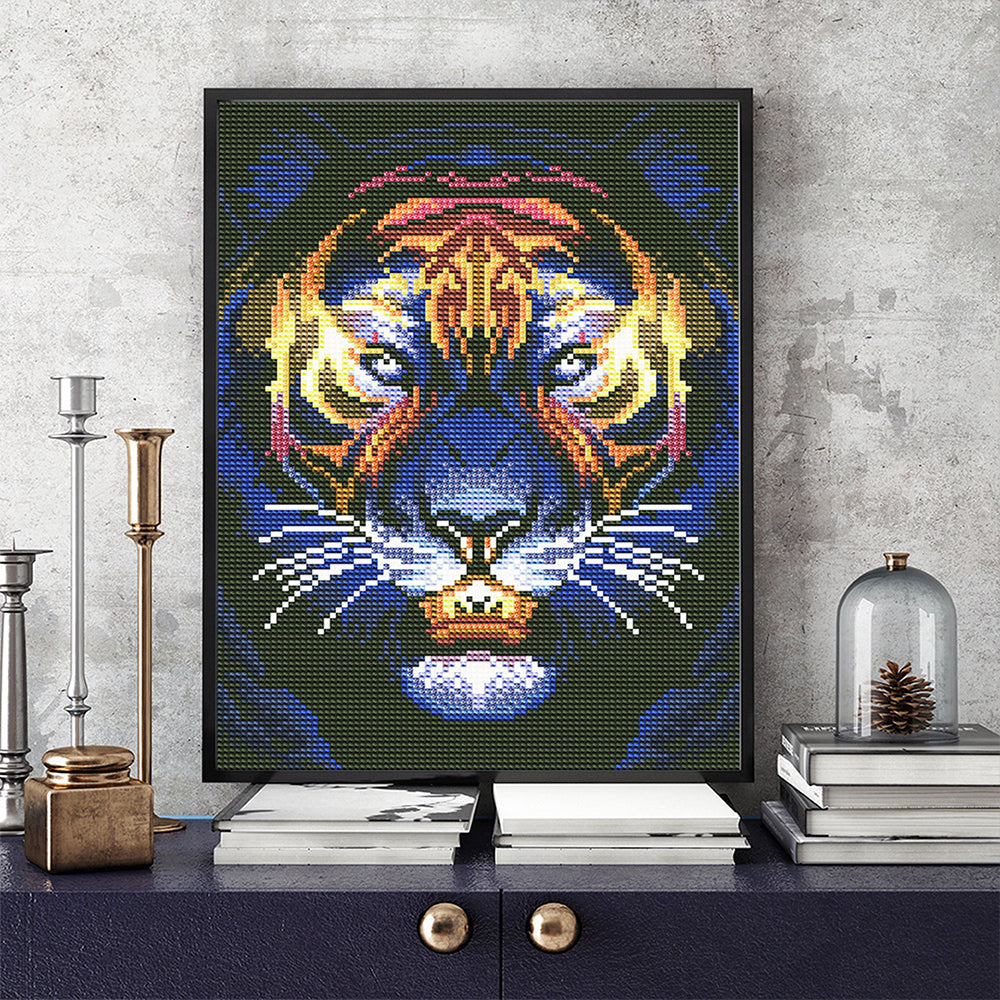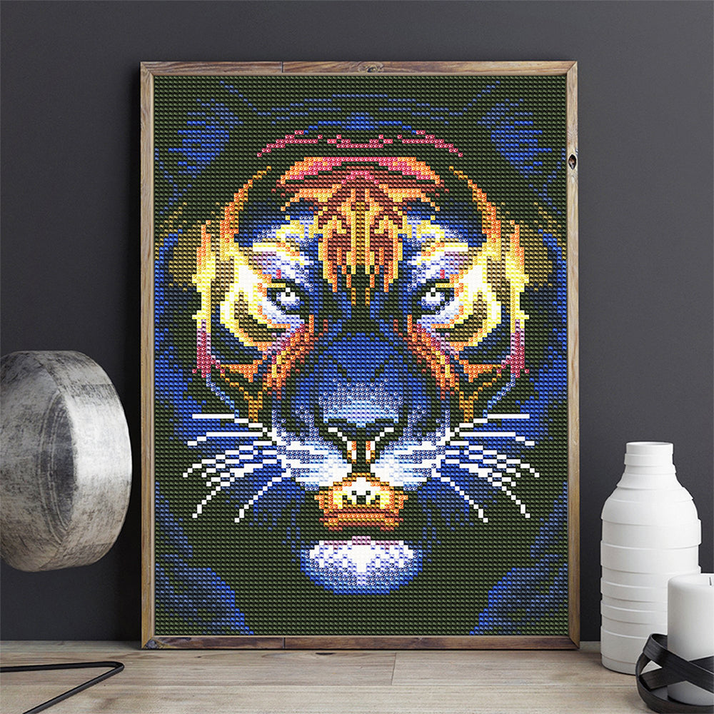 Tiger Kopf Farbig Leuchtend Kristall Strass Diamond Painting