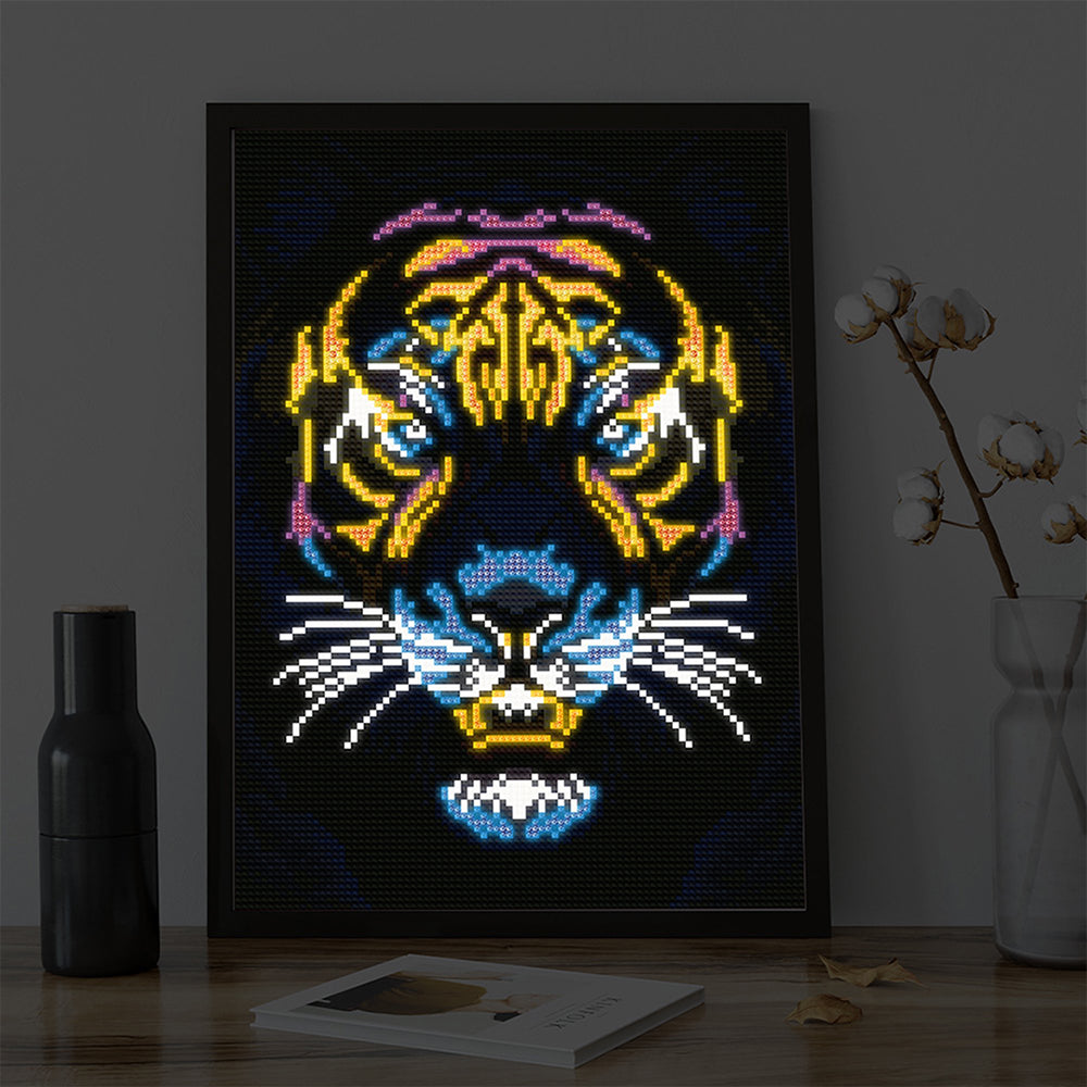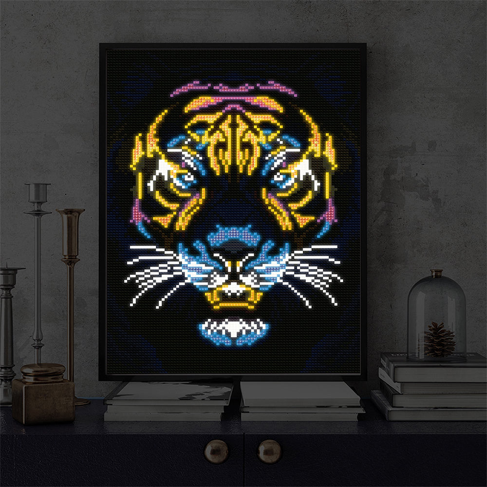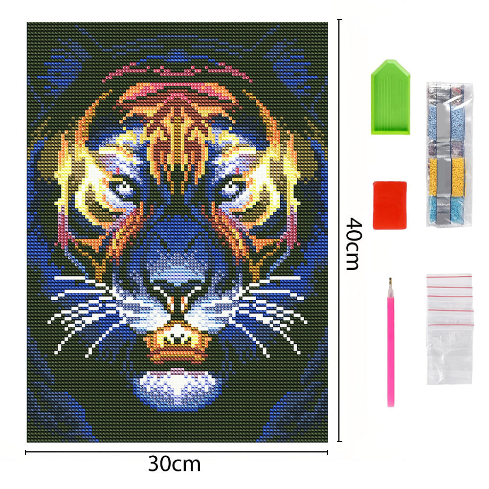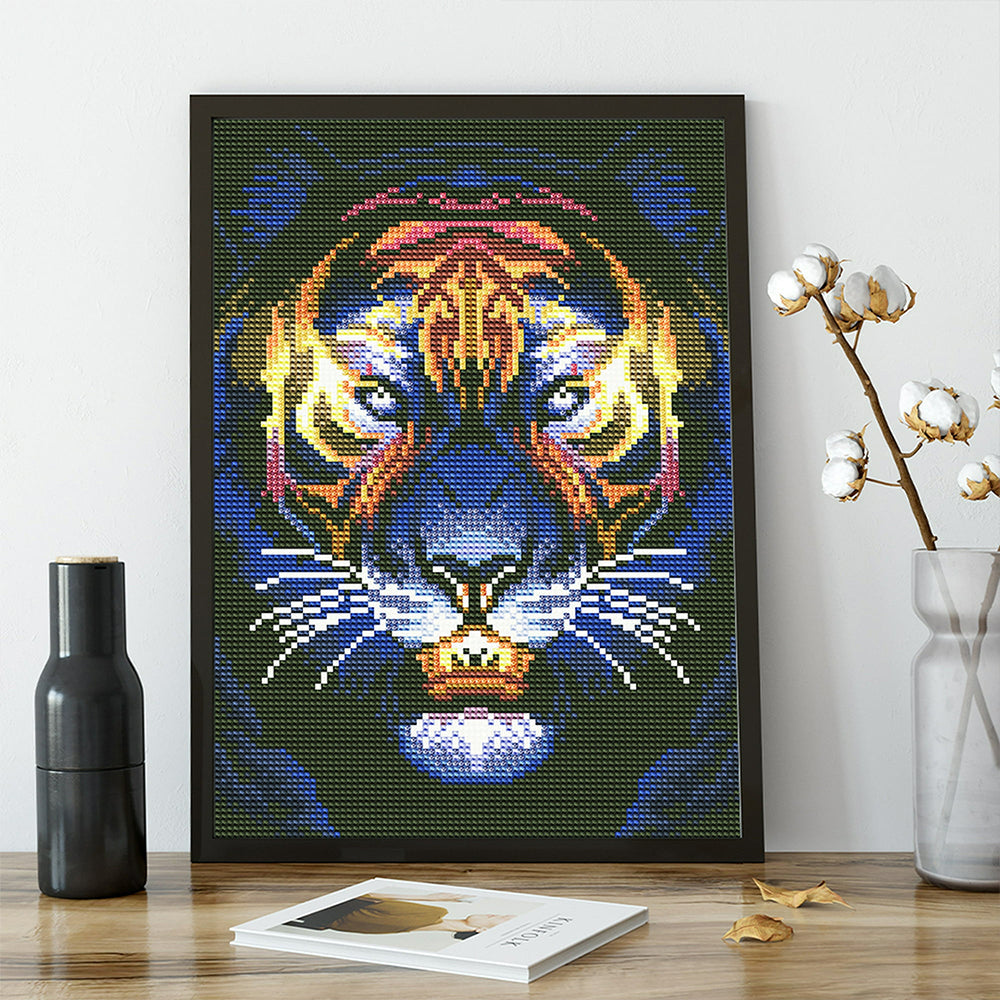 Tiger Kopf Farbig Leuchtend Kristall Strass Diamond Painting