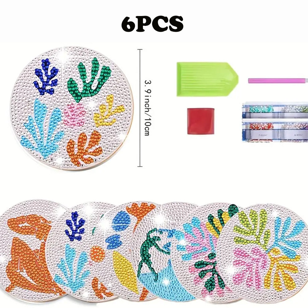 6Stück Abstrakte Blätter Diamond Painting Untersetzer