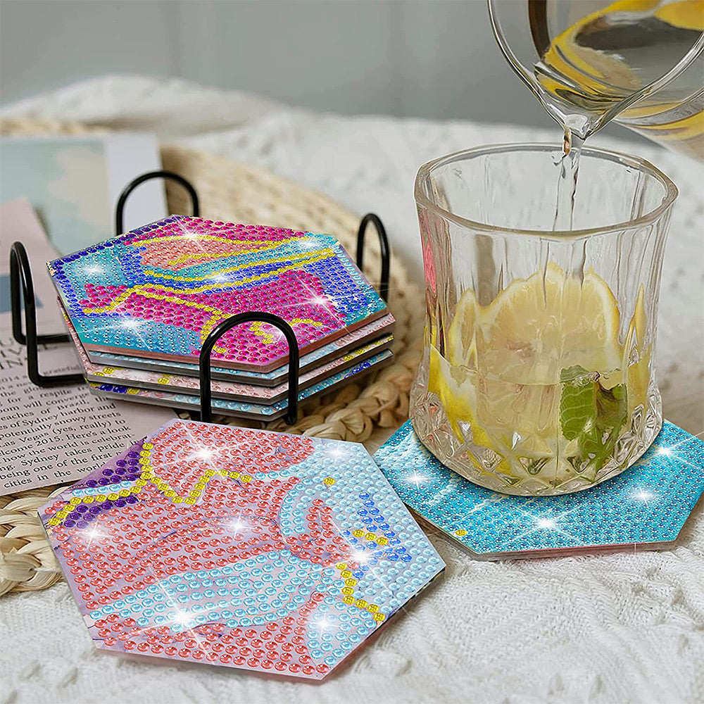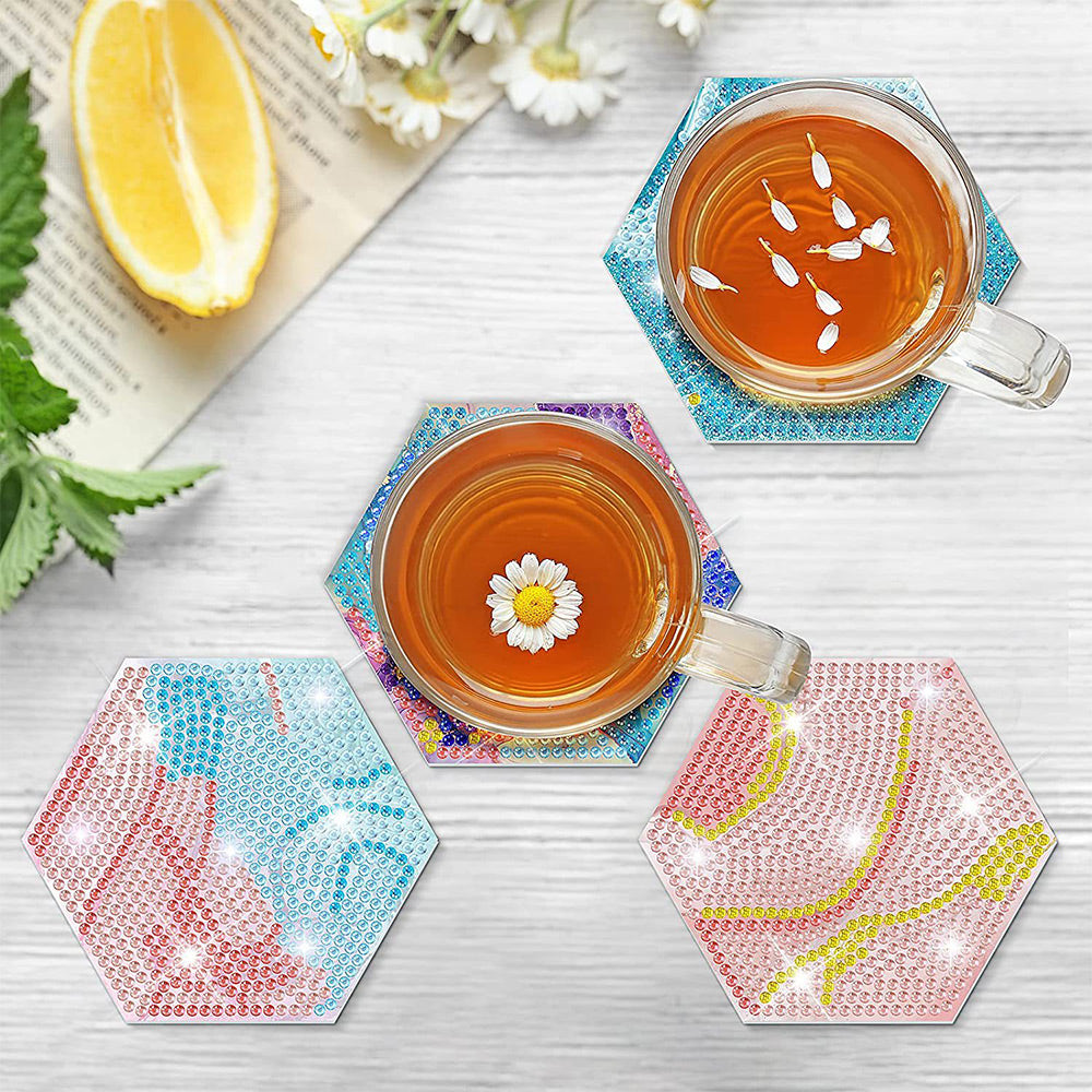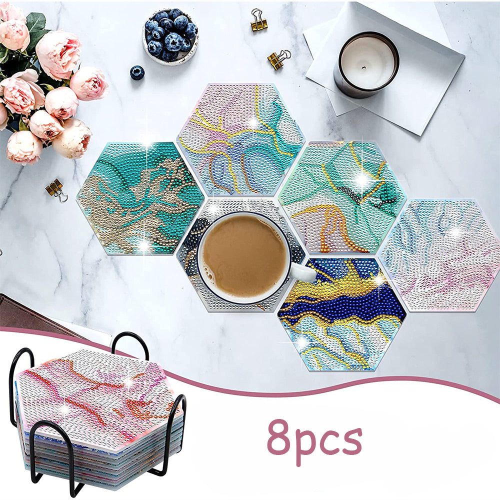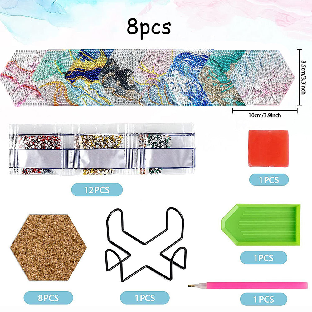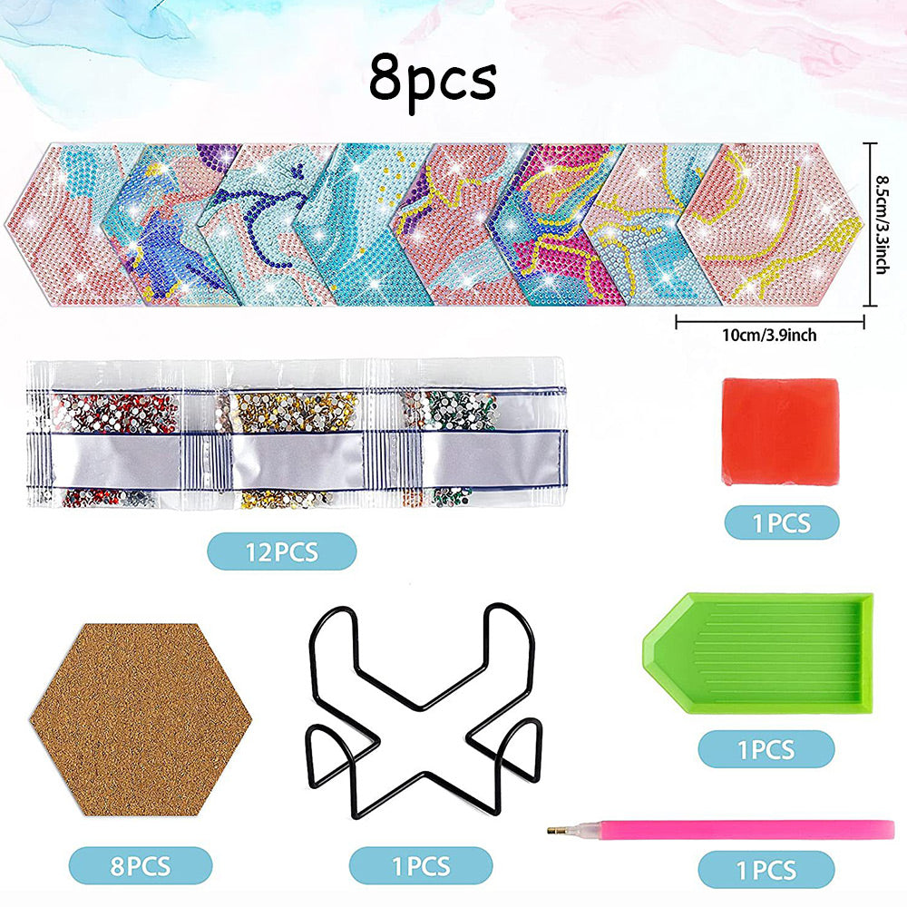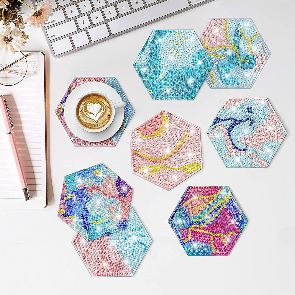8Stück Abstrakte Linien Sechseck Diamond Painting Untersetzer
