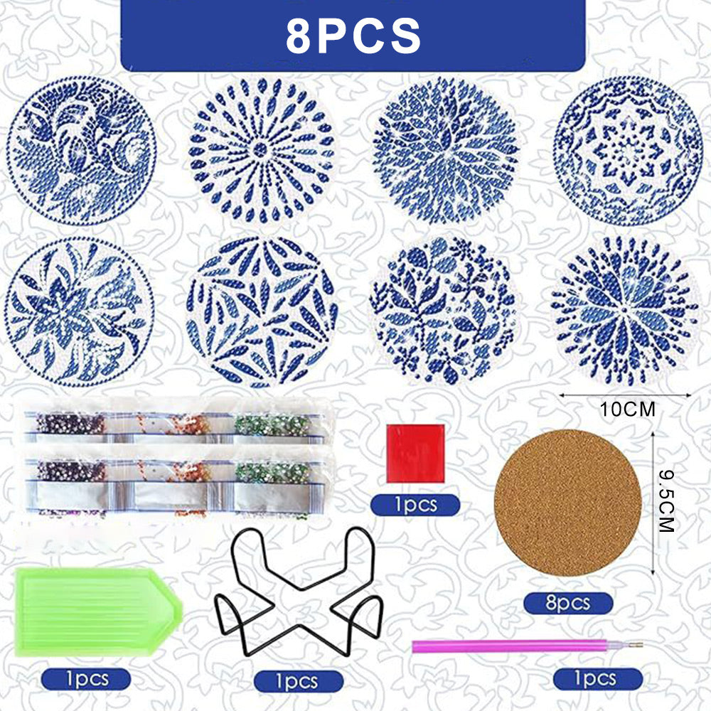 Blaue Blume Diamond Painting Untersetzer 8Pcs