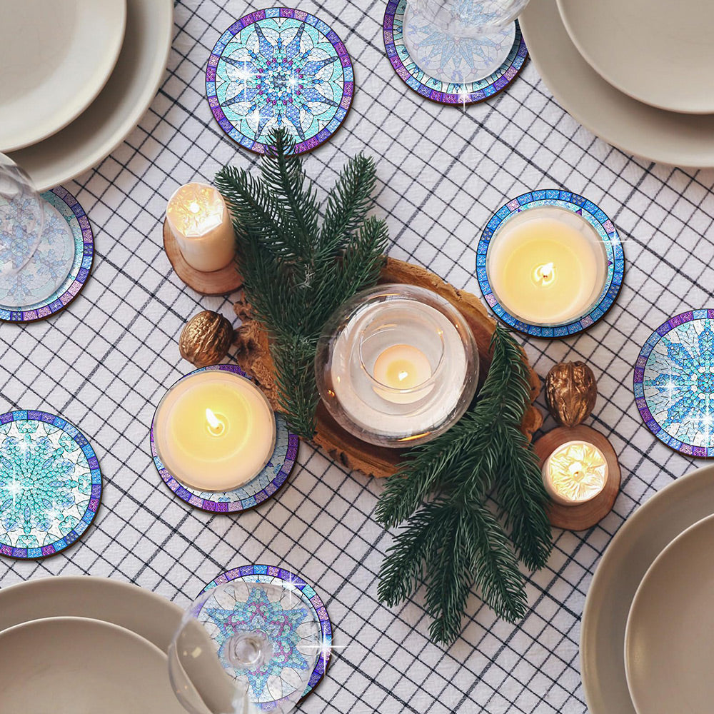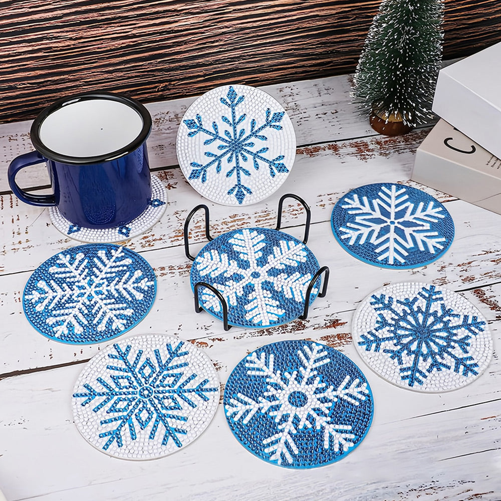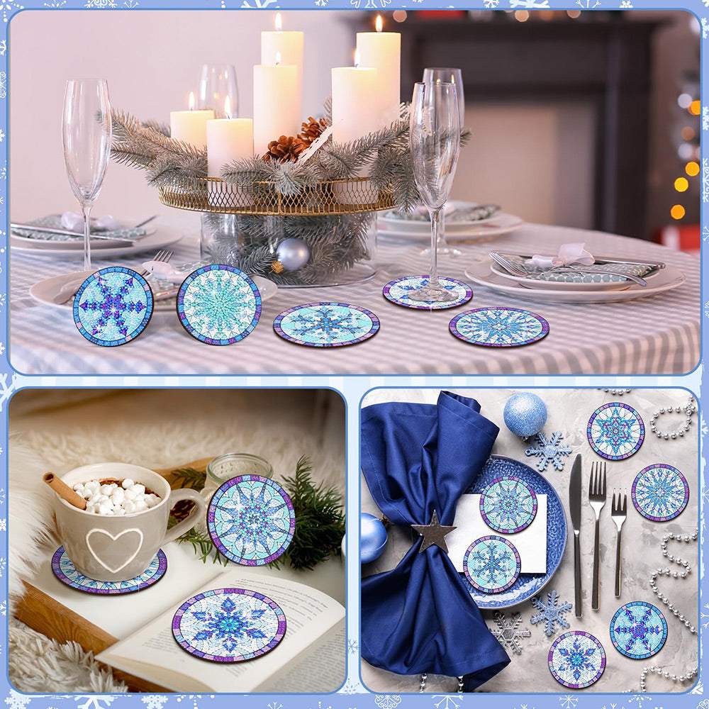 Blaue Schneeflocke Diamond Painting Untersetzer 8Pcs