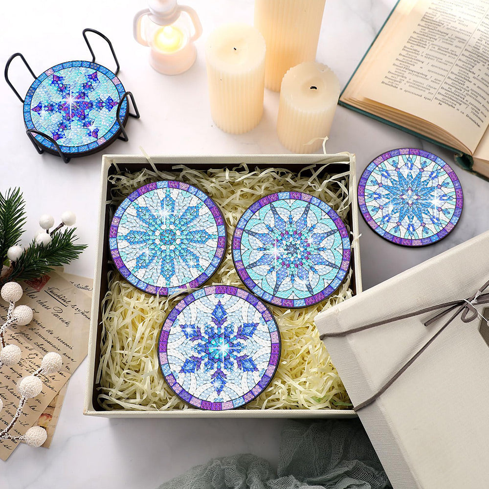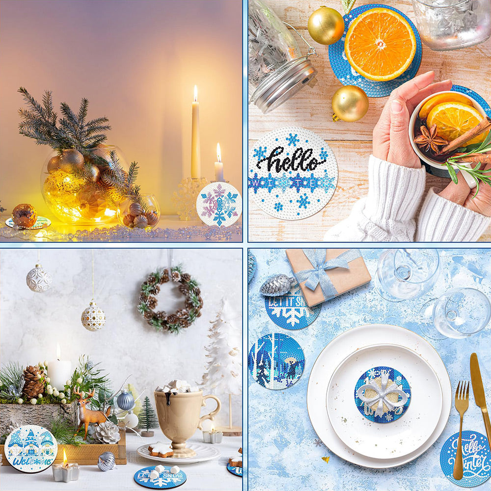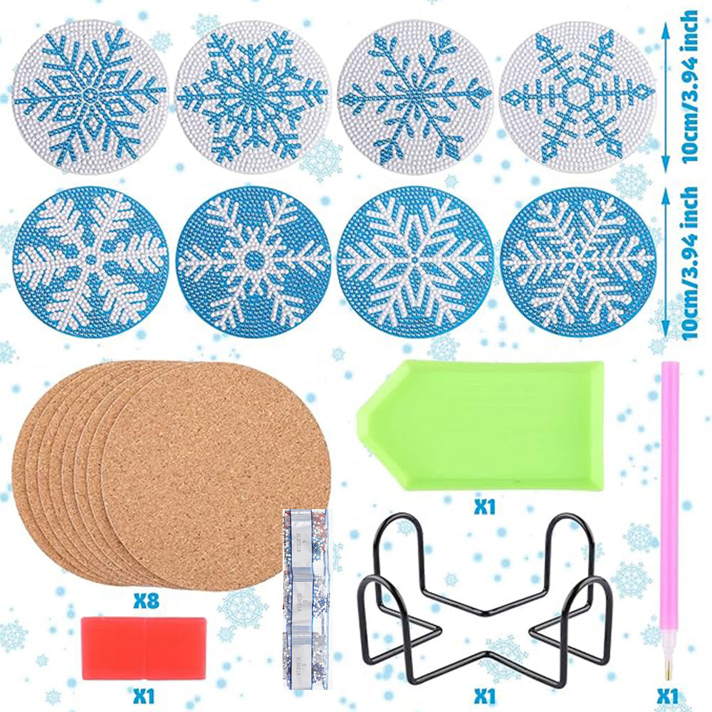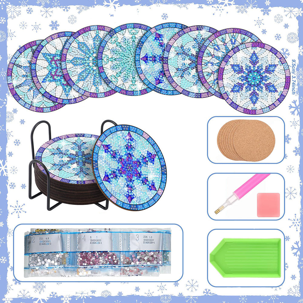 Blaue Schneeflocke Diamond Painting Untersetzer 8Pcs