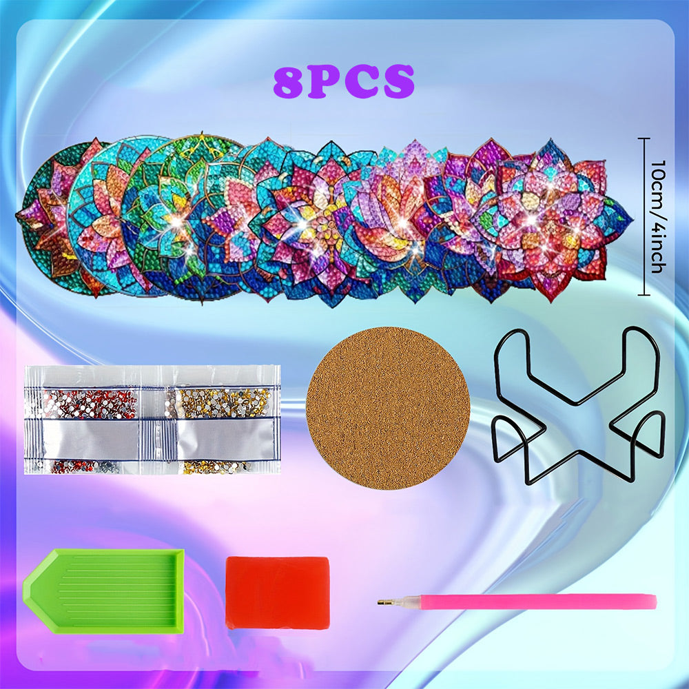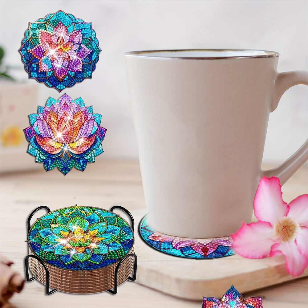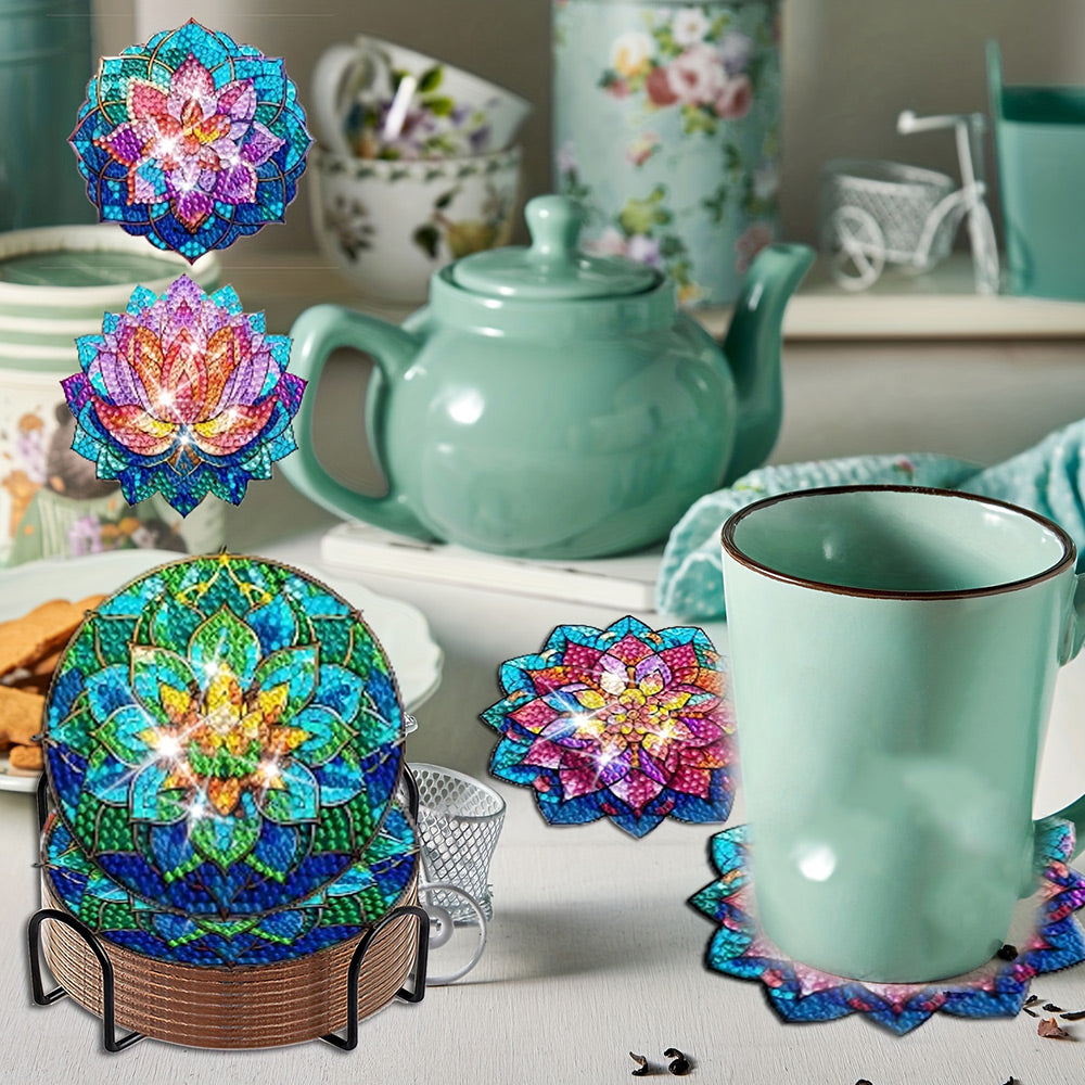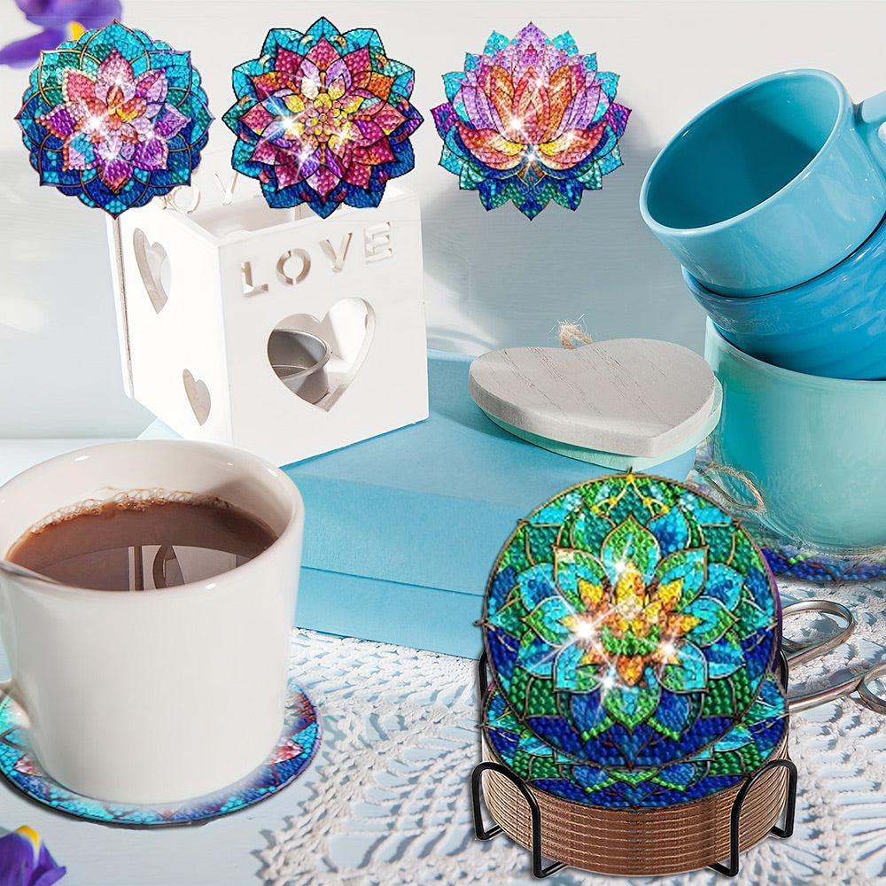 8Stück Bunter Lotus Diamond Painting Untersetzer