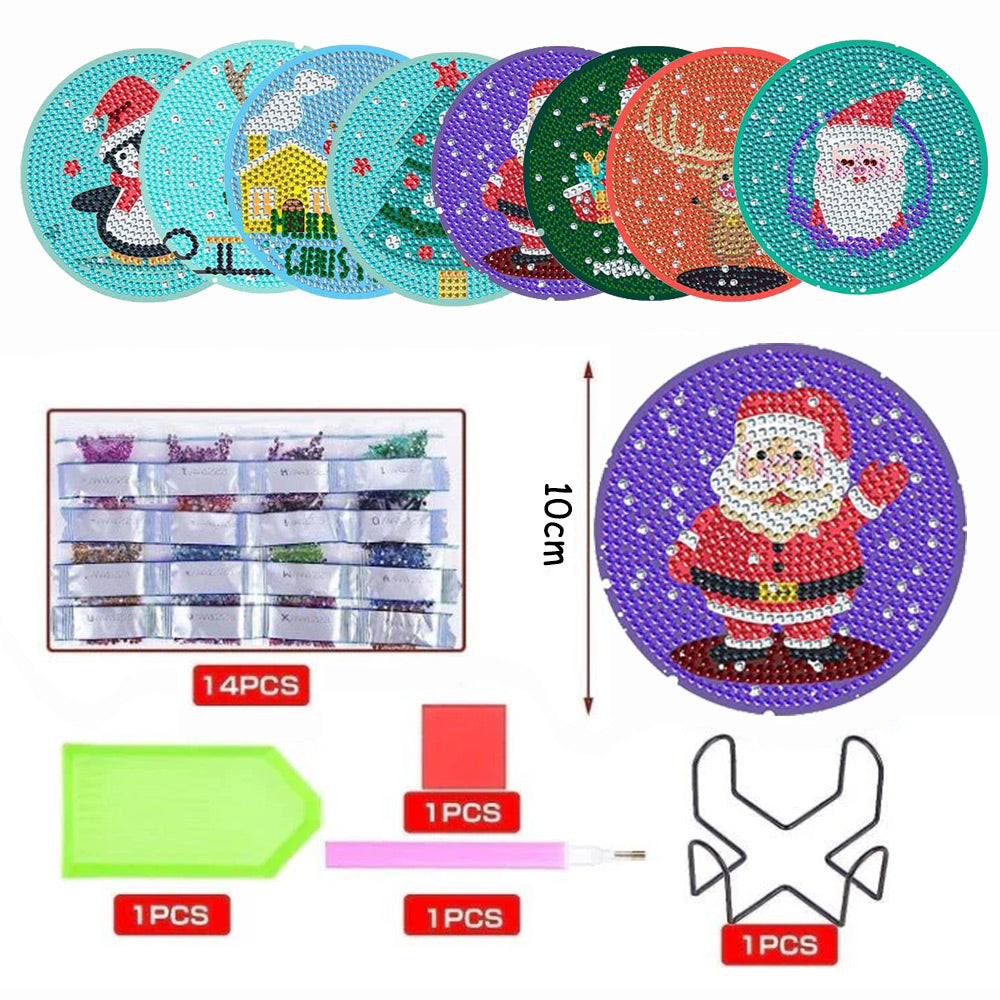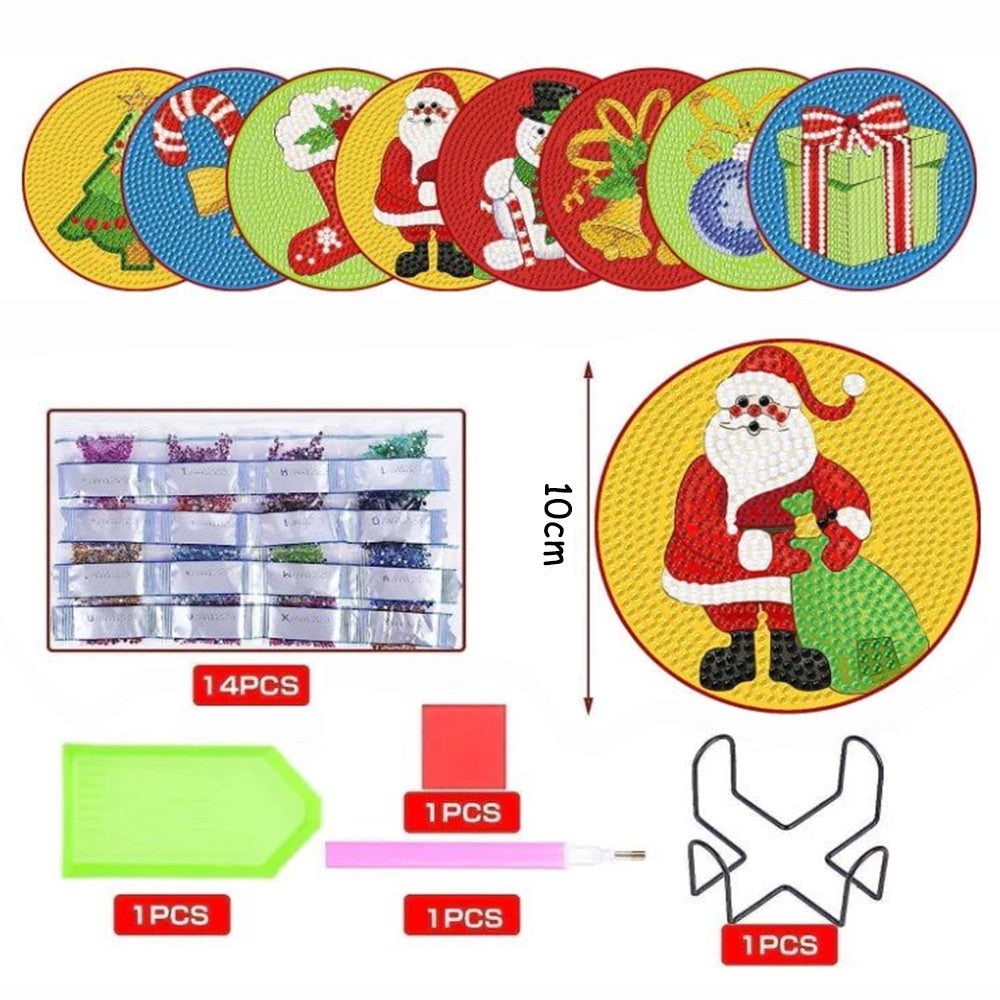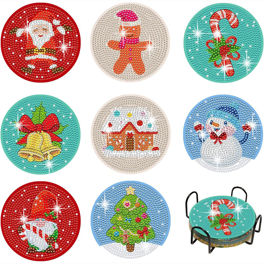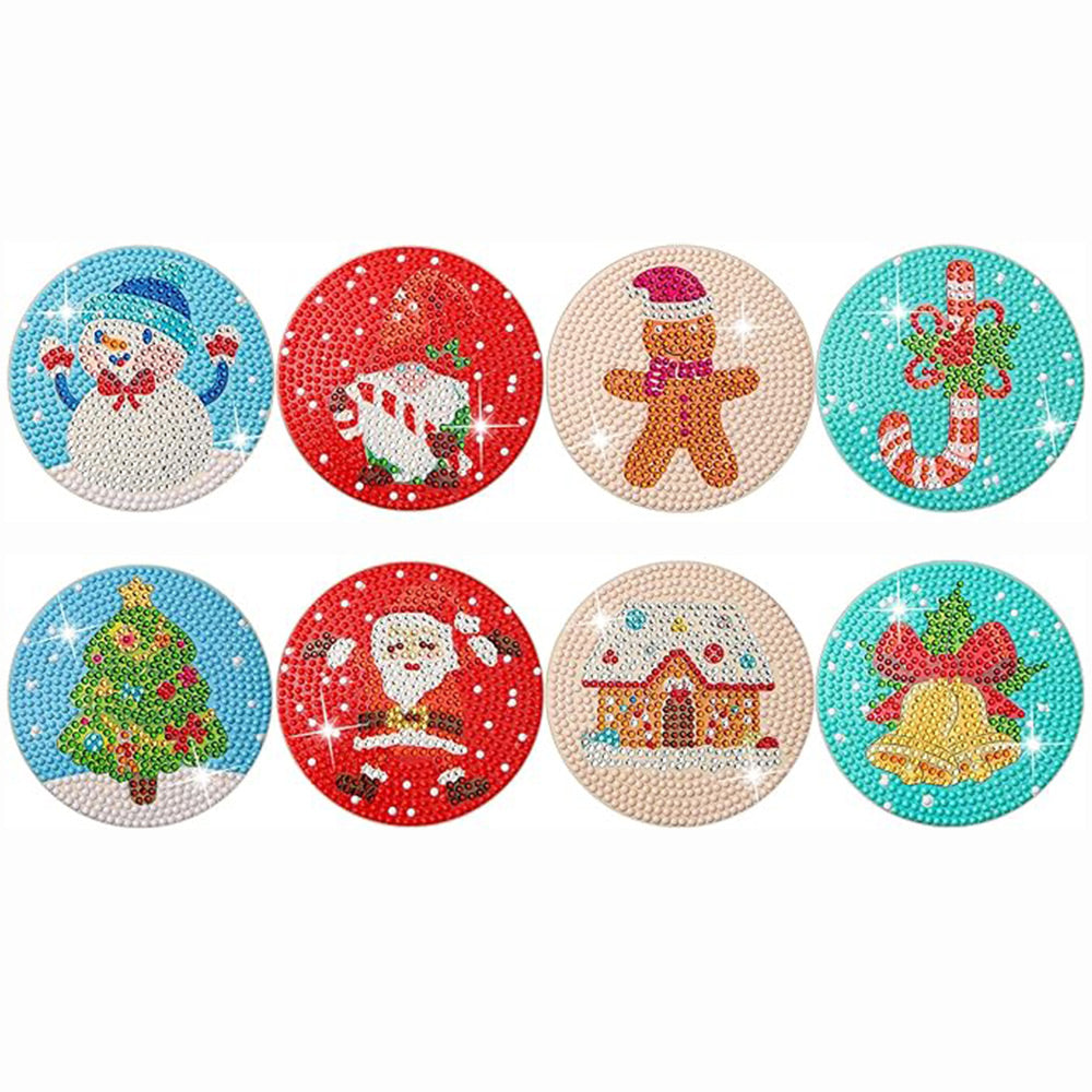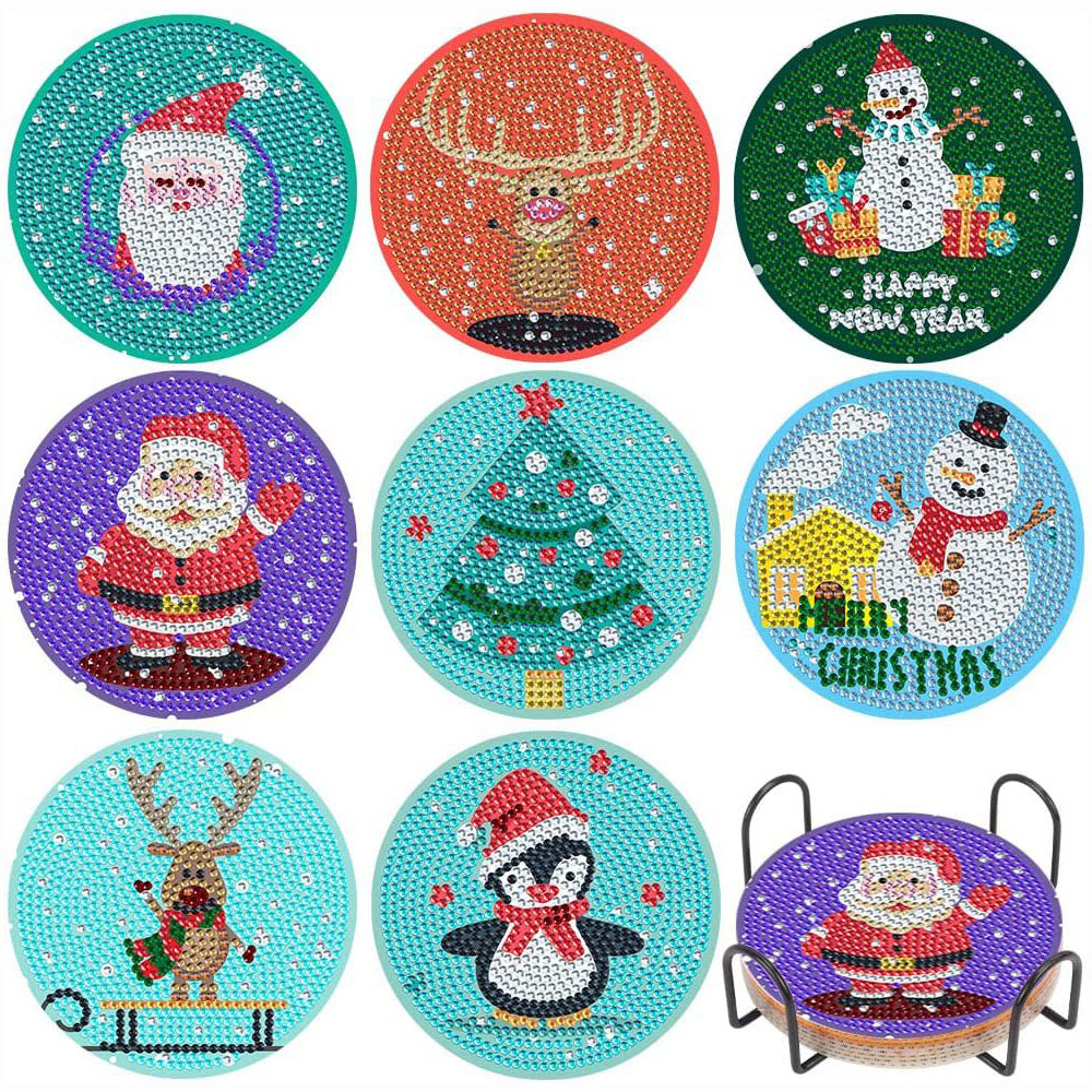 Cartoon Weihnachten Diamond Painting Untersetzer 8Pcs