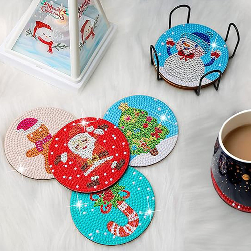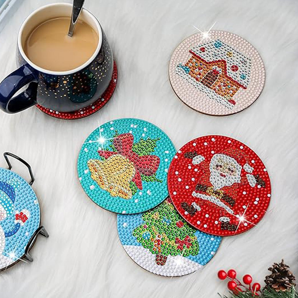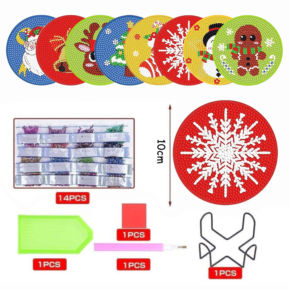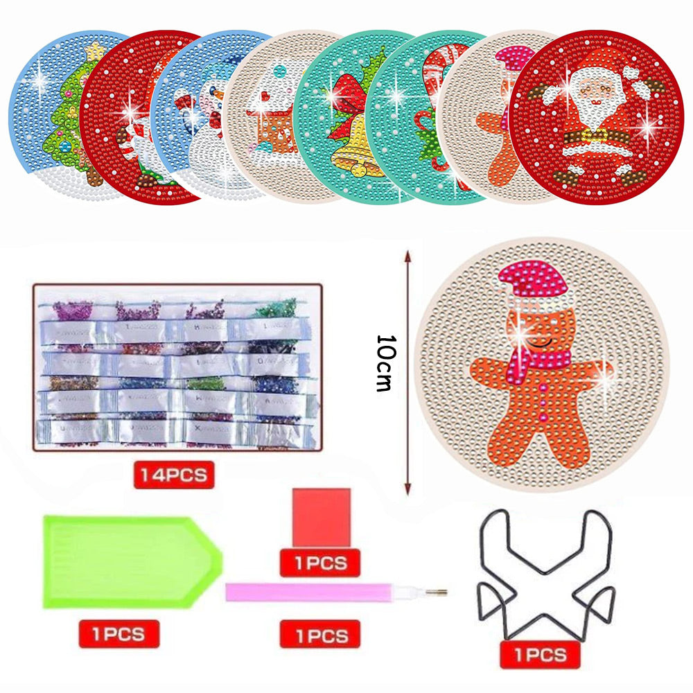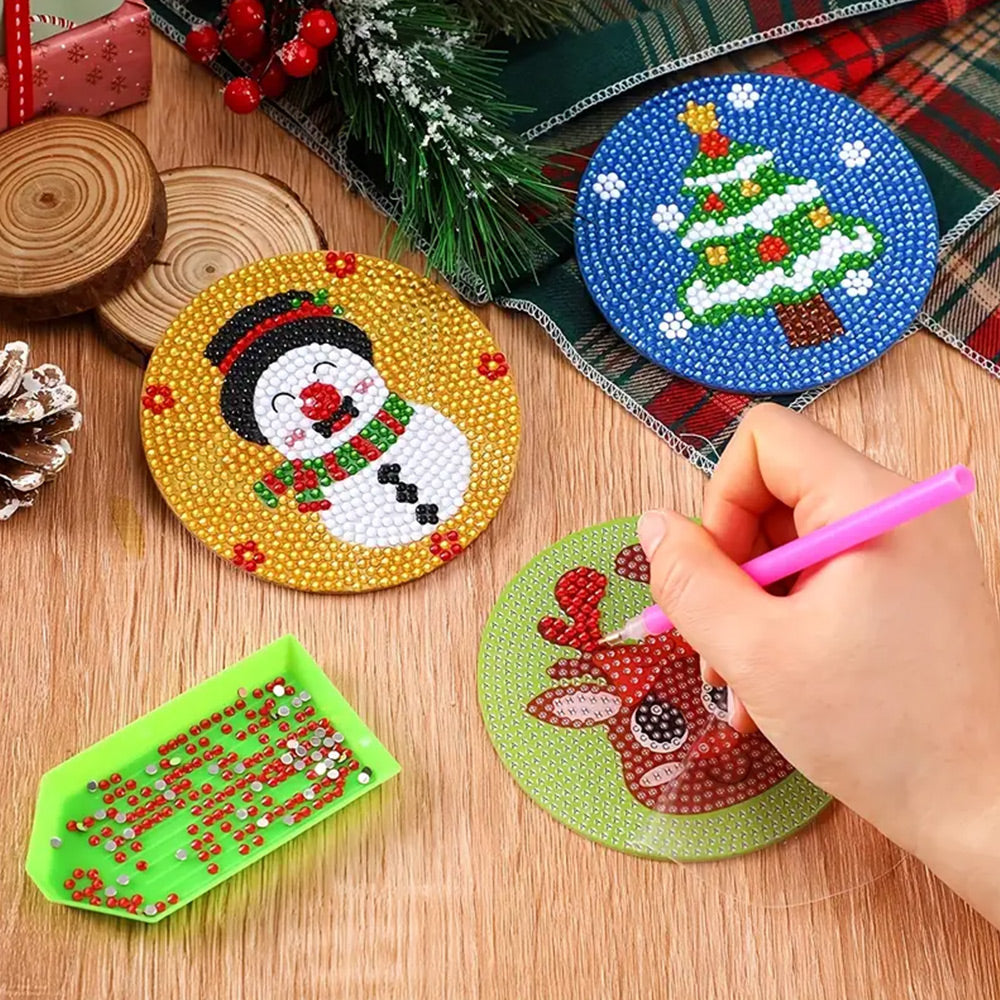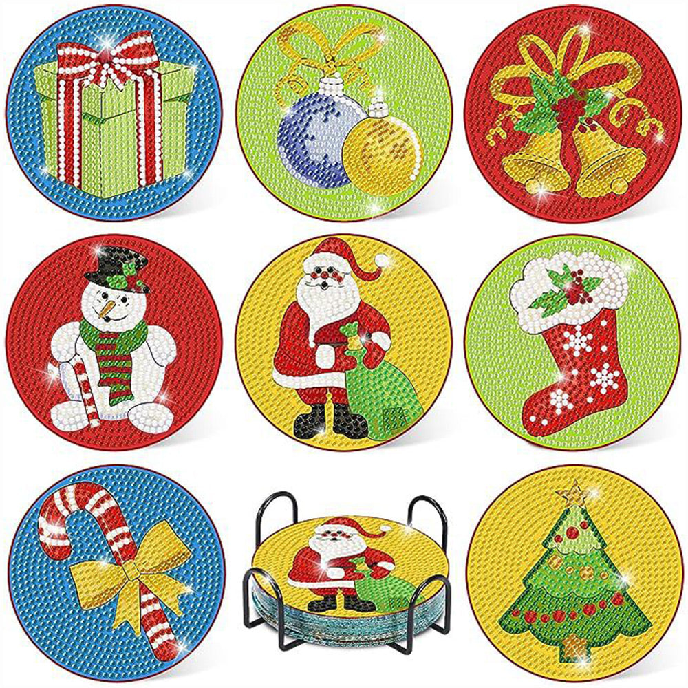 Cartoon Weihnachten Diamond Painting Untersetzer 8Pcs