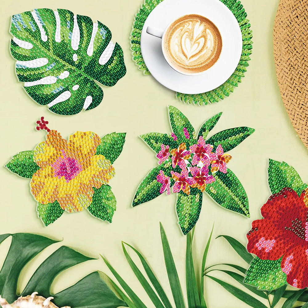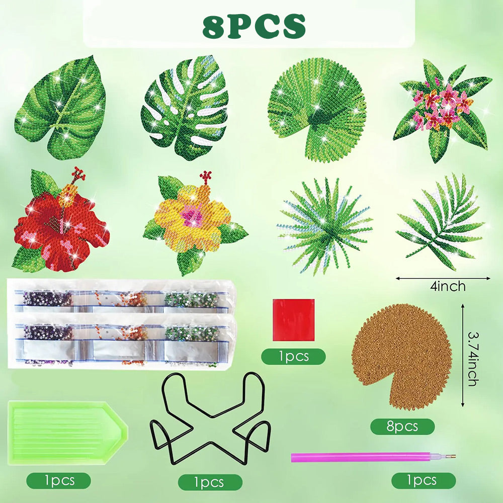 Grüne Blätter Diamond Painting Untersetzer 8Pcs