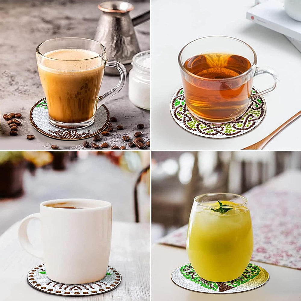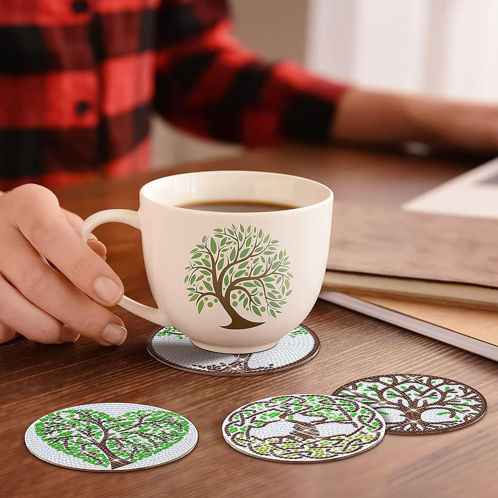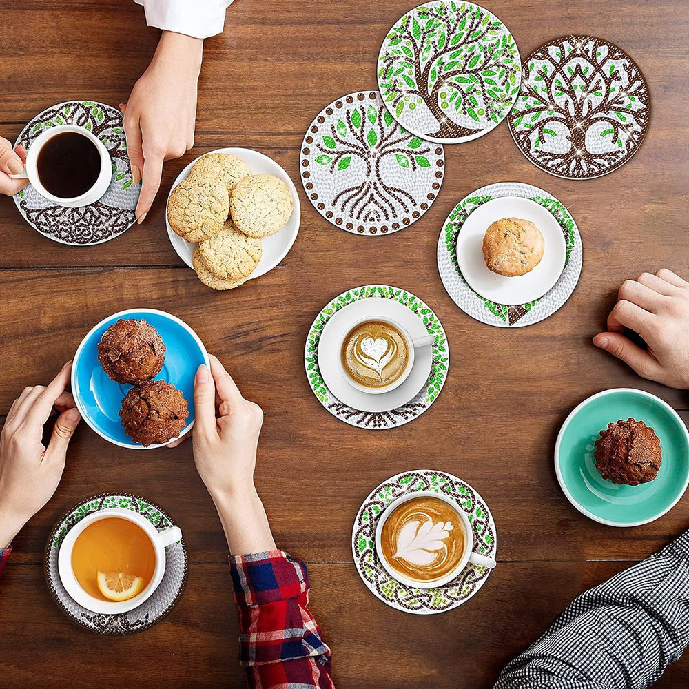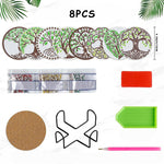 8Stück Grüner Lebensbaum Diamond Painting Untersetzer