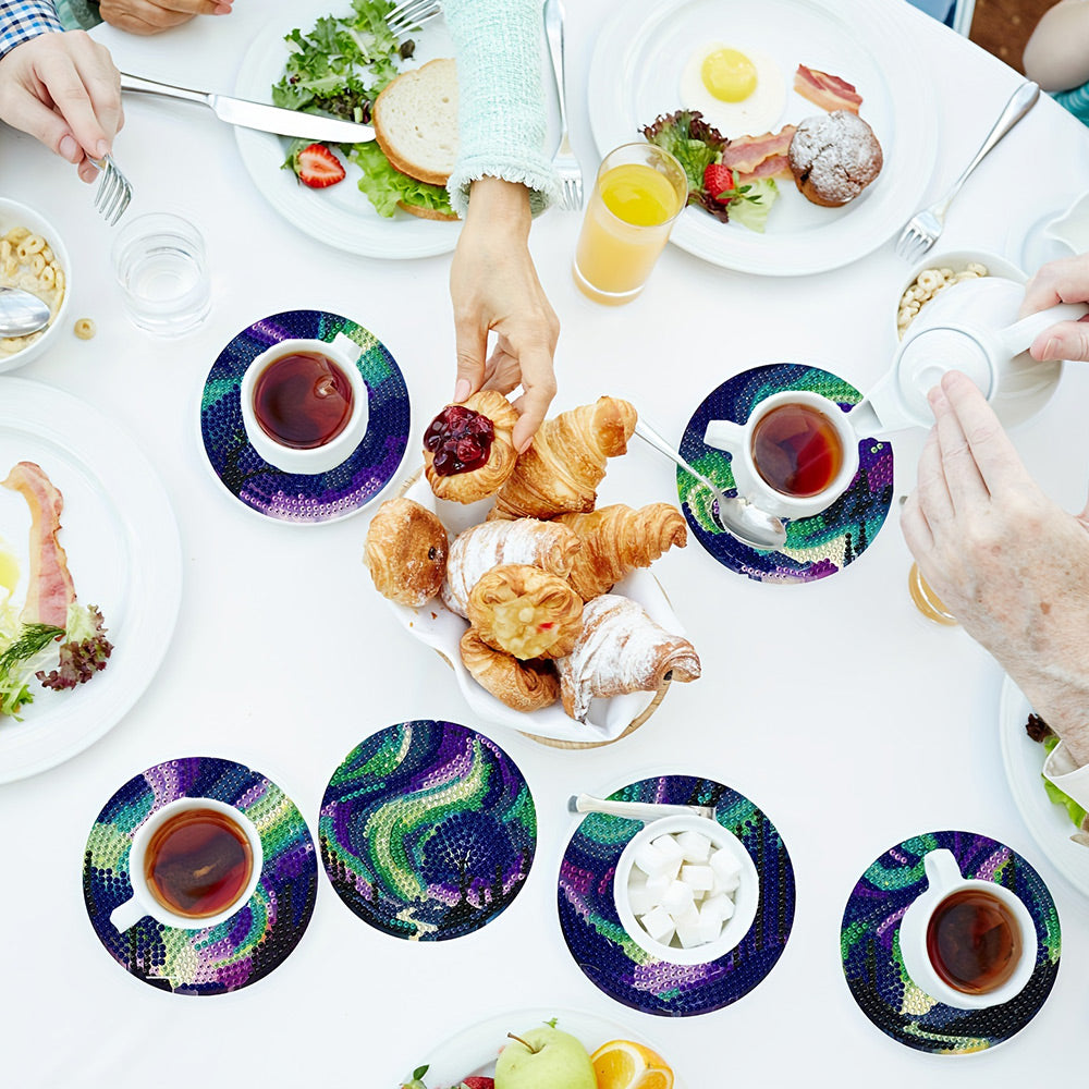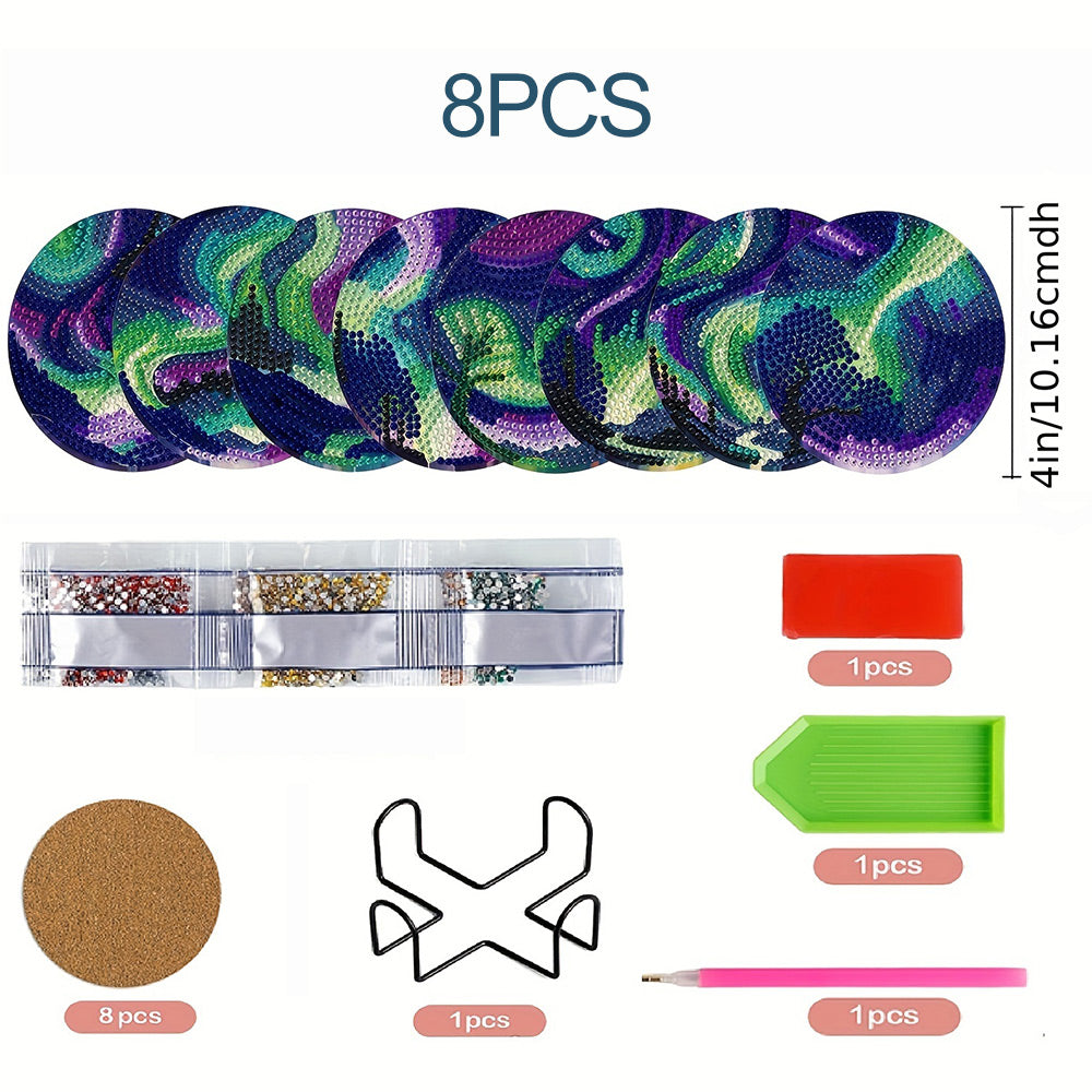 8Stück Grünes Polarlicht Diamond Painting Untersetzer