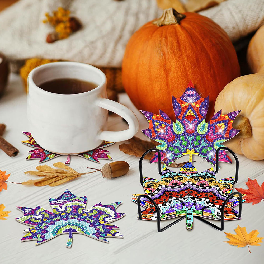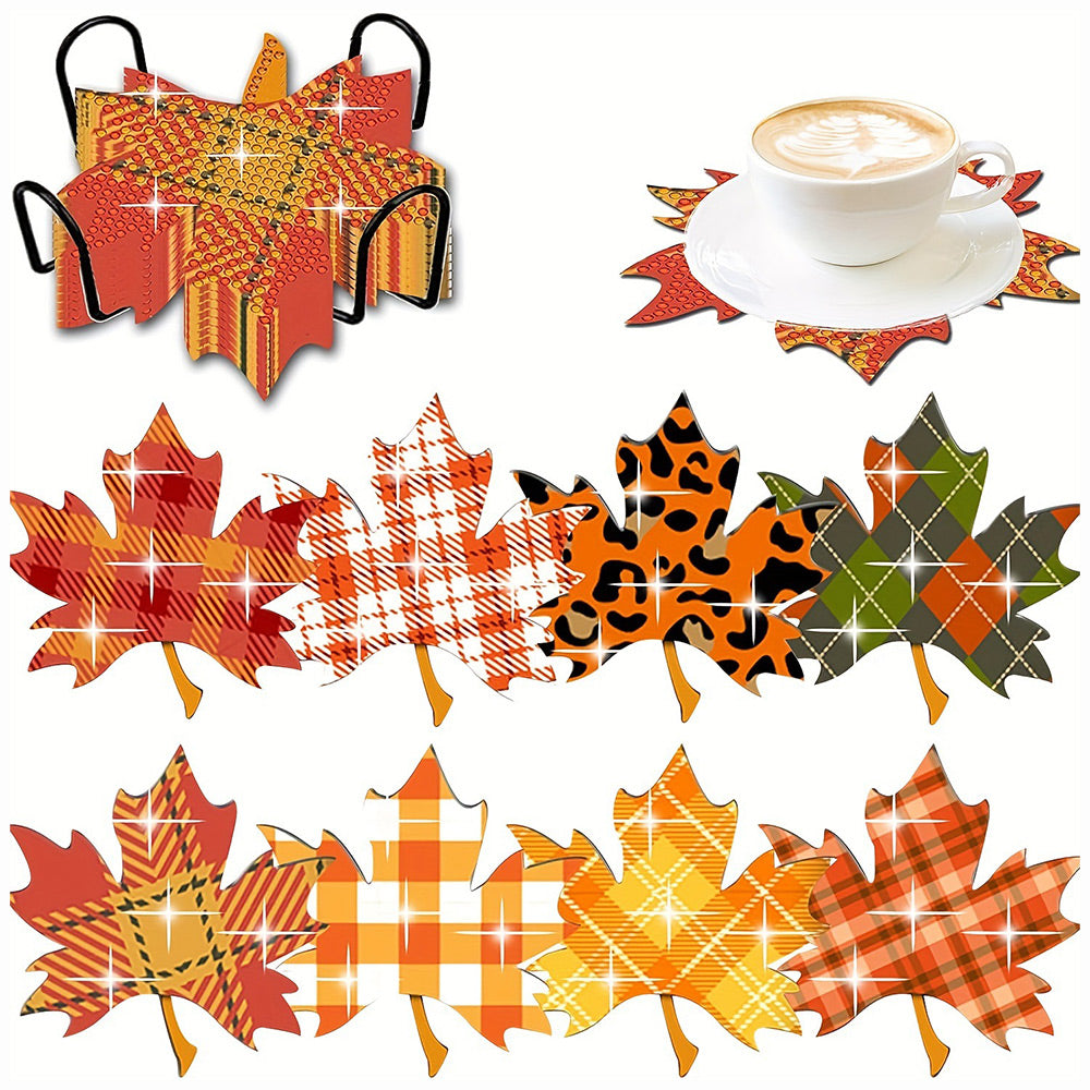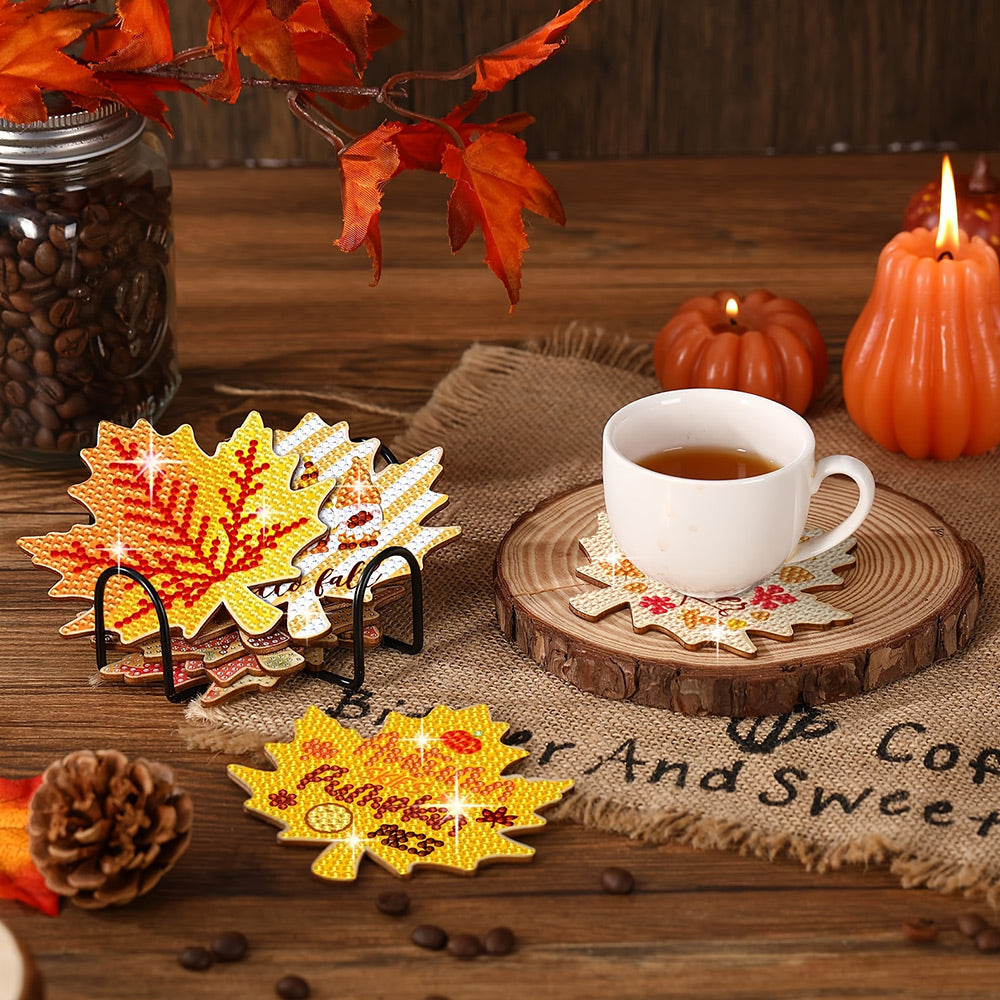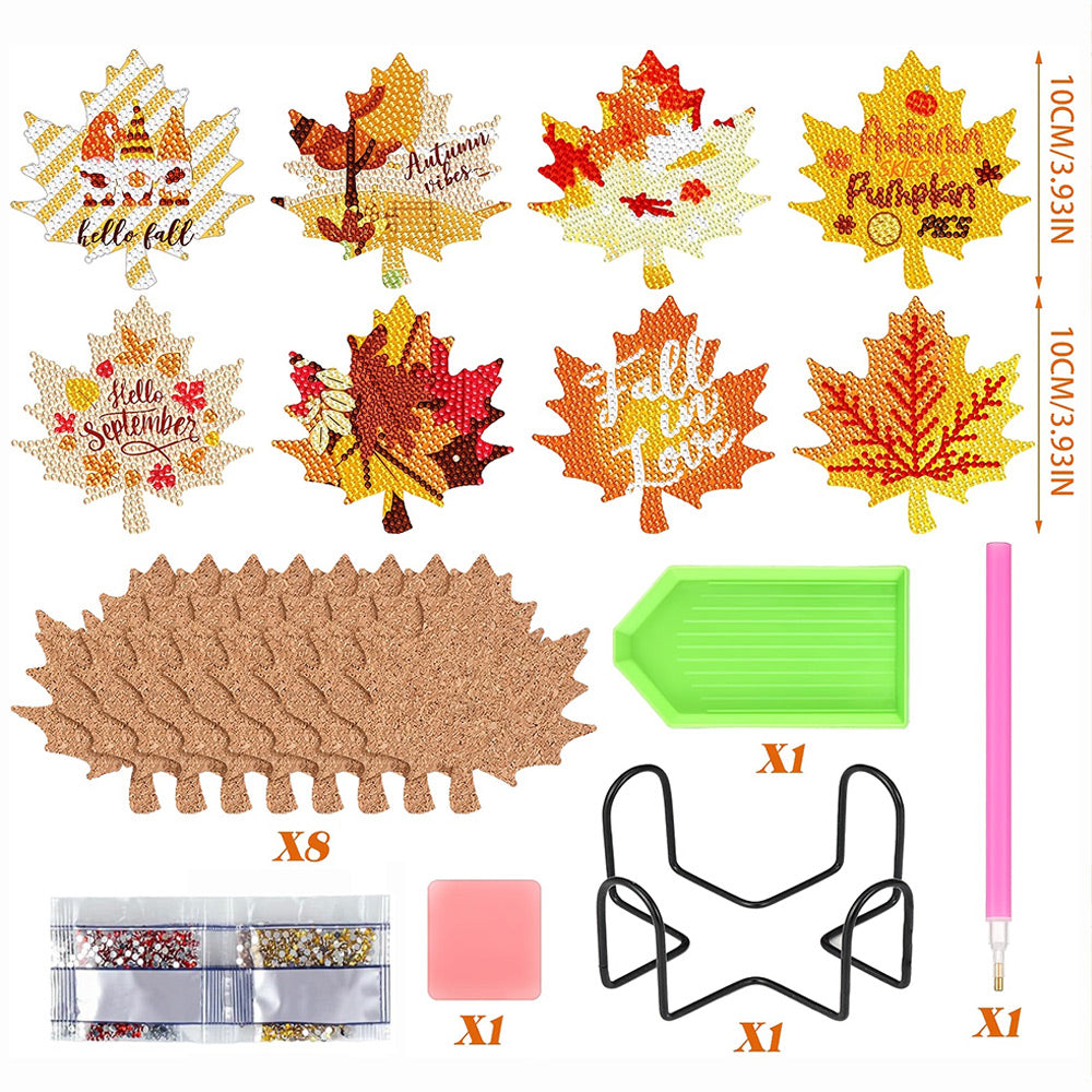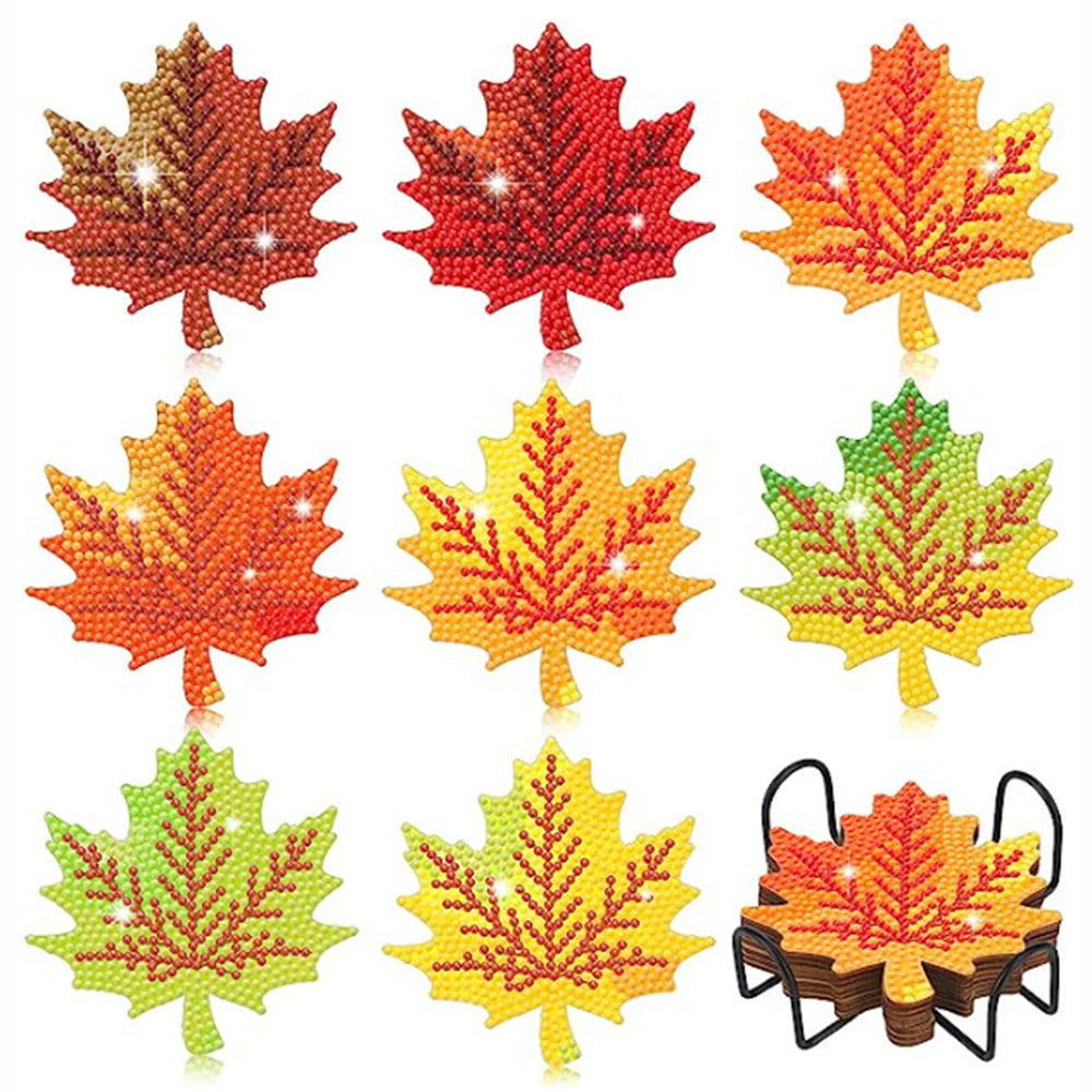 Herbst Ahorn Diamond Painting Untersetzer 8Pcs
