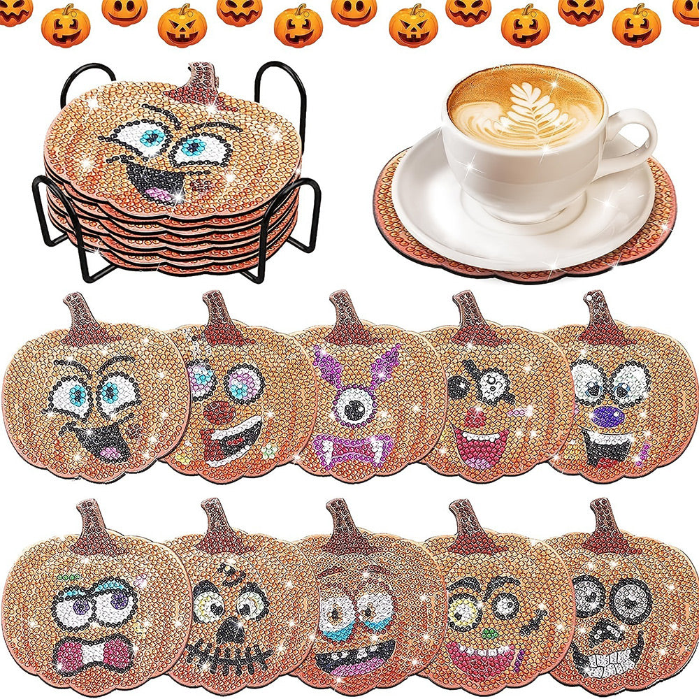 Herbst Kürbis Diamond Painting Untersetzer 10Pcs