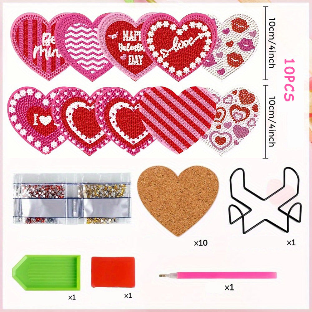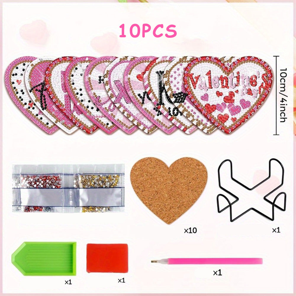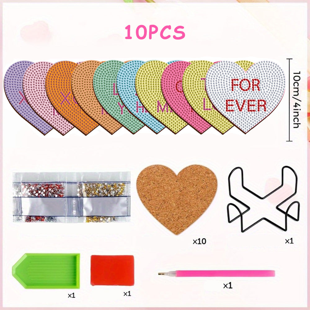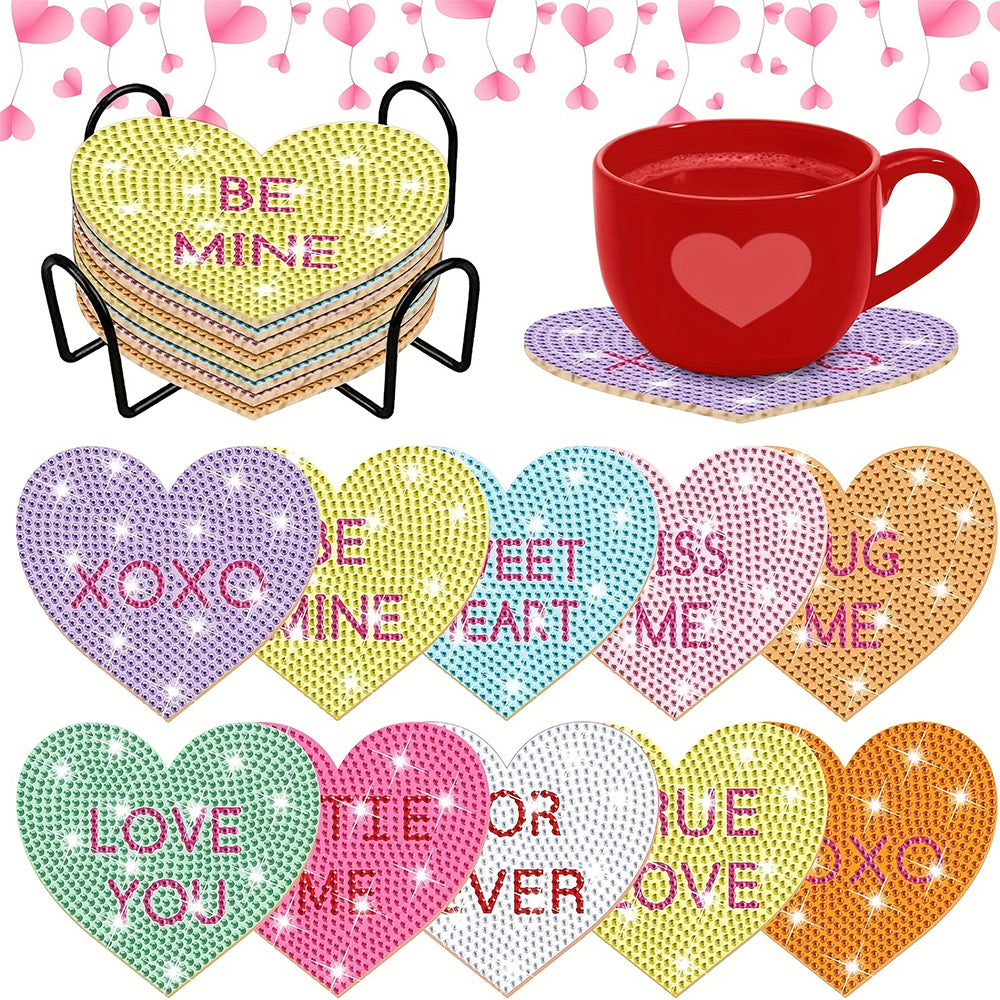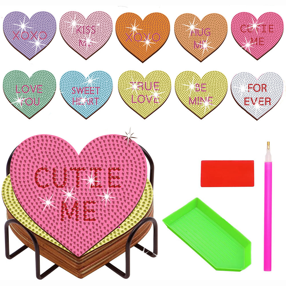 10Stück Untersetzer Herzform Diamond Painting