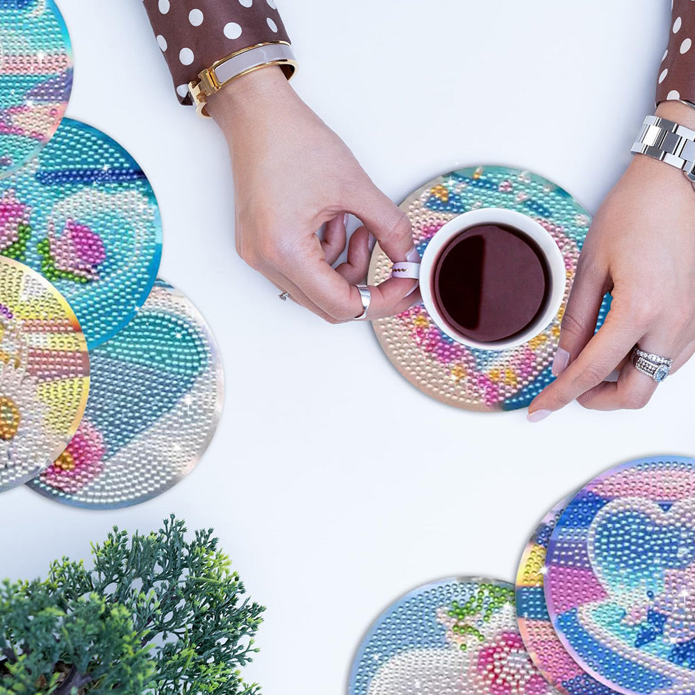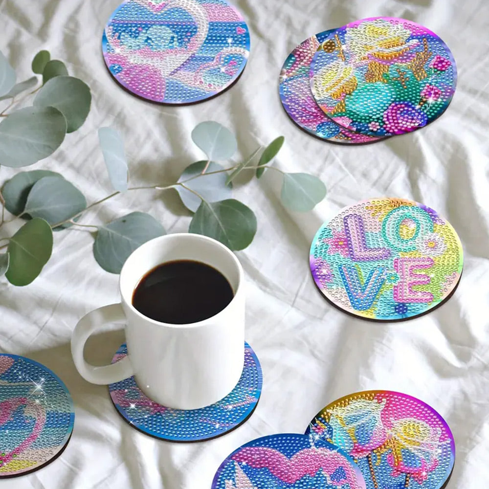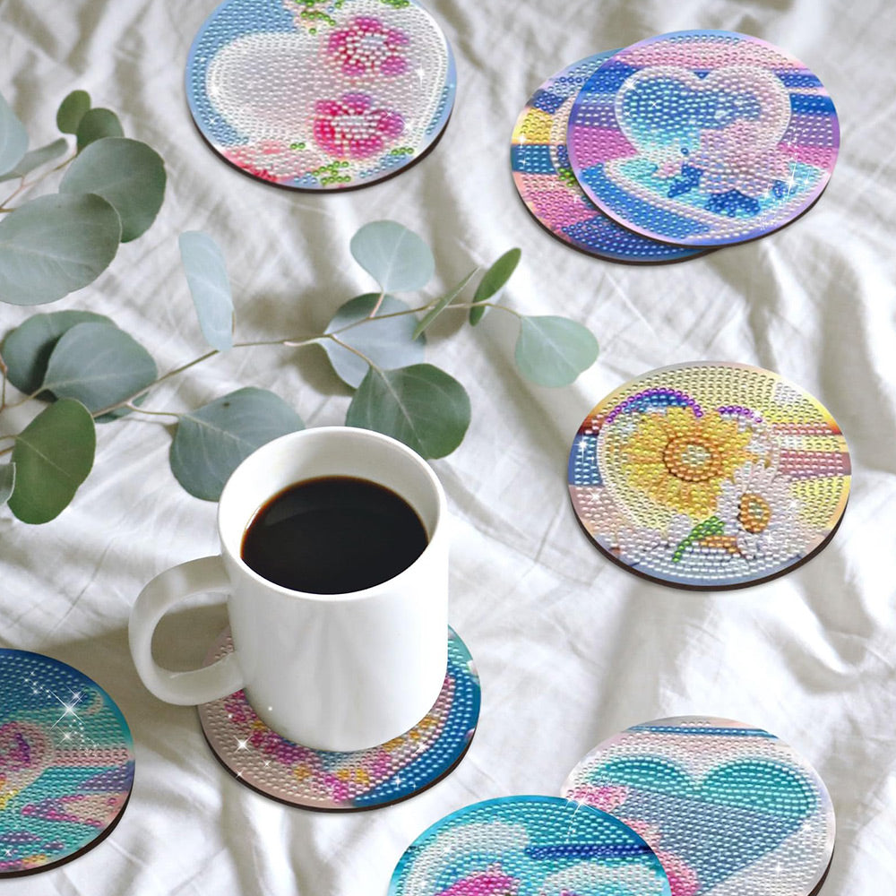 8Stück Untersetzer Herzform Liebe Diamond Painting