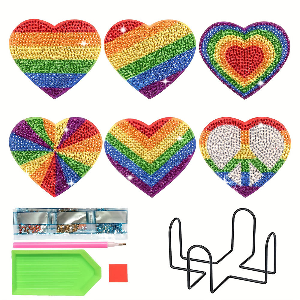 Herzförmiger Regenbogen Diamond Painting Untersetzer 6Pcs