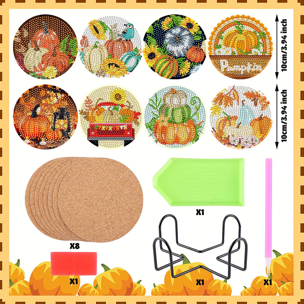 Kürbis Diamond Painting Untersetzer 8Pcs